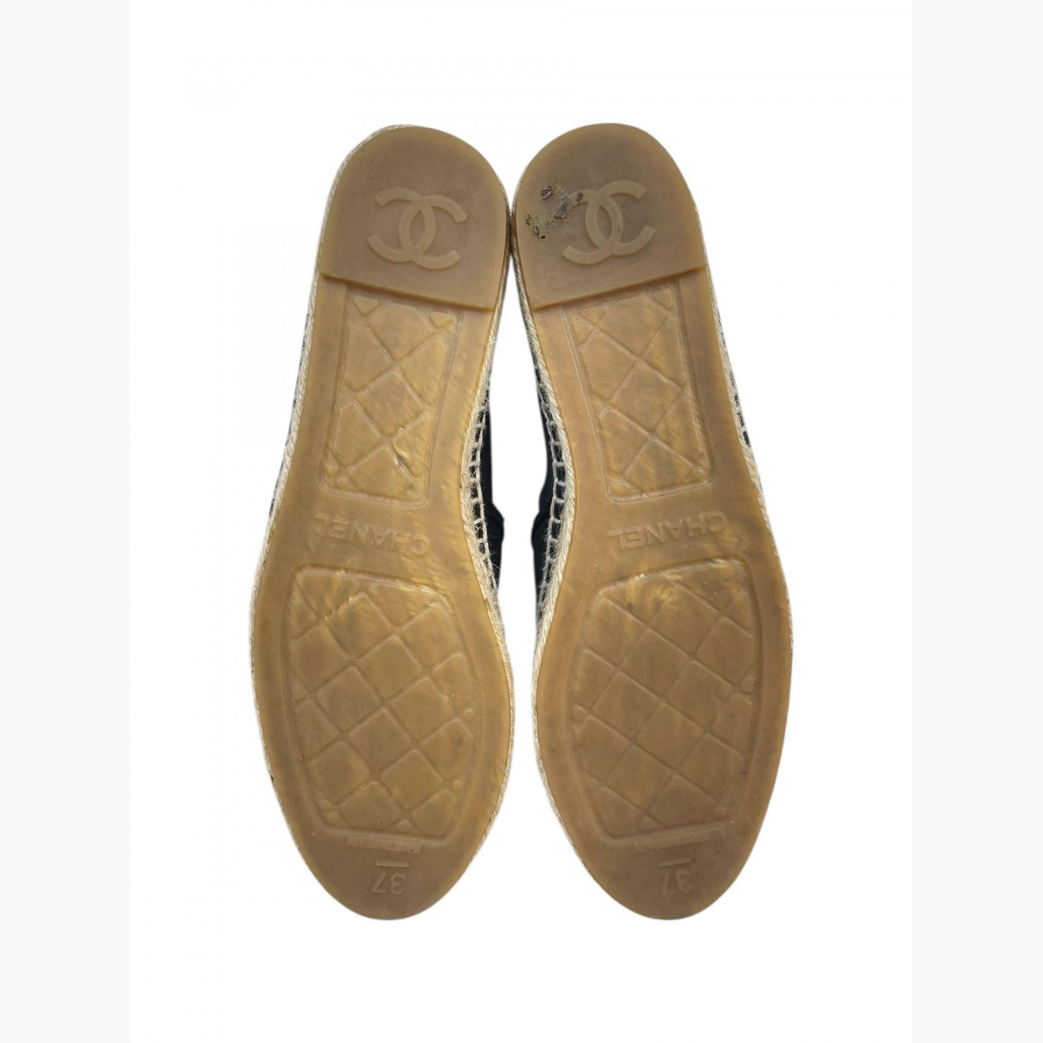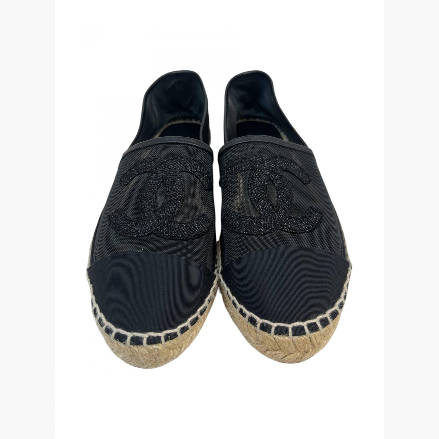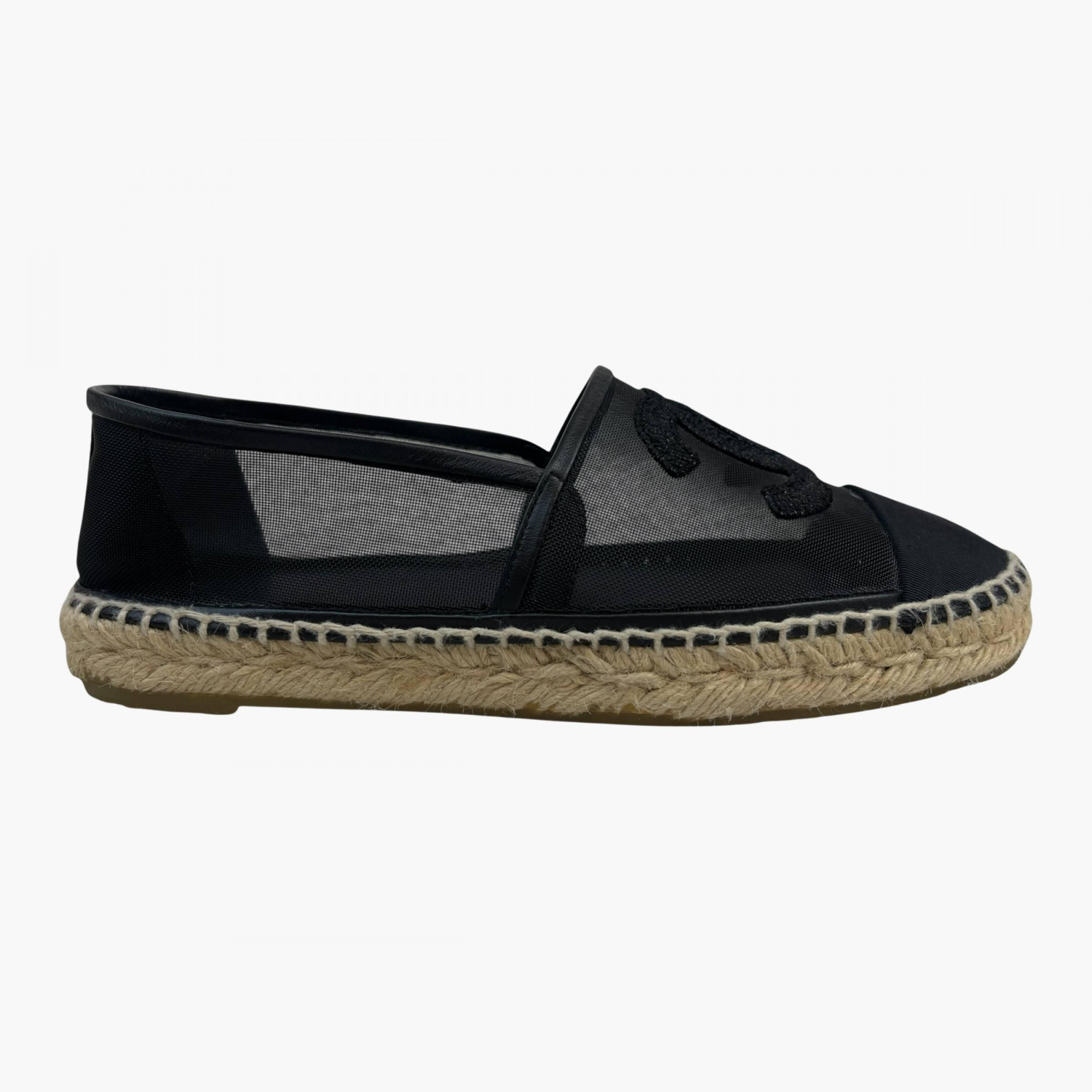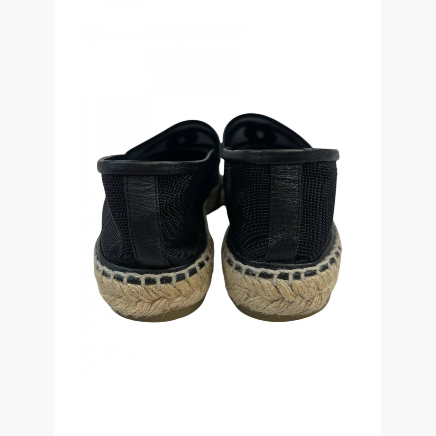 Чорні еспадрильї з сітки з текстильним носком, обробленим шкірою.У відмінному стані, є сліди носіння.