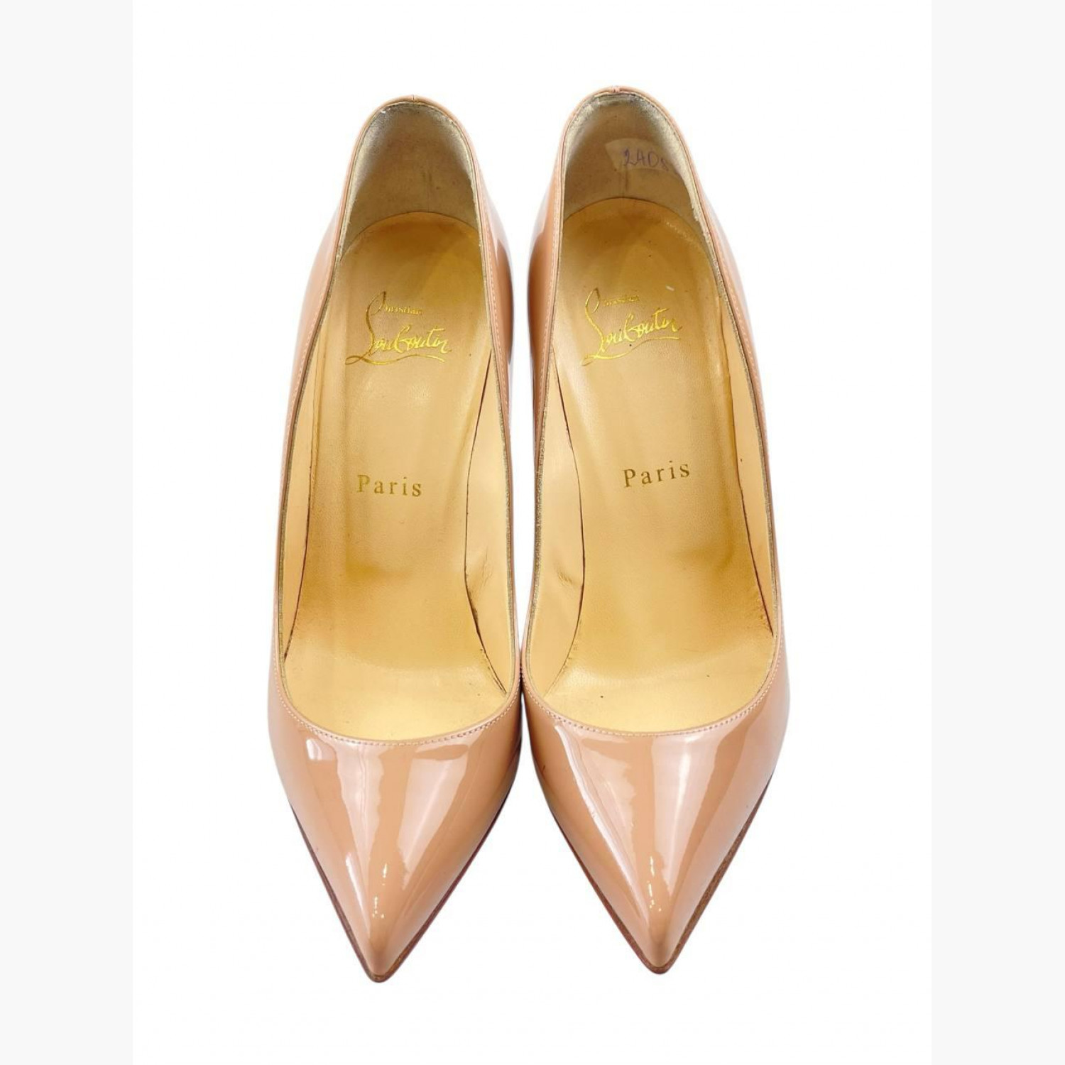 Бежеві лодочки на високому підборі з лакованої шкіри. У гарному стані, є сліди вжитку.