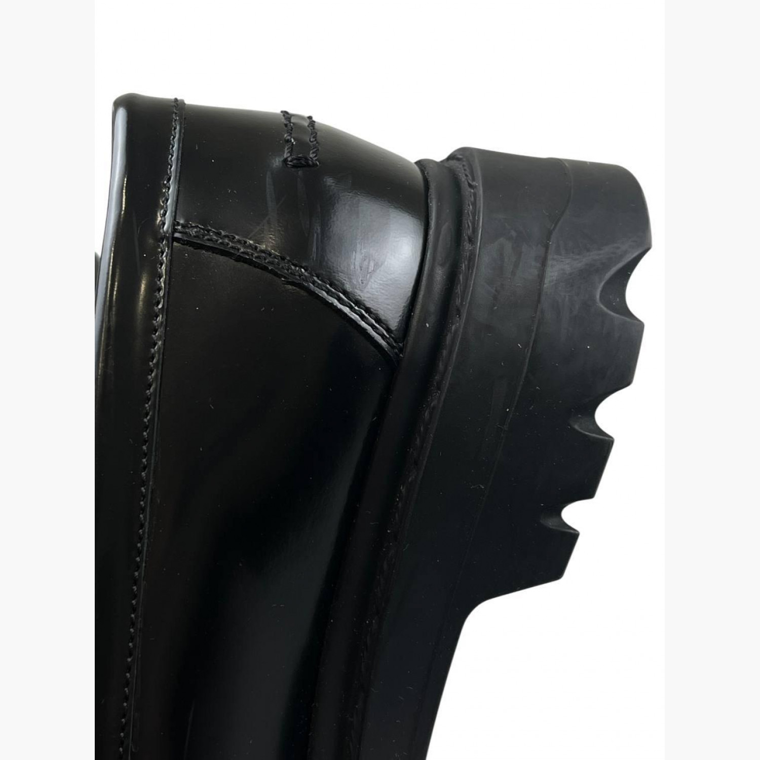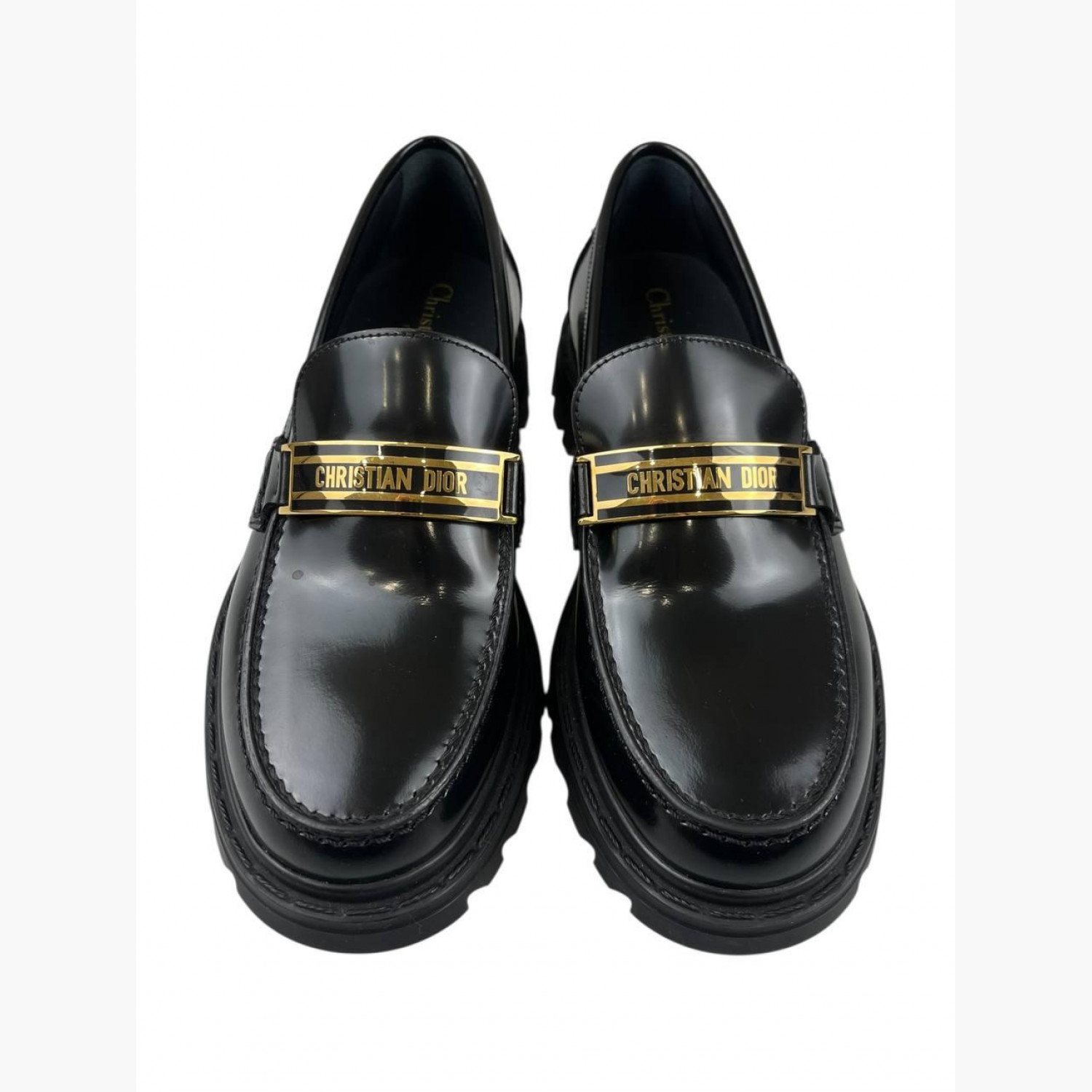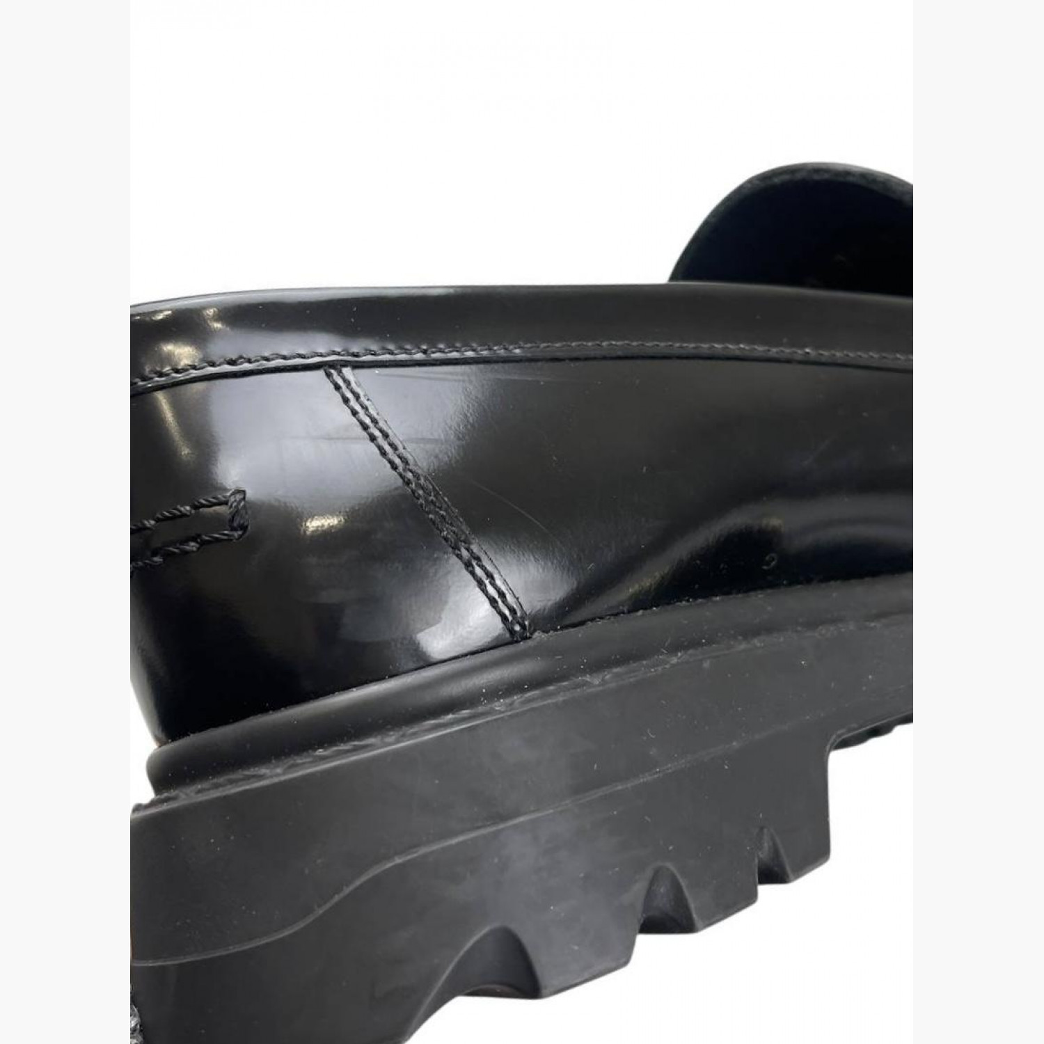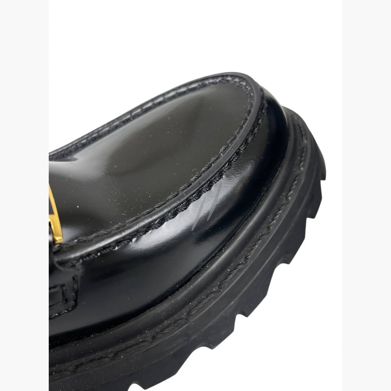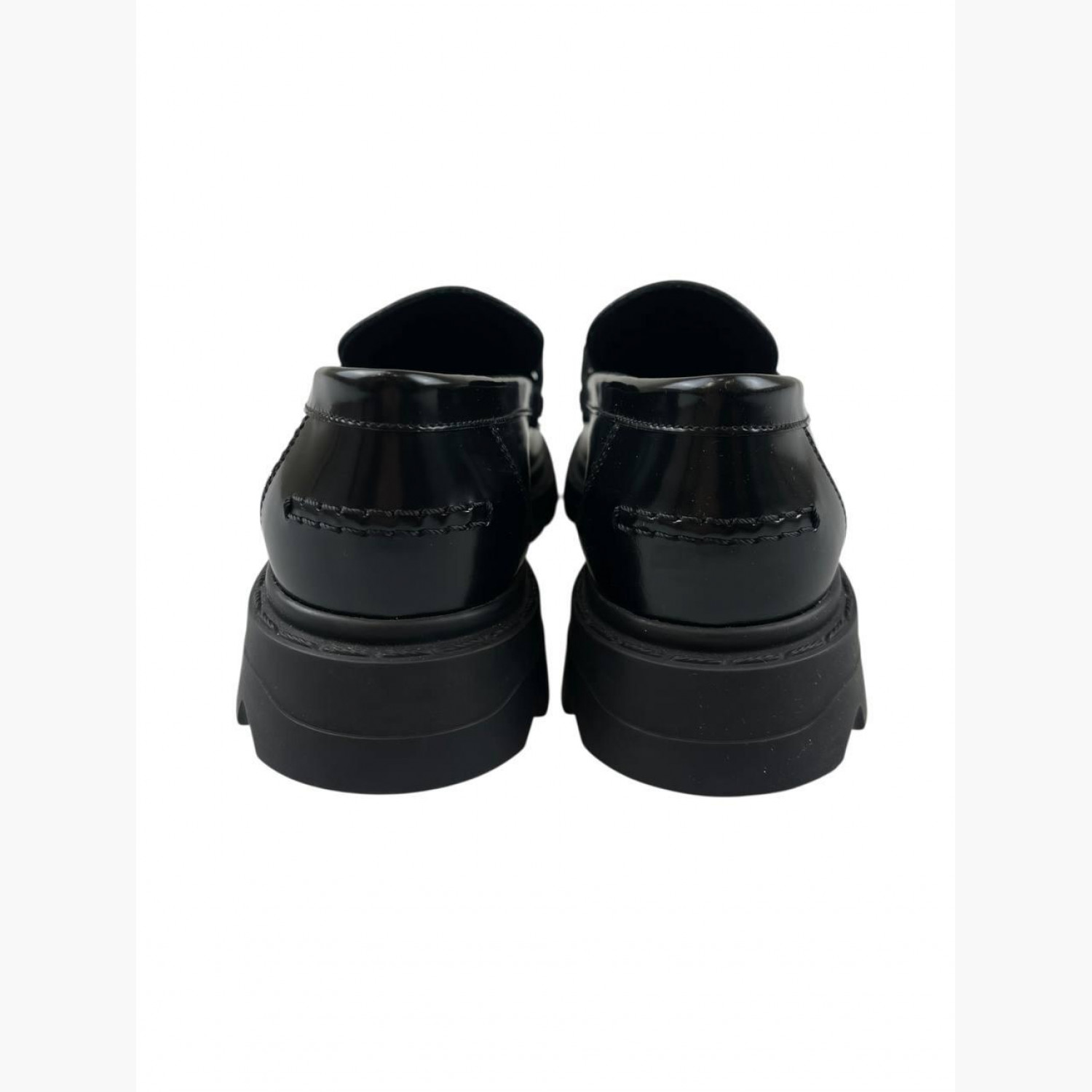 Чорні лофери, виготовлені з лакованої шкіри, прикрашені прямокутною металевою пряжкою. У дуже гарному стані, є незначні потертості.