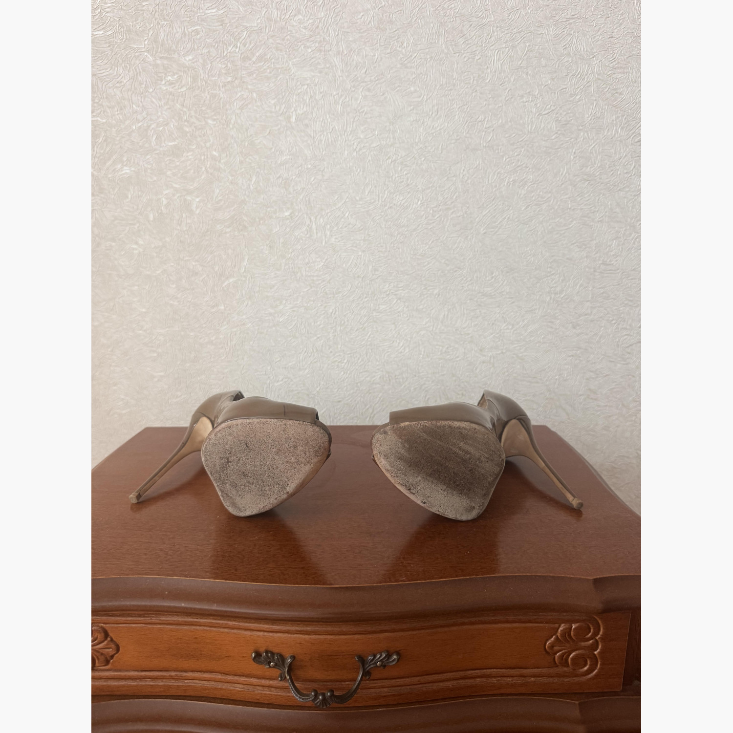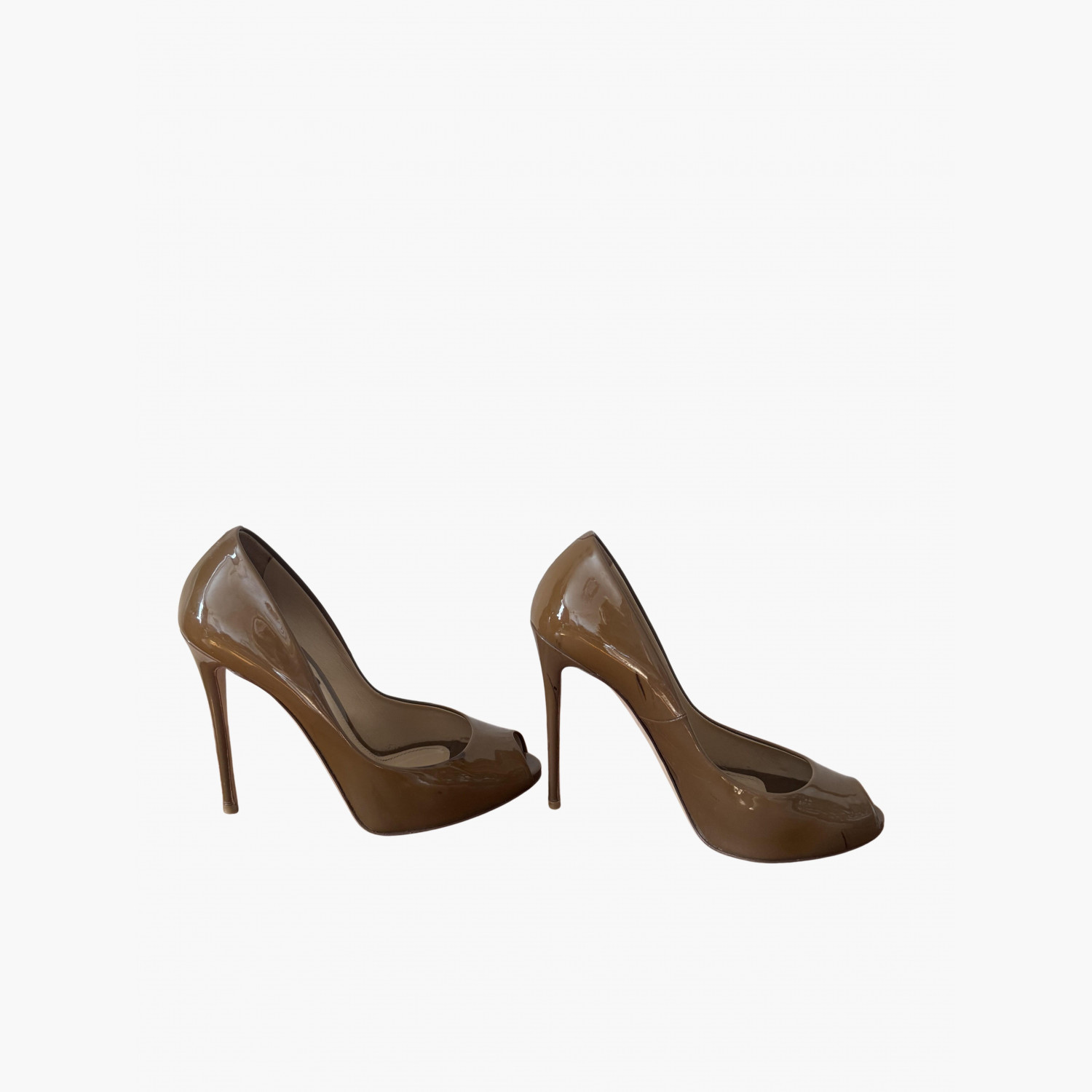 Коричневі лаковані туфлі з відкритим носком. У гарному стані.
