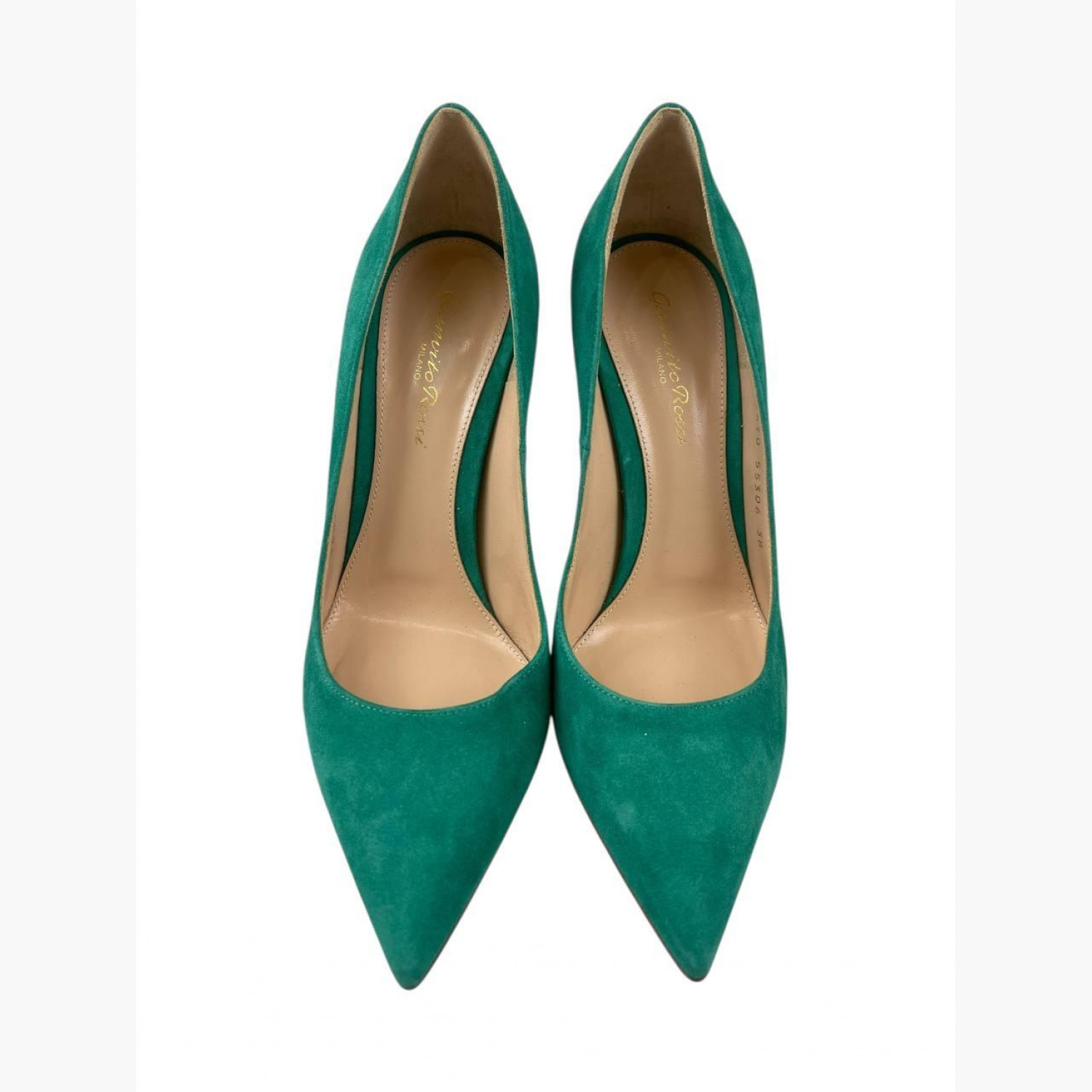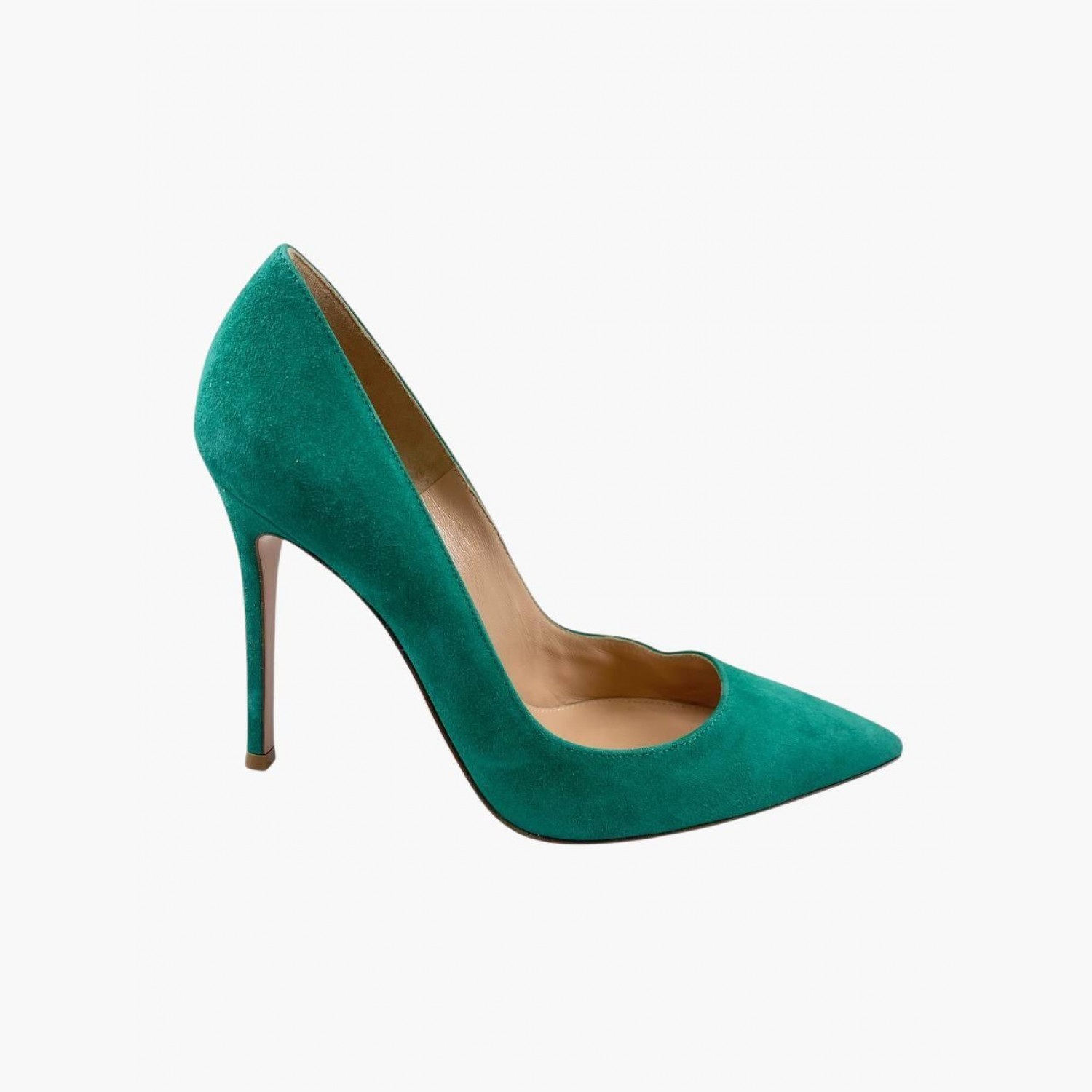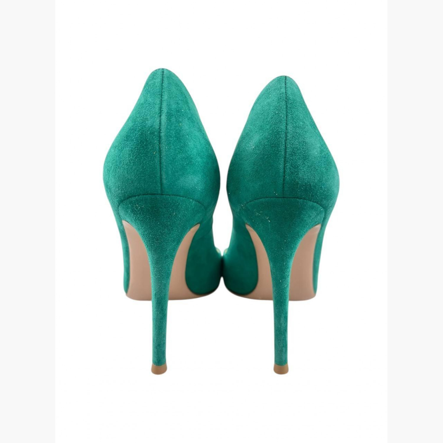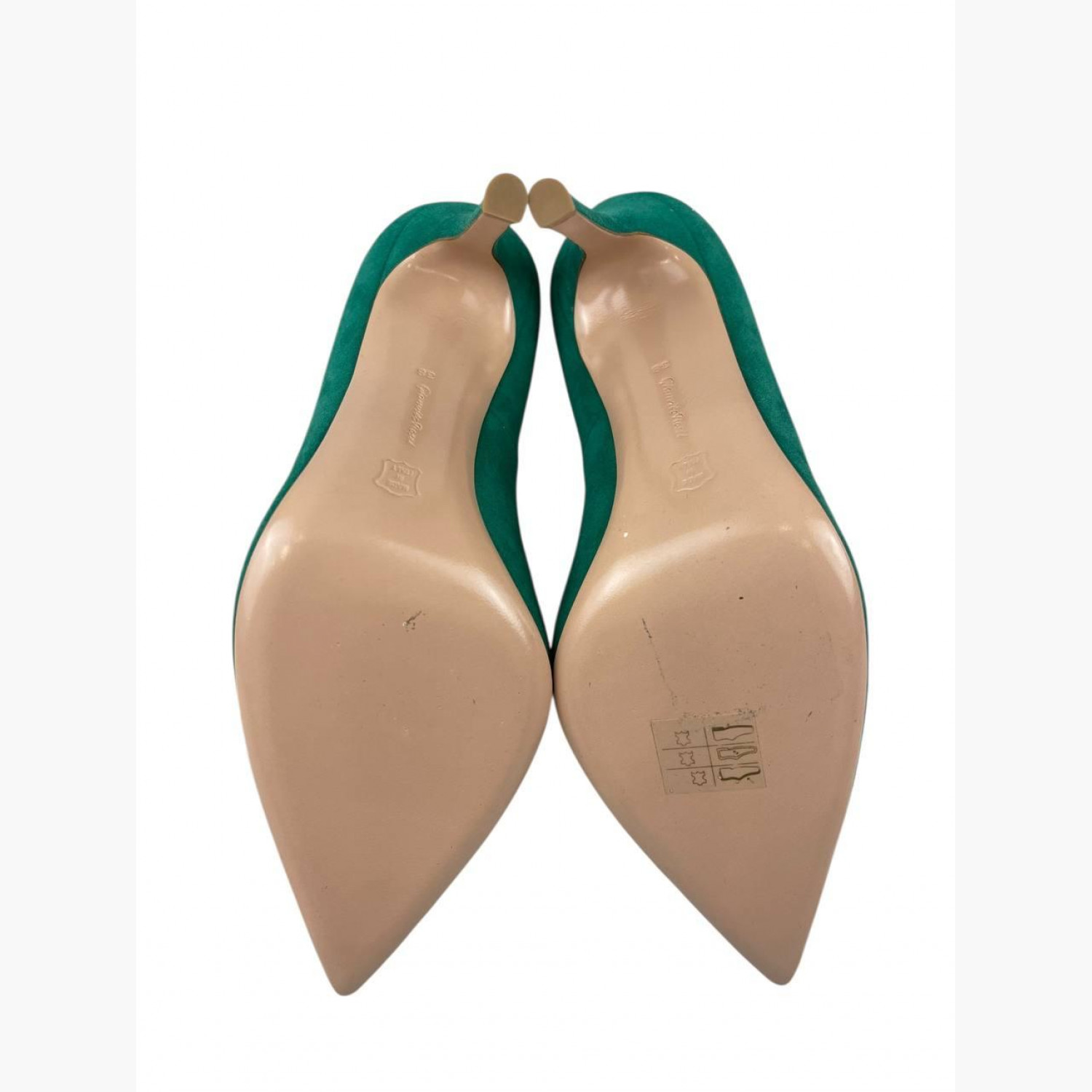 Зелені замшеві туфлі з гострим носком на шпильці. У відмінному стані, є незначні сліди вжитку.