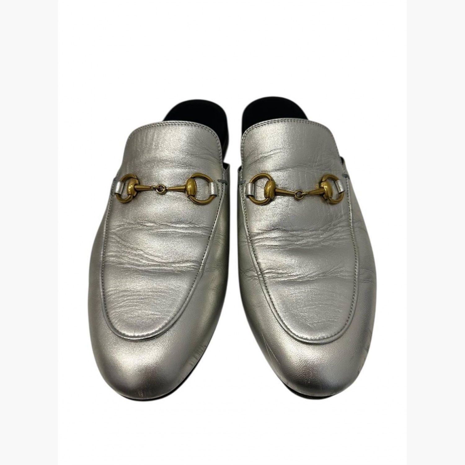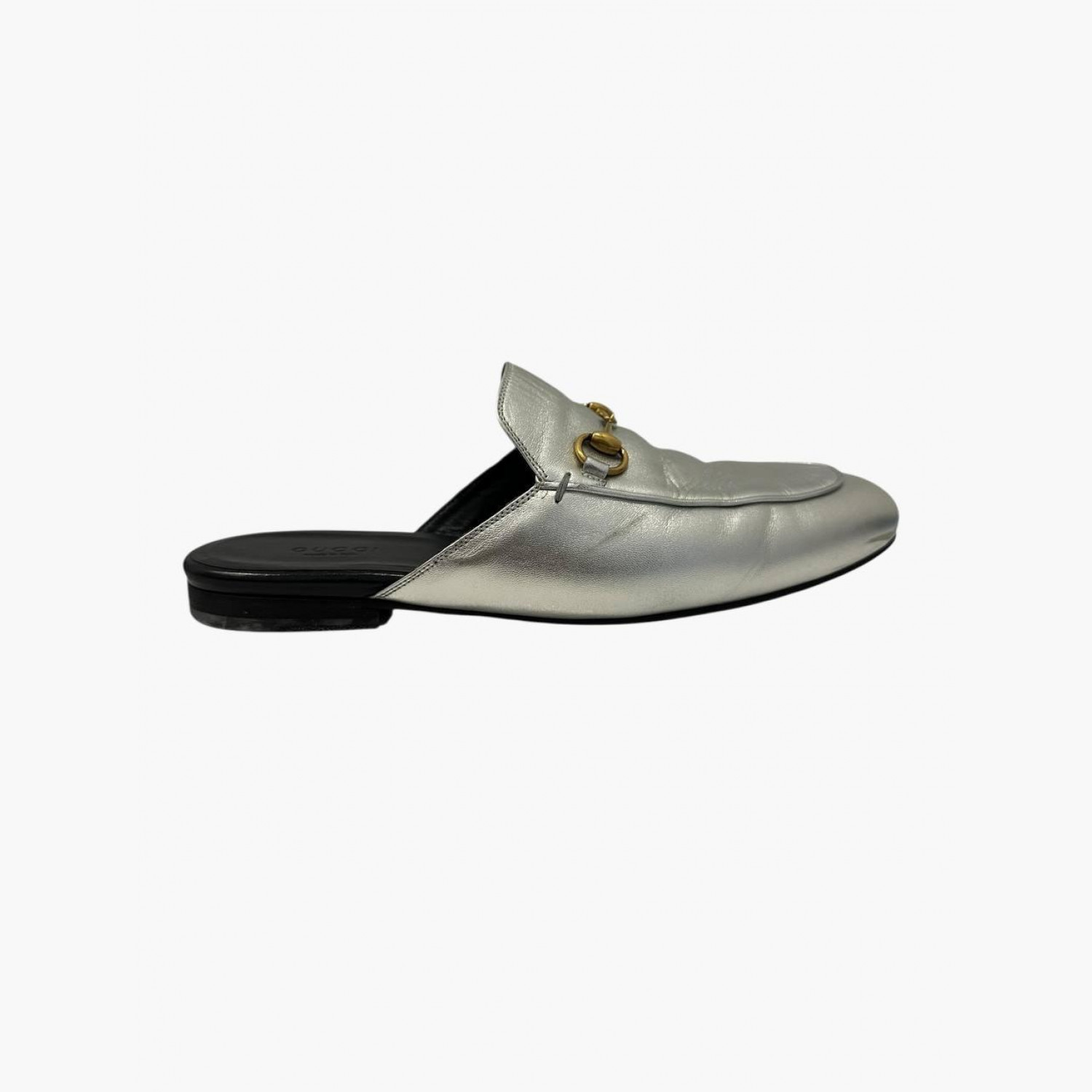 Сріблясті шкіряні мюлі. У хорошому стані, є потертості та подряпини.