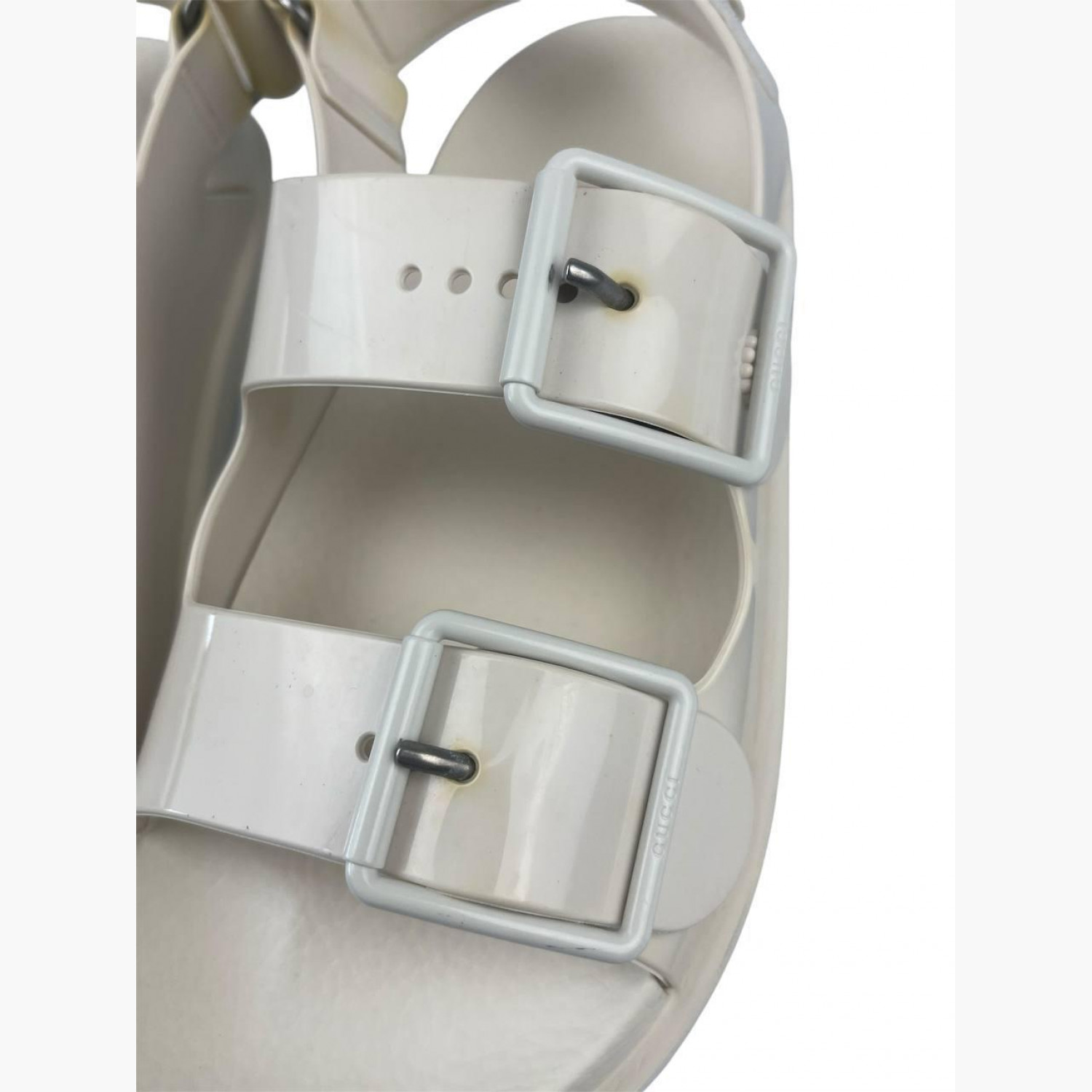 Молочні лаковані сандалі. В гарному стані, є сліди вжитку.