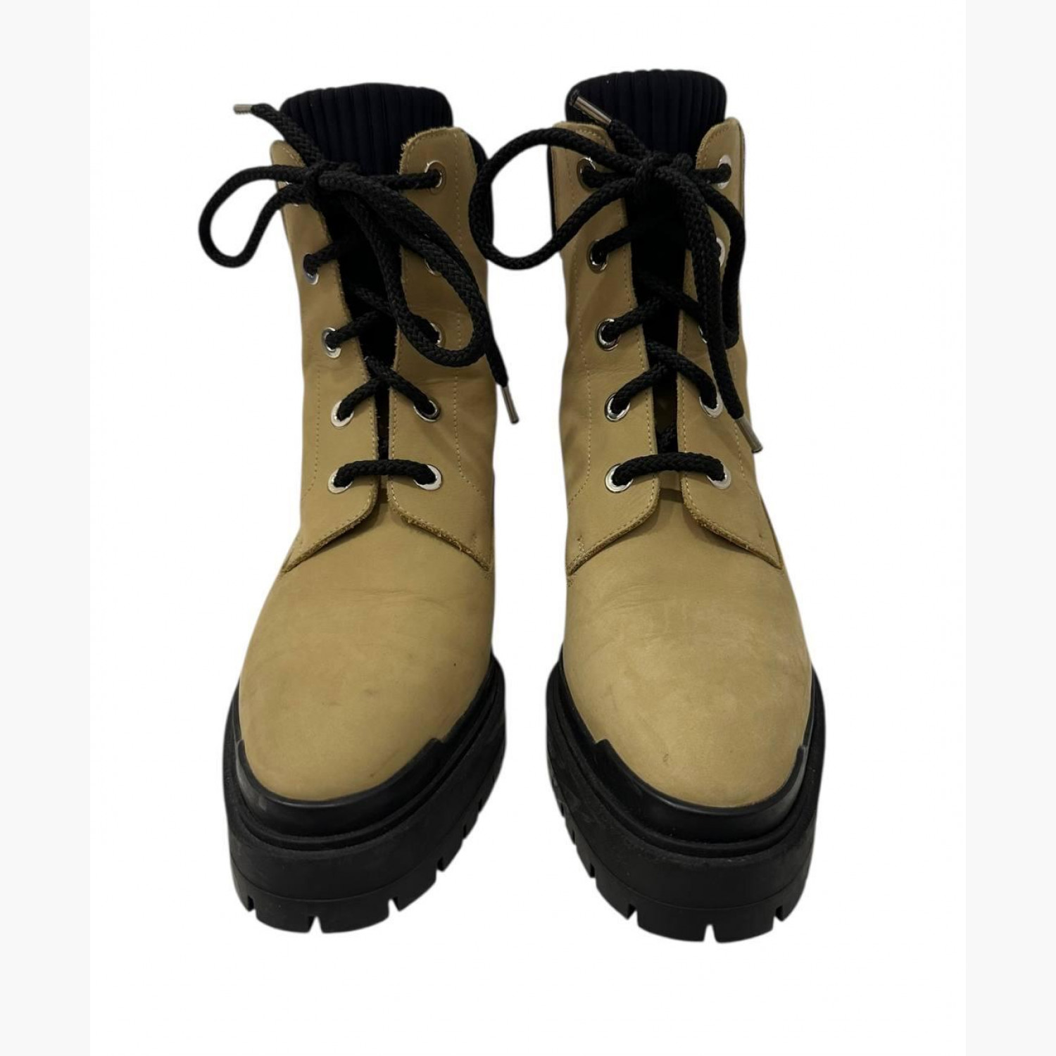 Бежеві замшеві черевики на шнурівці. В ідеальному стані, є потертості.
