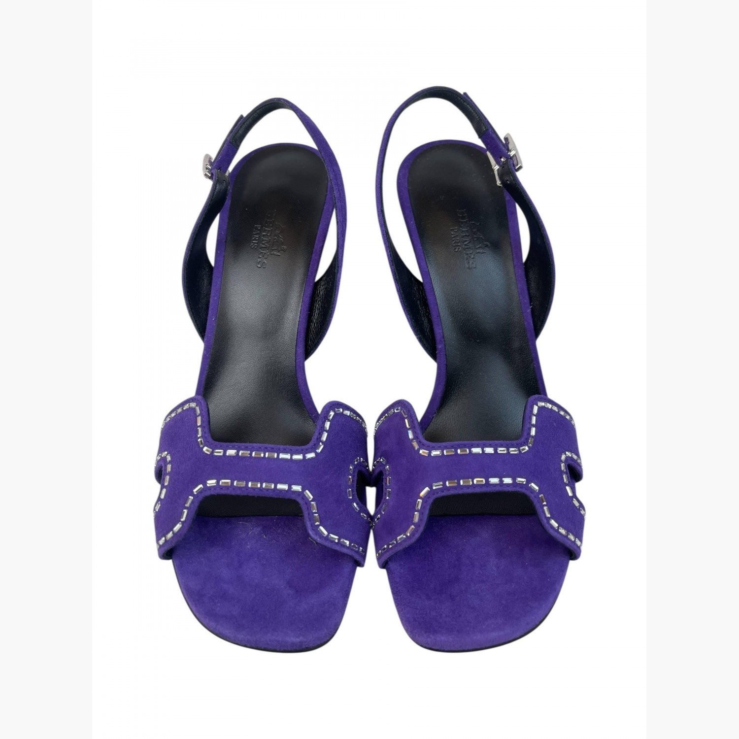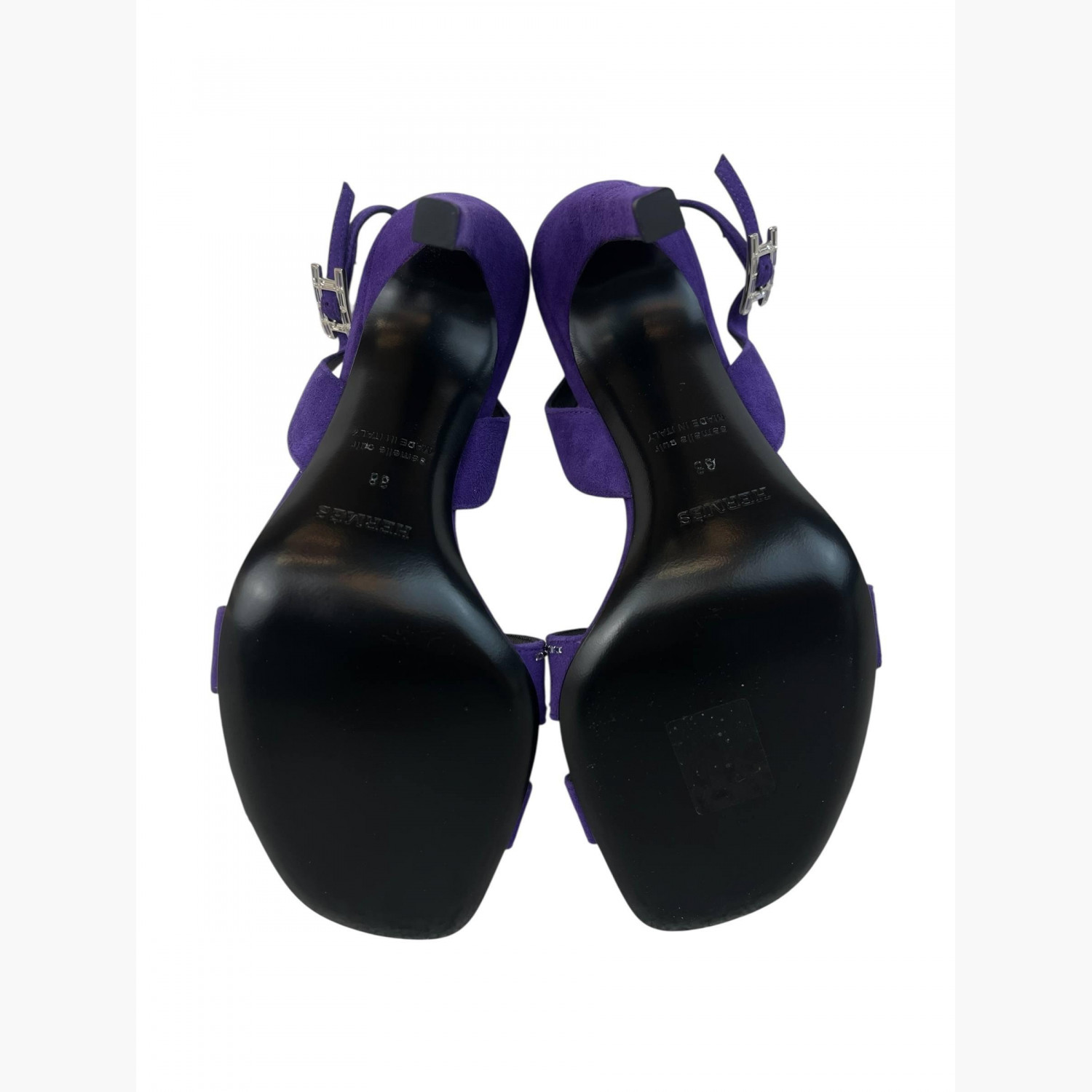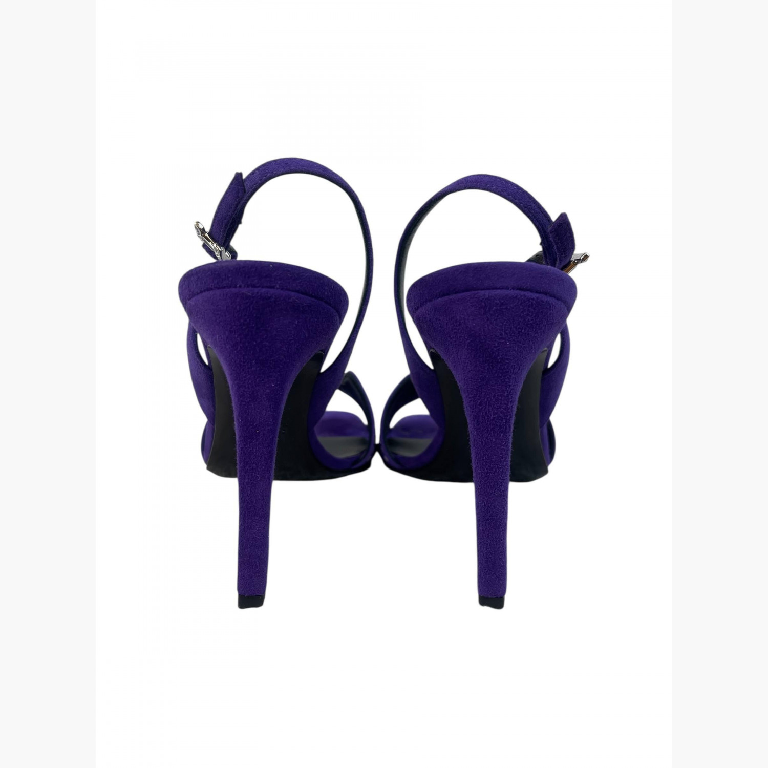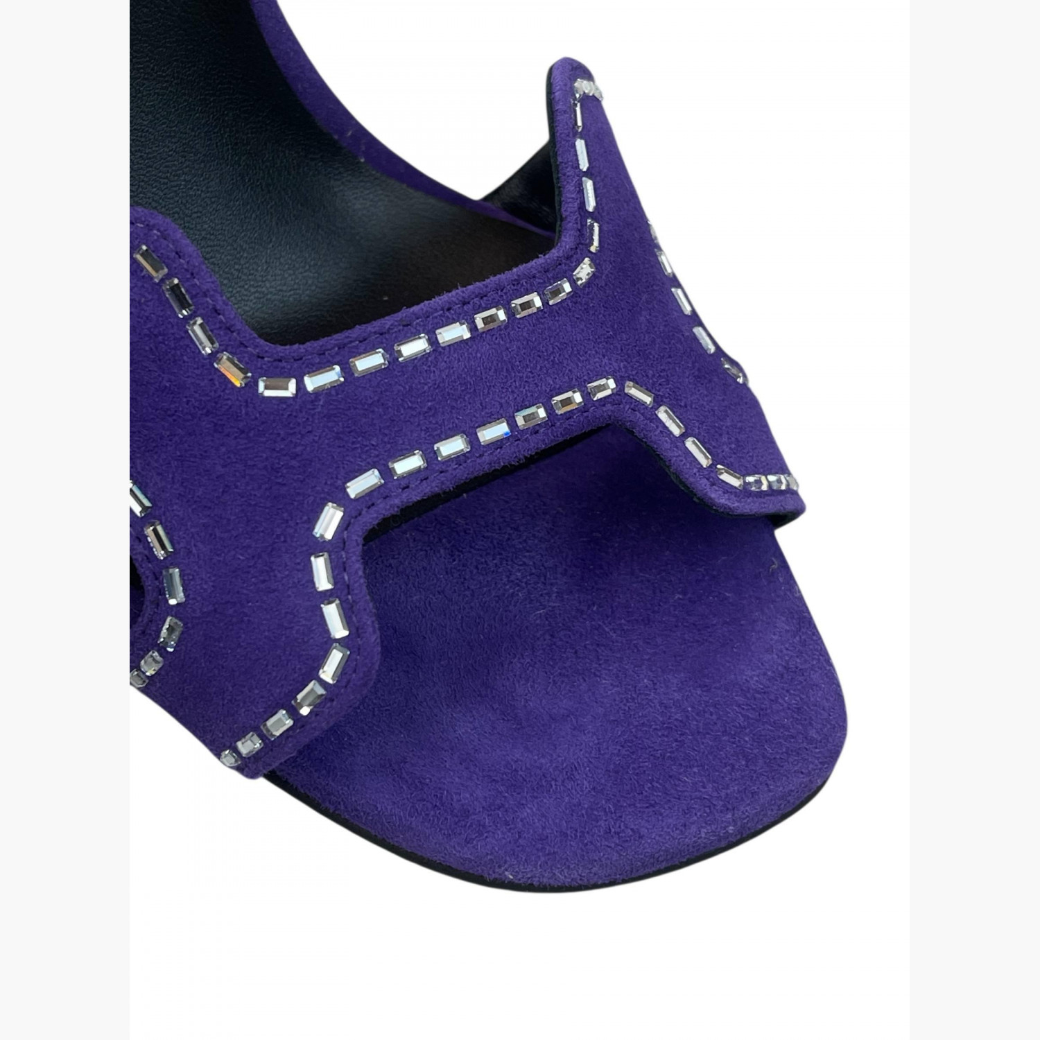 Фіолетові замшеві босоніжки з відкритим носком і стразами.У відмінному стані, є незначні сліди носіння.