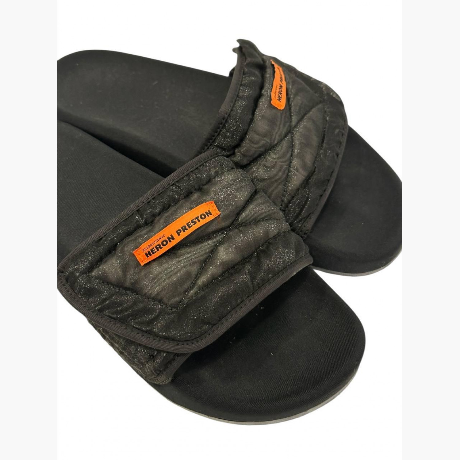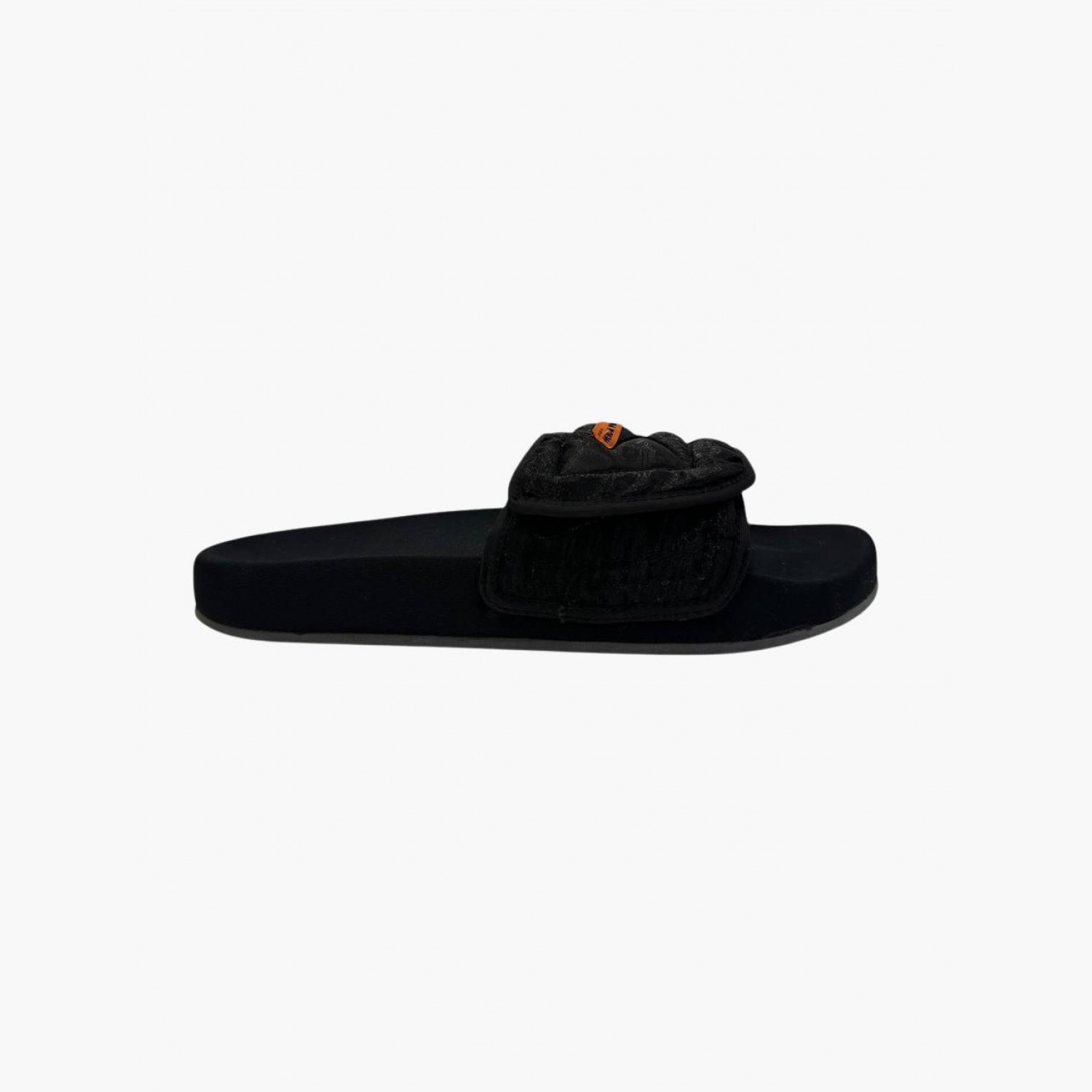 Чорні текстильні шльопанці на липучці. У хорошому стані, є сліди вжитку.