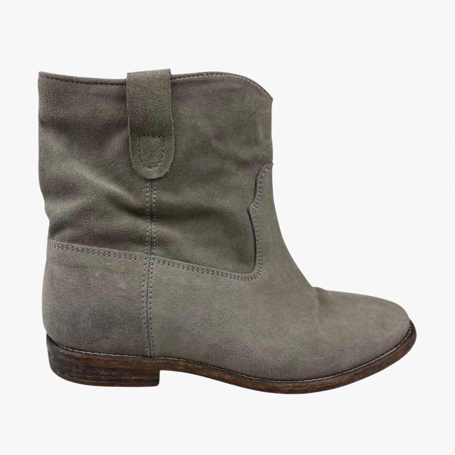 Сірі замшеві ботильйони. У хорошому стані, є сліди вжитку.