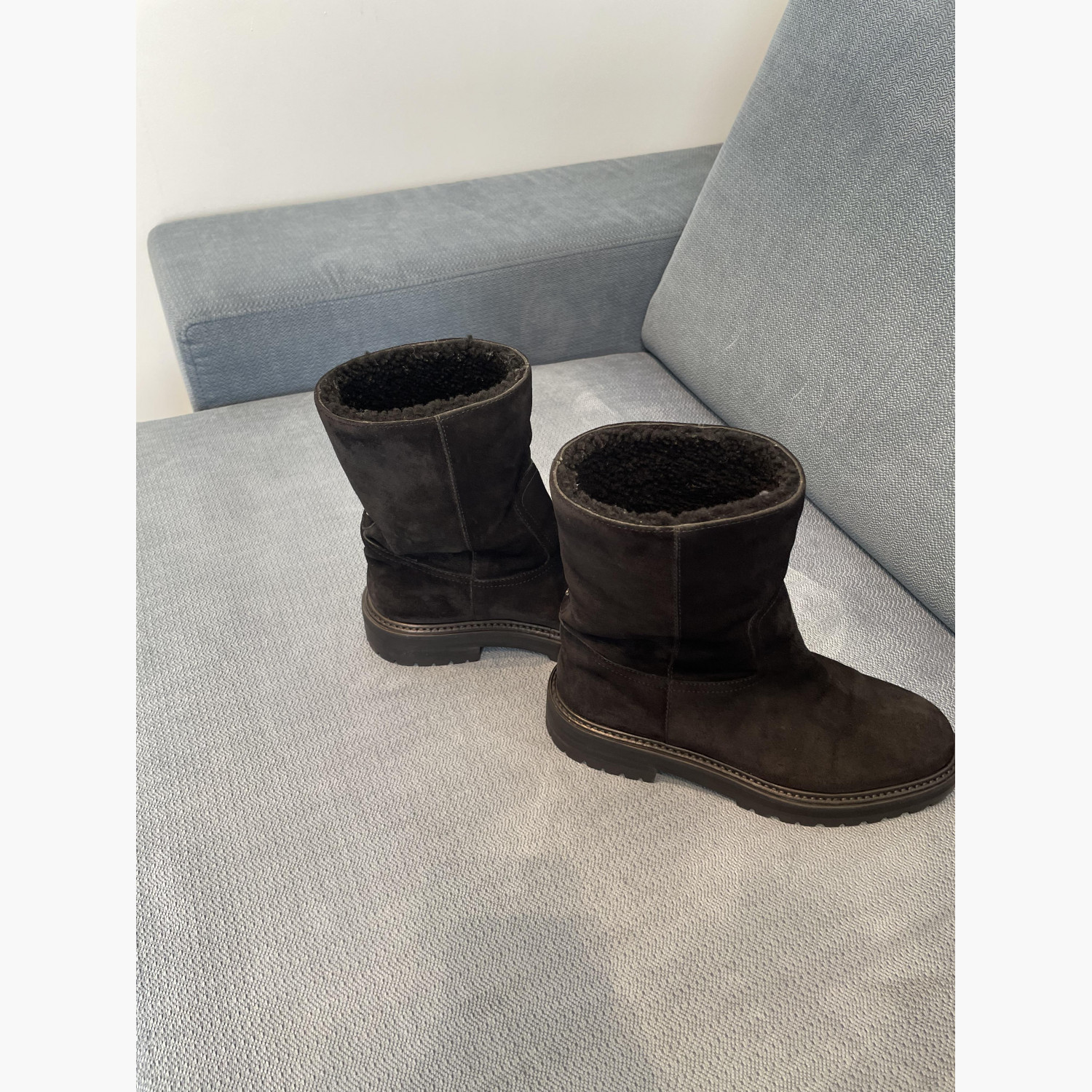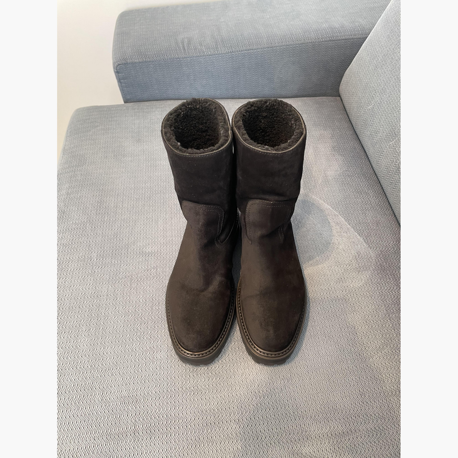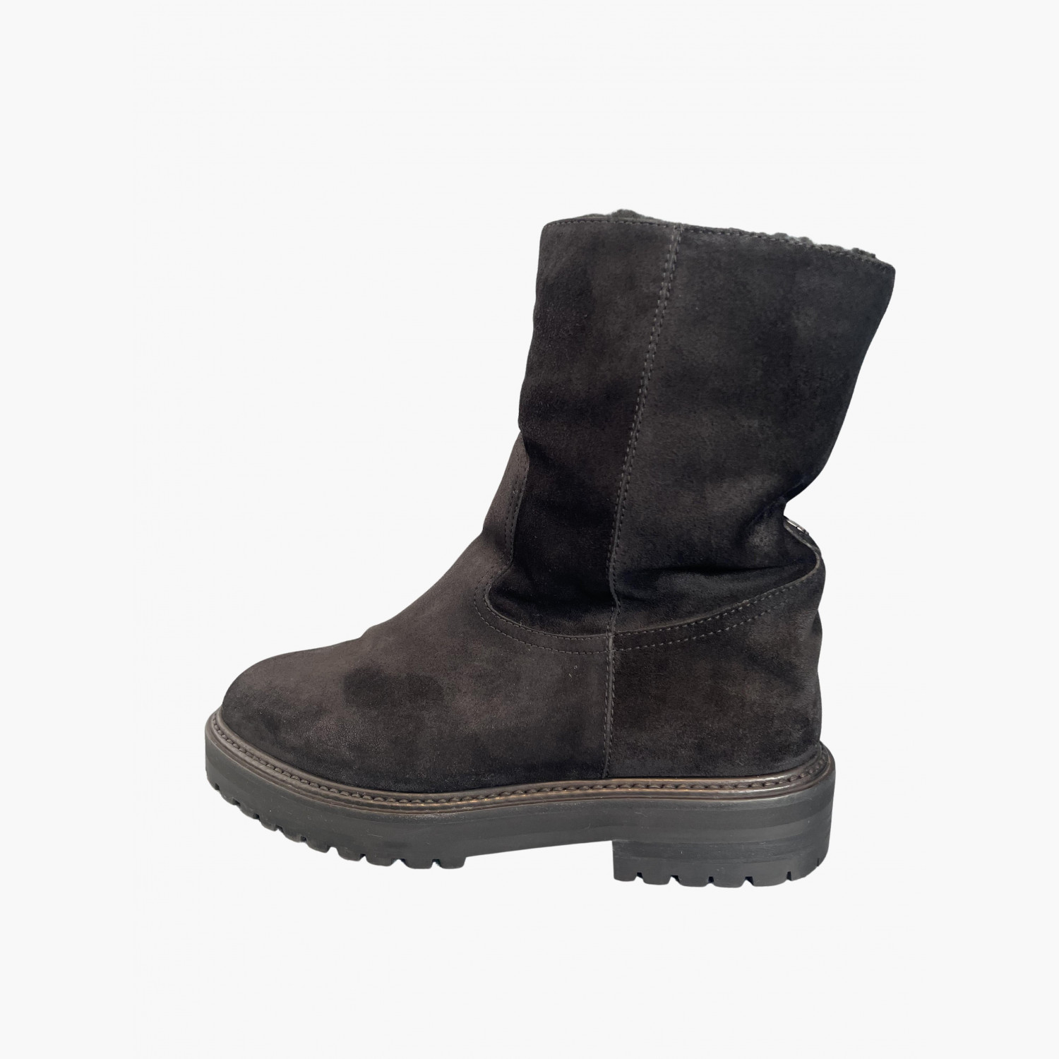 Чорні замшеві черевики, всередині натуральне тепле хутро. Стан дуже гарний — майже не були у вжитку.