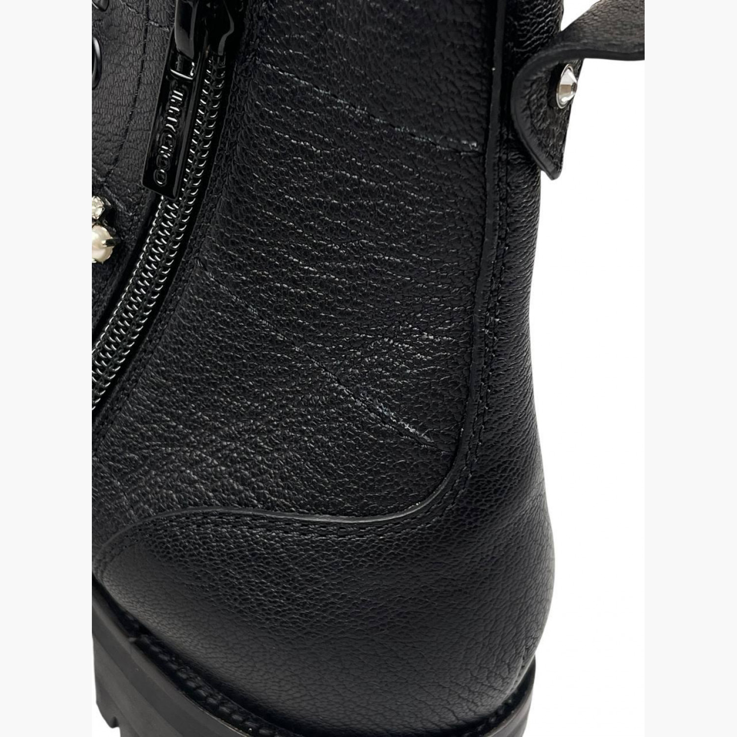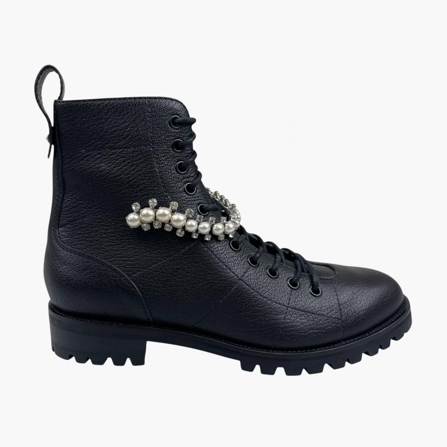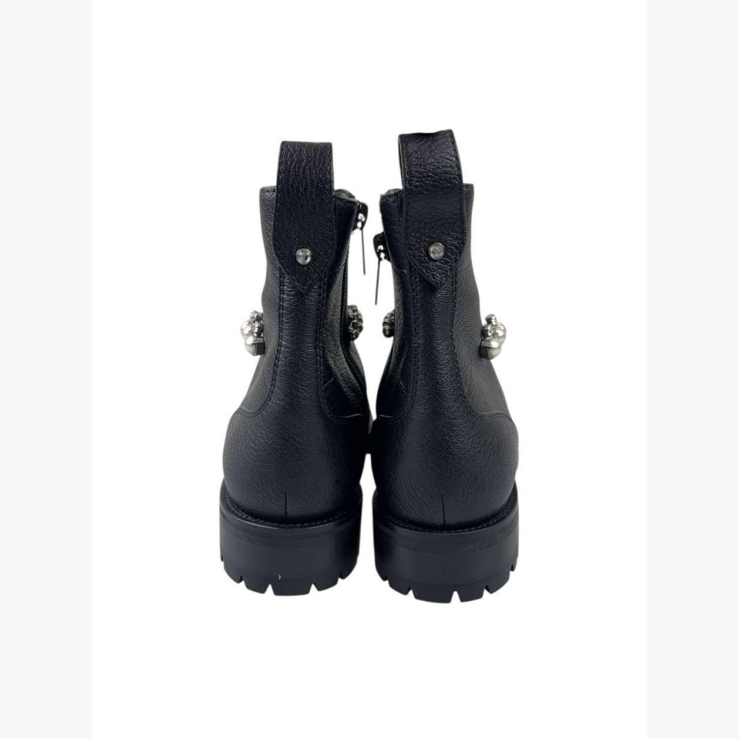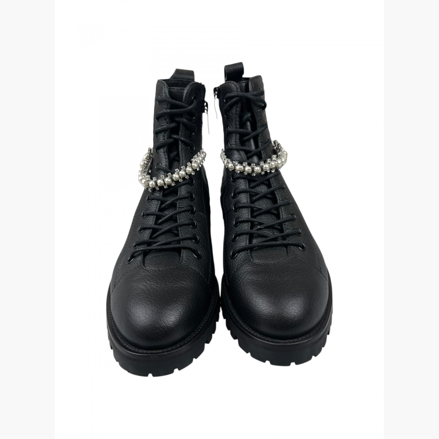 Чорні шкіряні черевики на шнурівці з декором із намистин і каменів. У відмінному стані, є сліди вжитку.