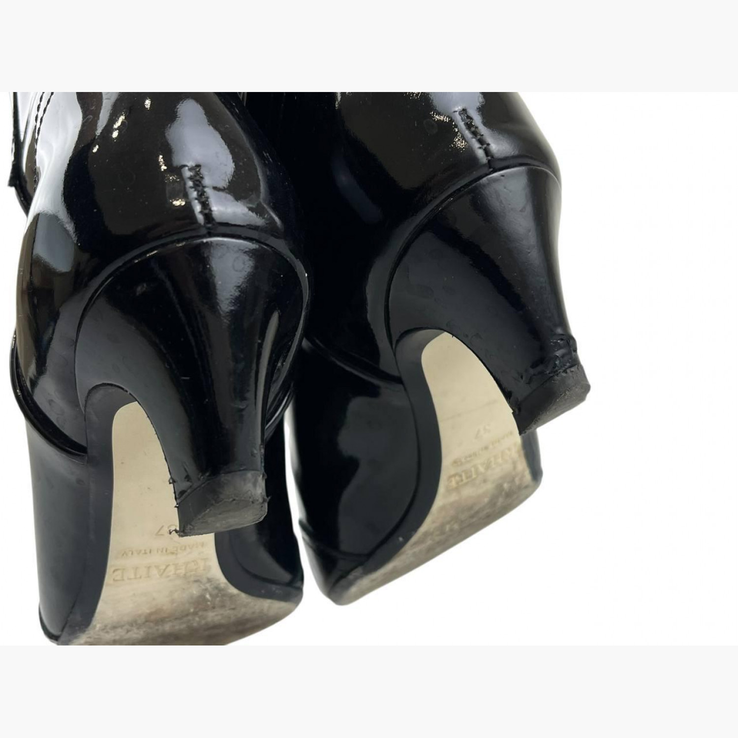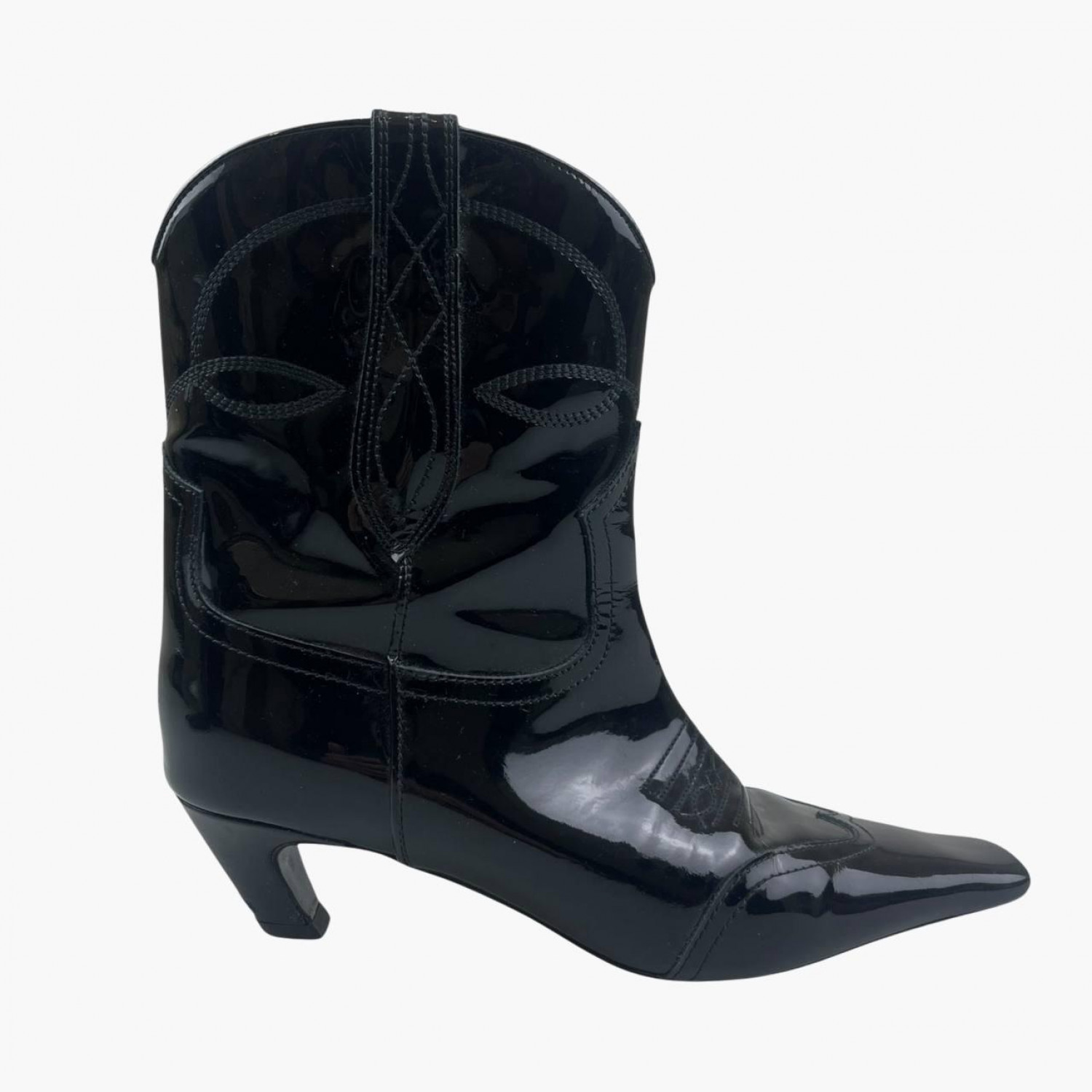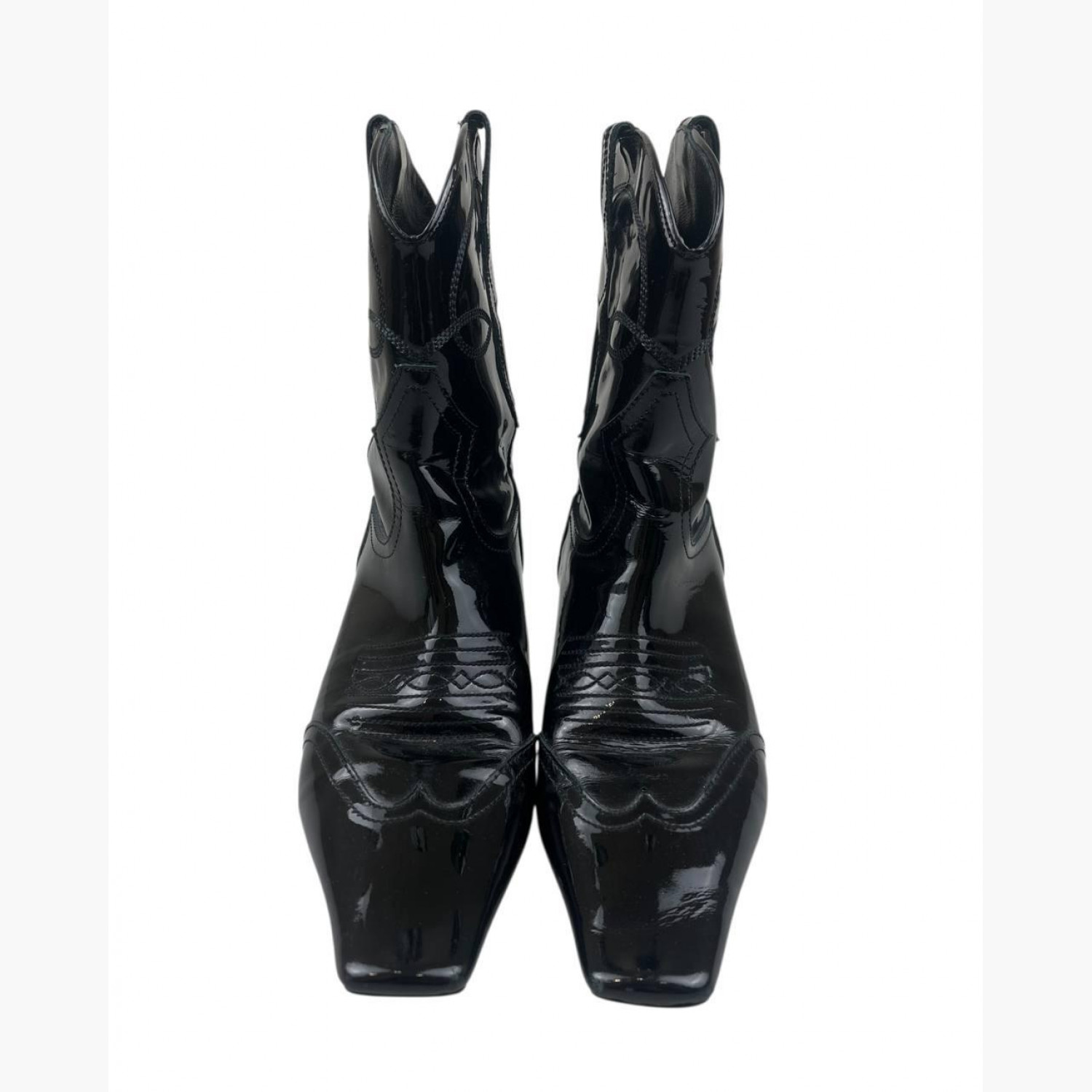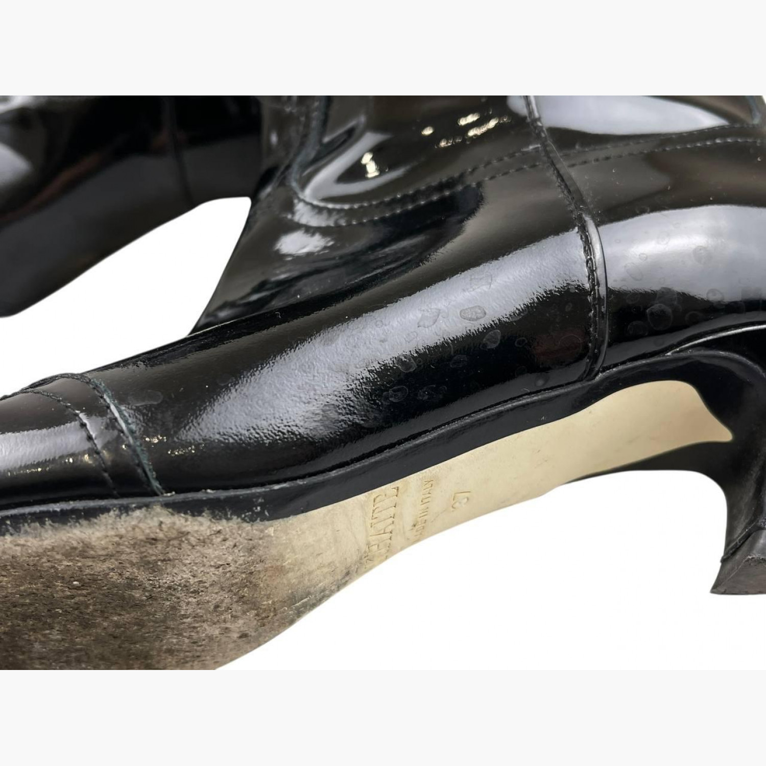 Чорні черевики-казаки, виготовлені з лакованої шкіри. У хорошому стані, є потертості та сліди вжитку.