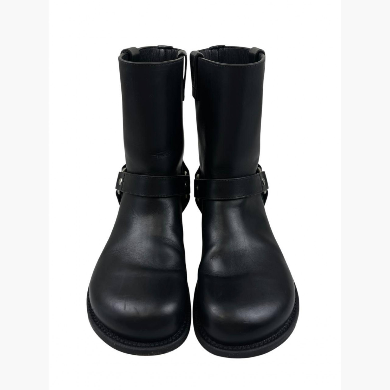 Чорні шкіряні черевики з металевим кільцем та трьома пряжками. У відмінному стані, є незначні сліди вжитку.