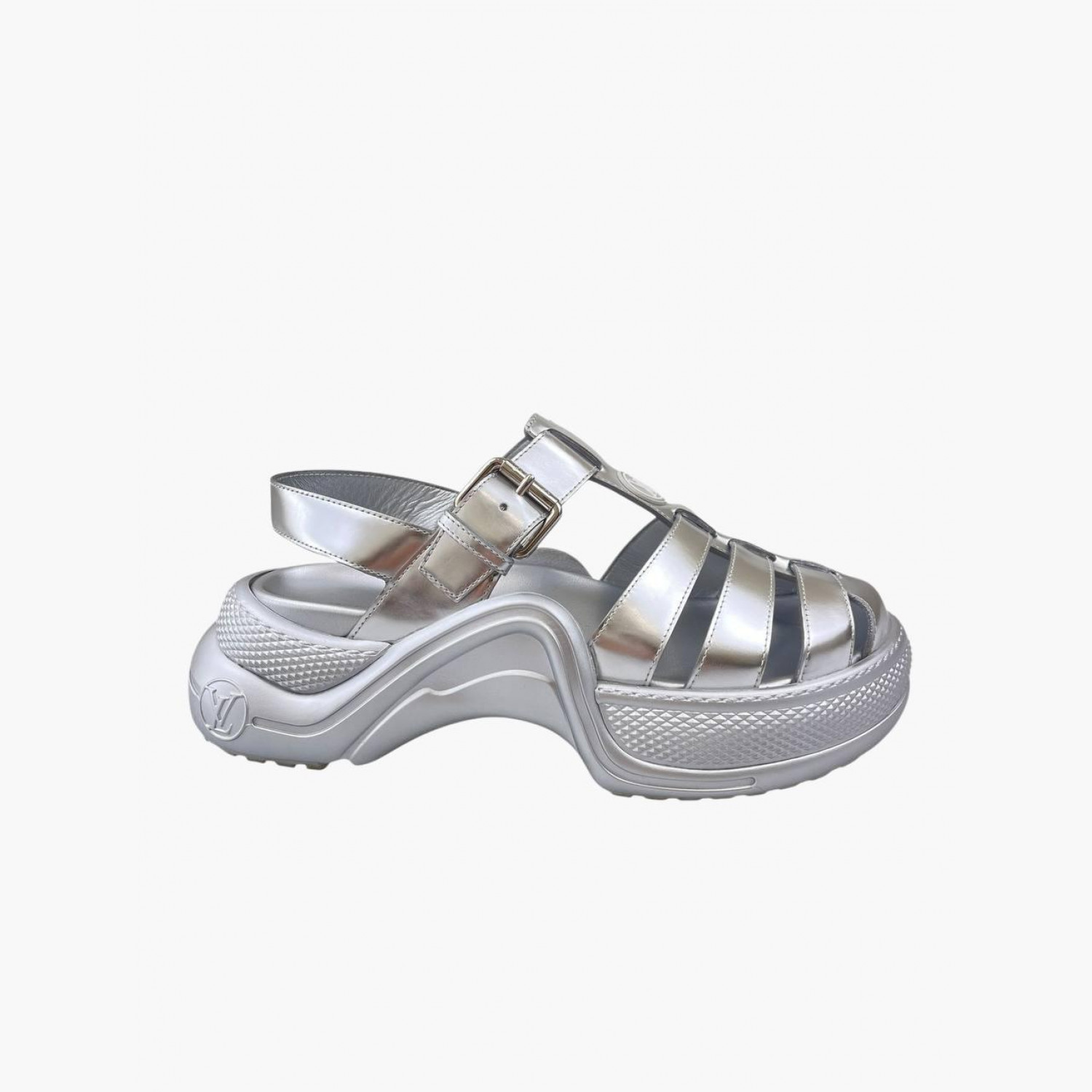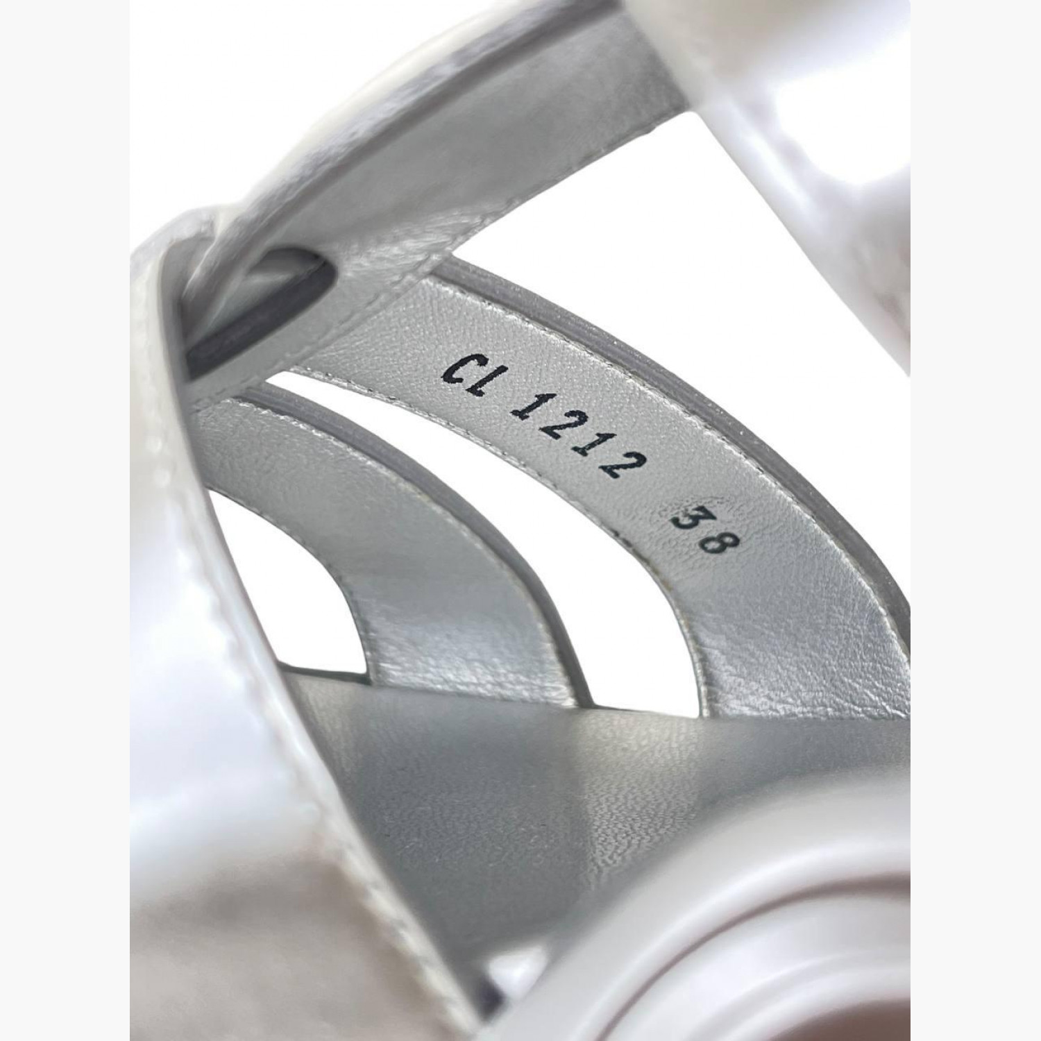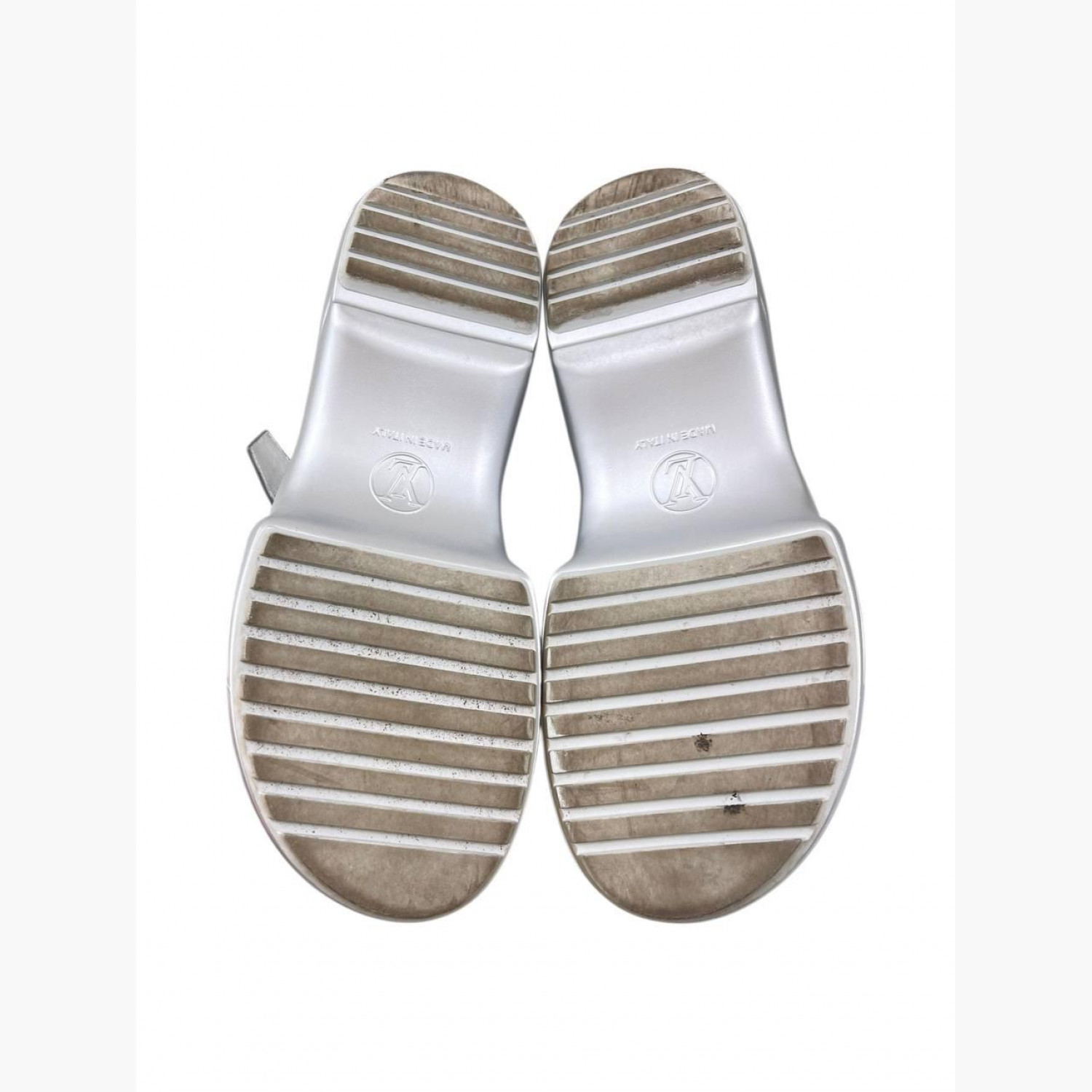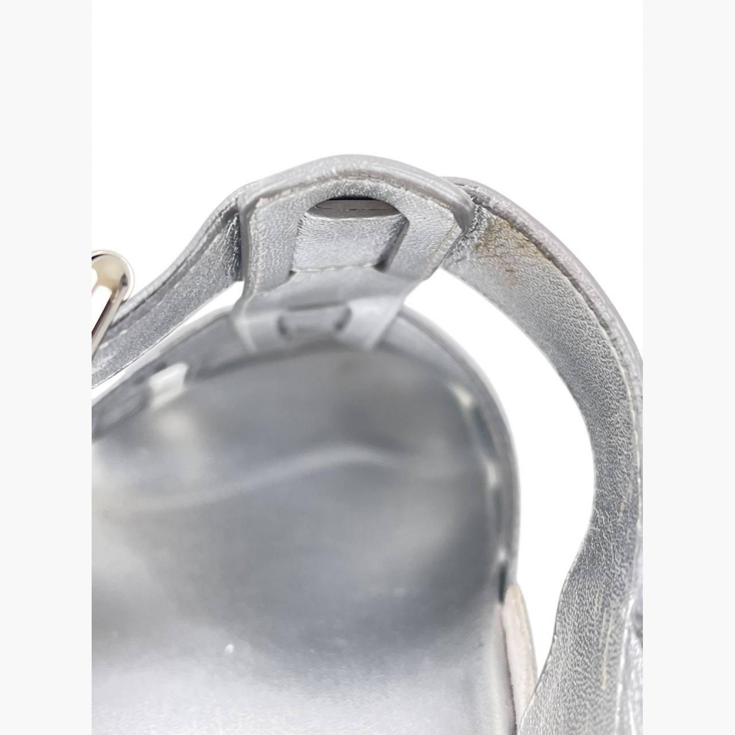 Сріблясті сандалії з лакованої шкіри на ремінці. У хорошому стані, є незначні сліди вжитку.