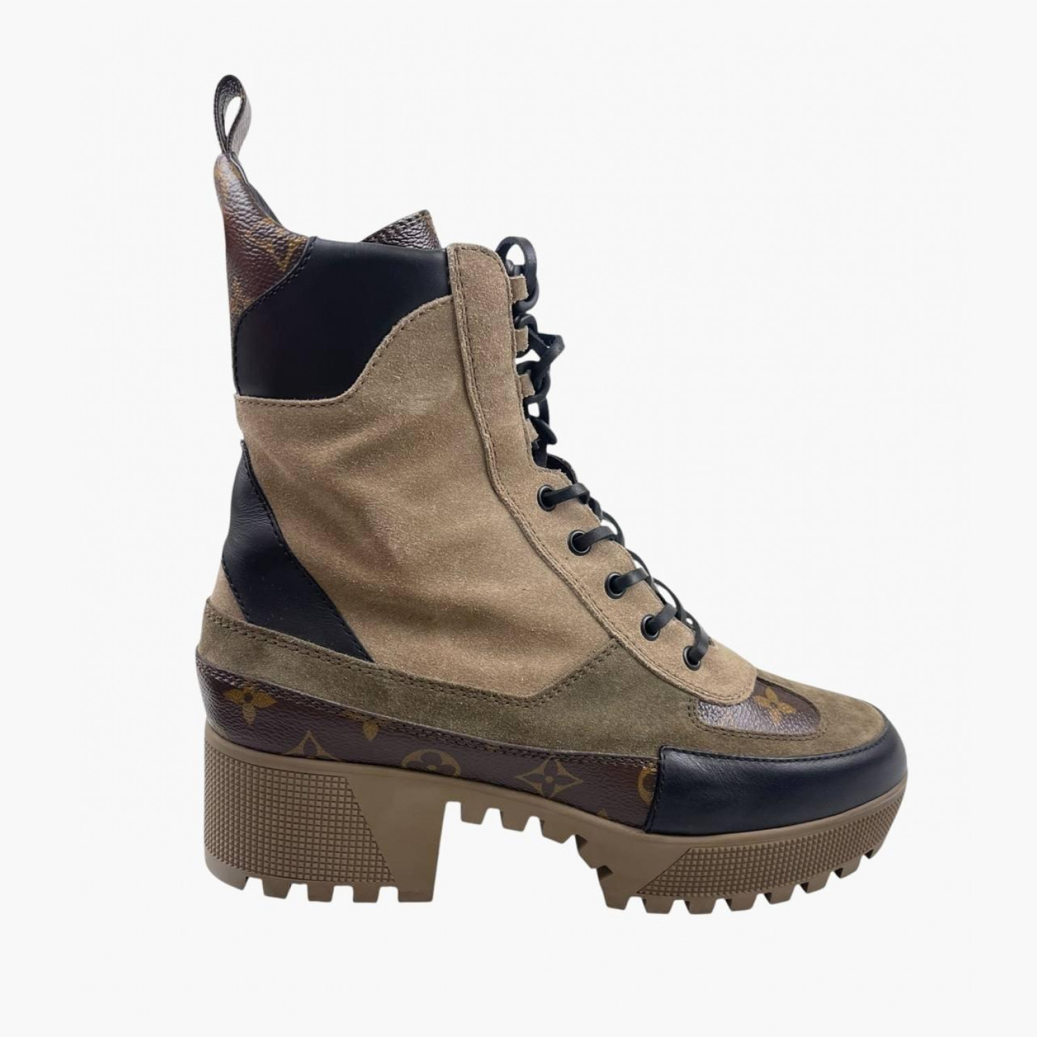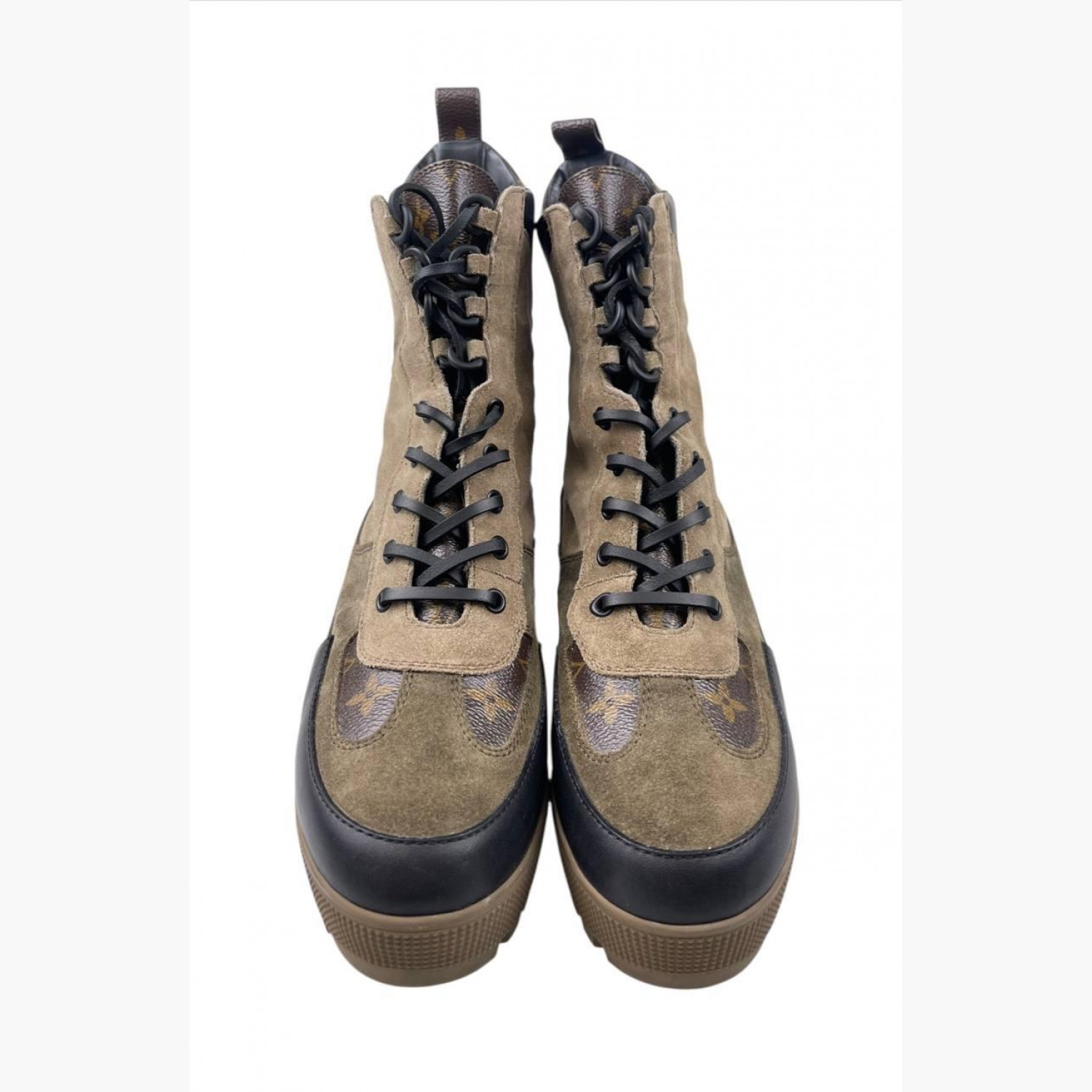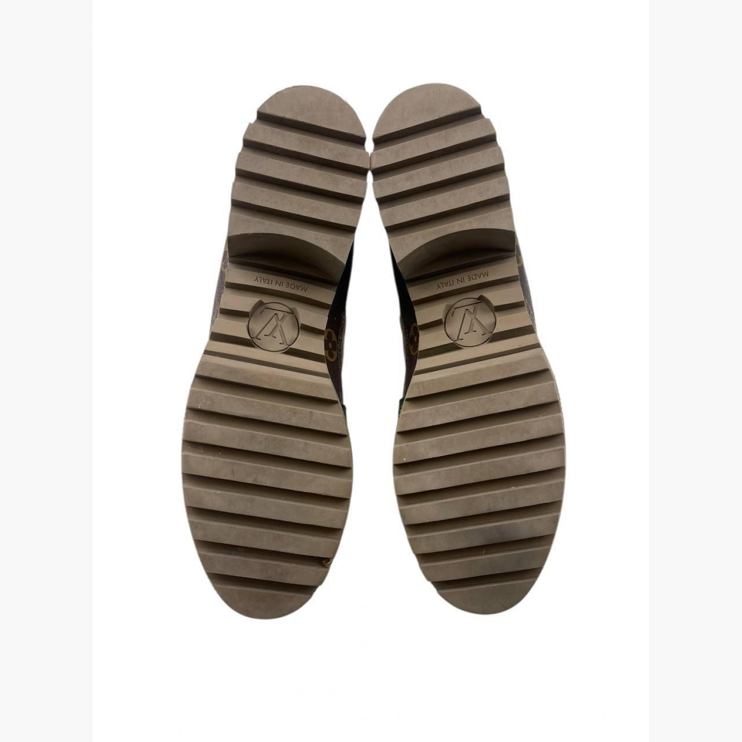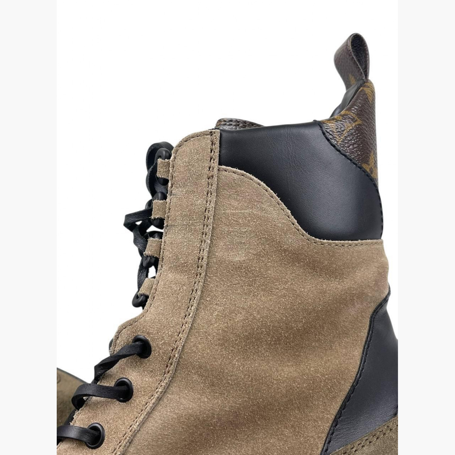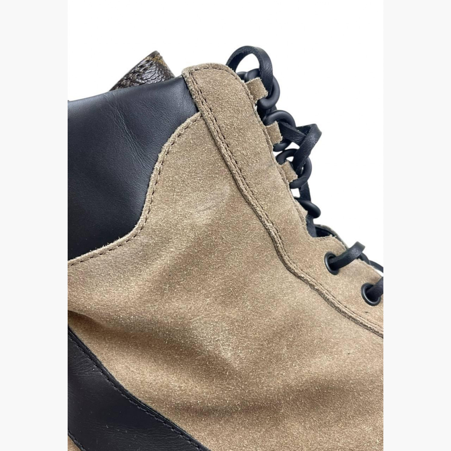 Коричневі замшеві черевики на тракторній підошві з язичком і вставками з канви на шкіряних шнурках. У комплекті додаткові чорні шнурки. У хорошому стані, є незначні сліди вжитку.