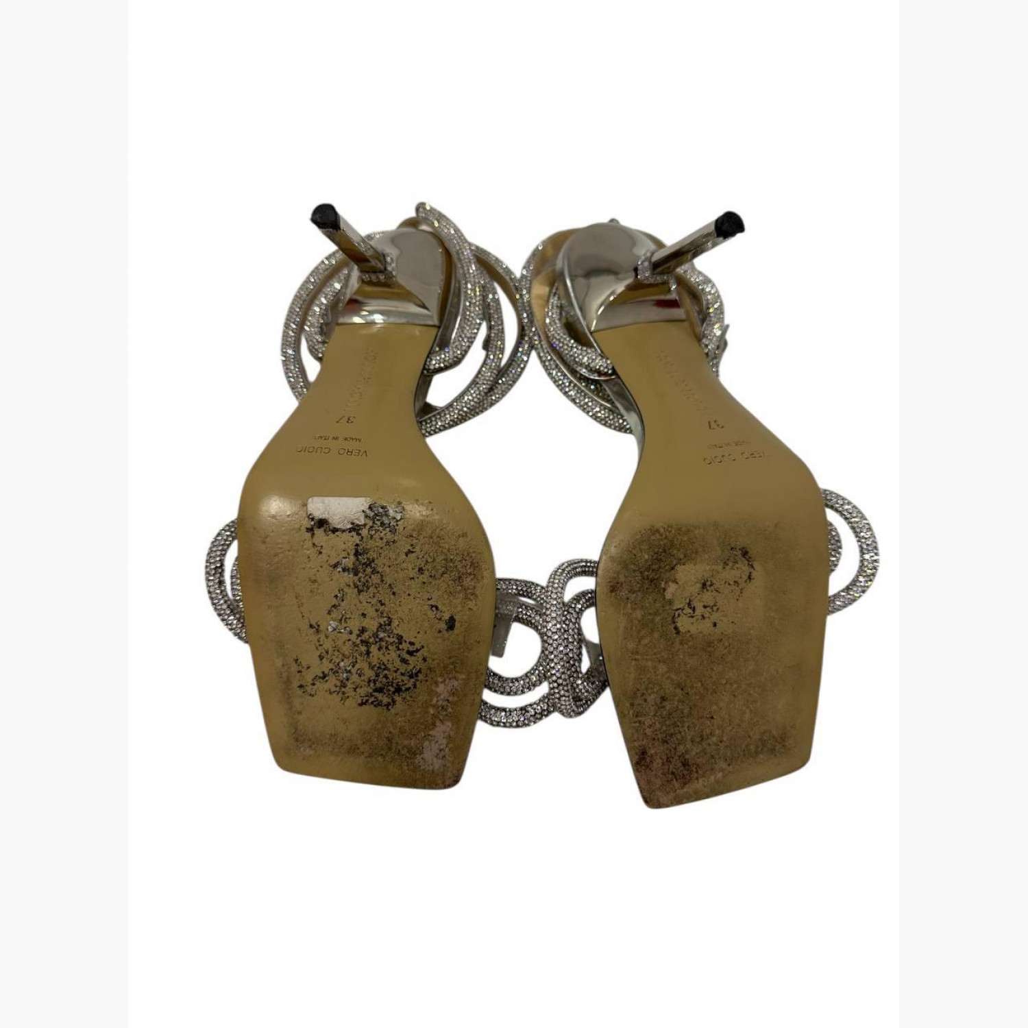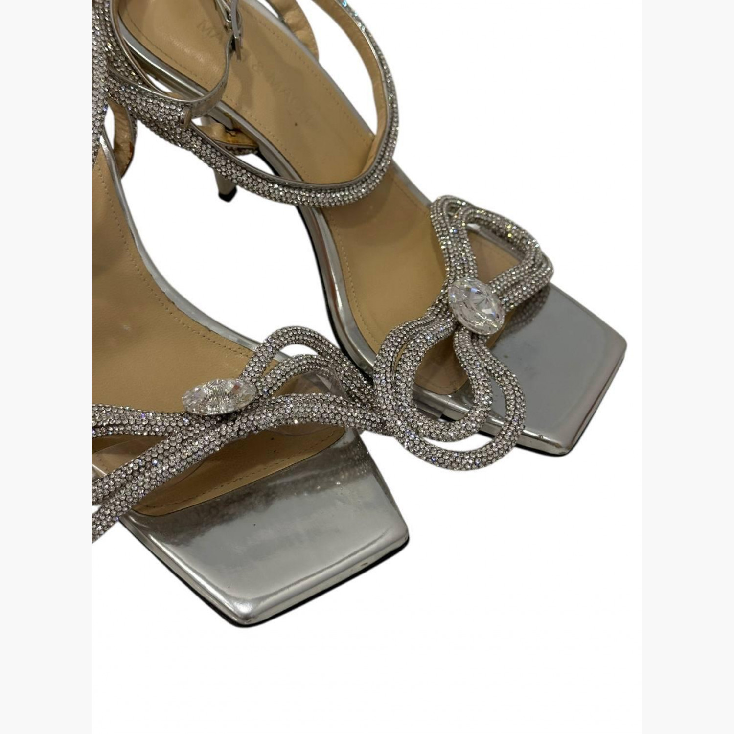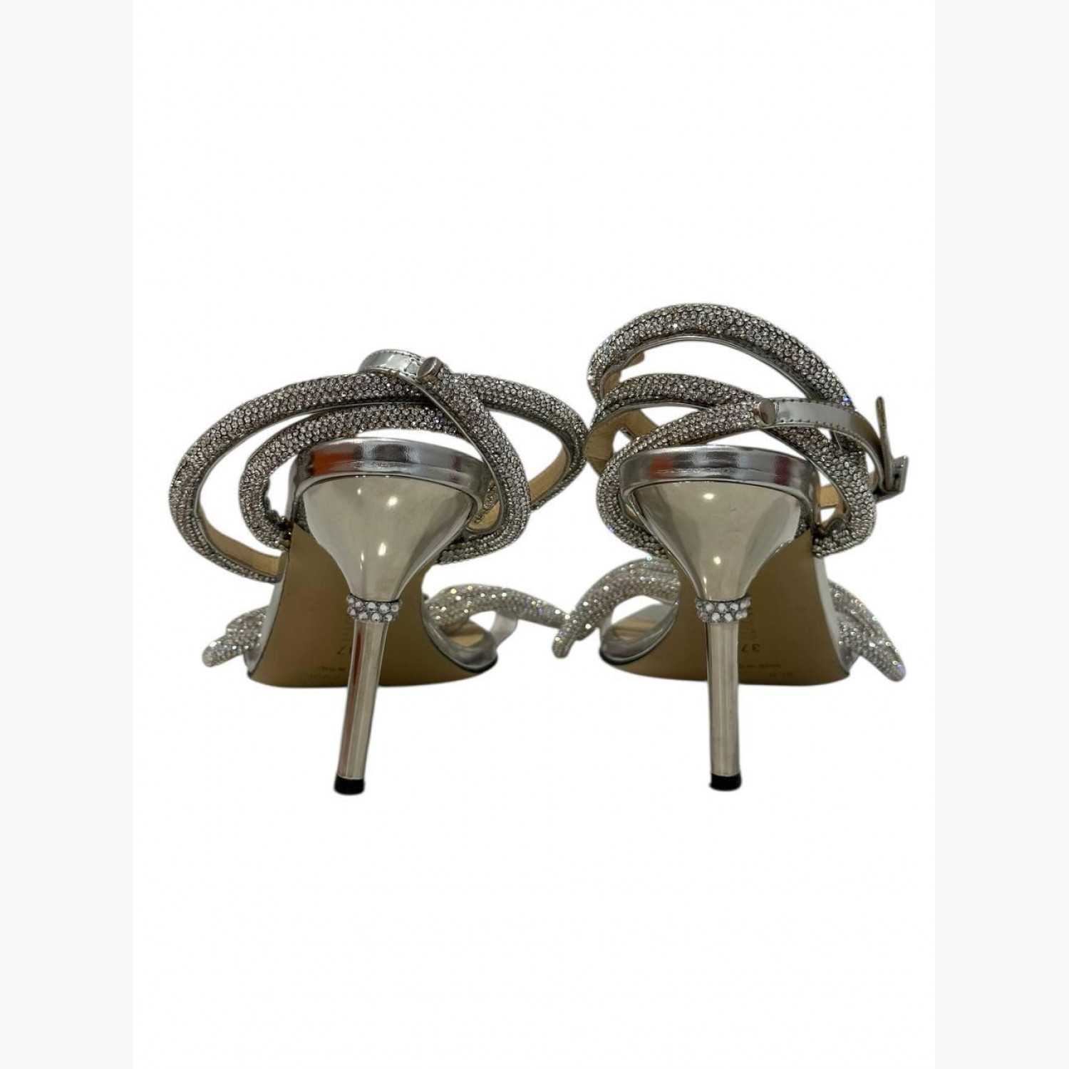 Сріблясті шкіряні босоніжки зі стразами. У хорошому стані, є потертості та сліди вжитку.