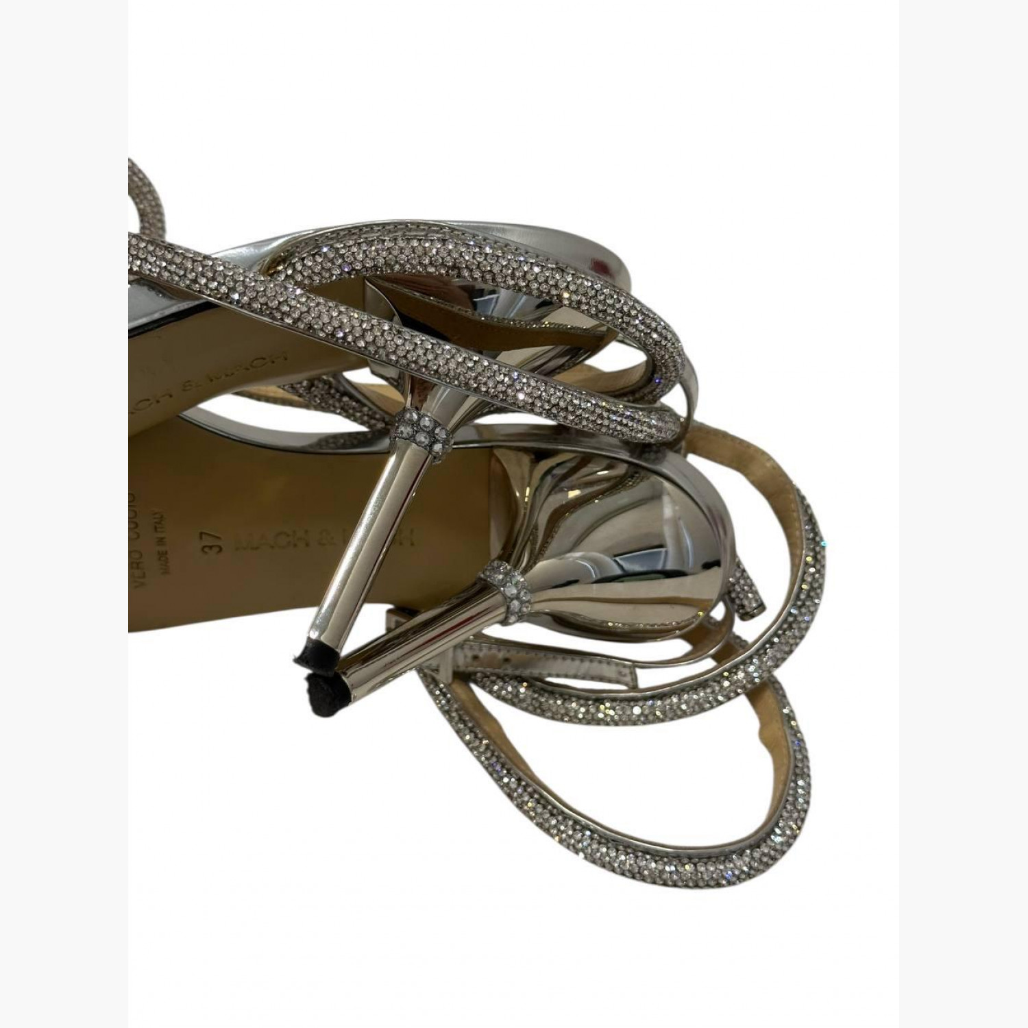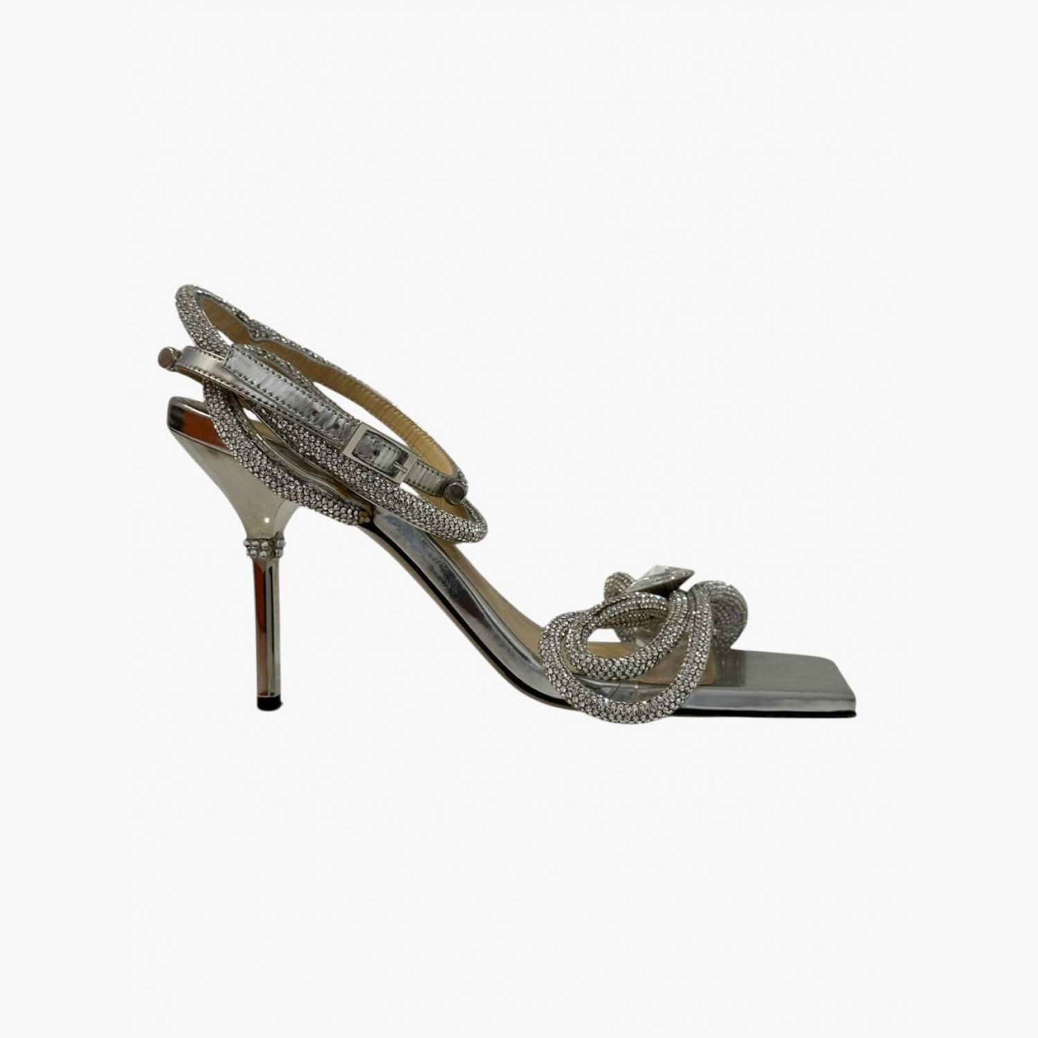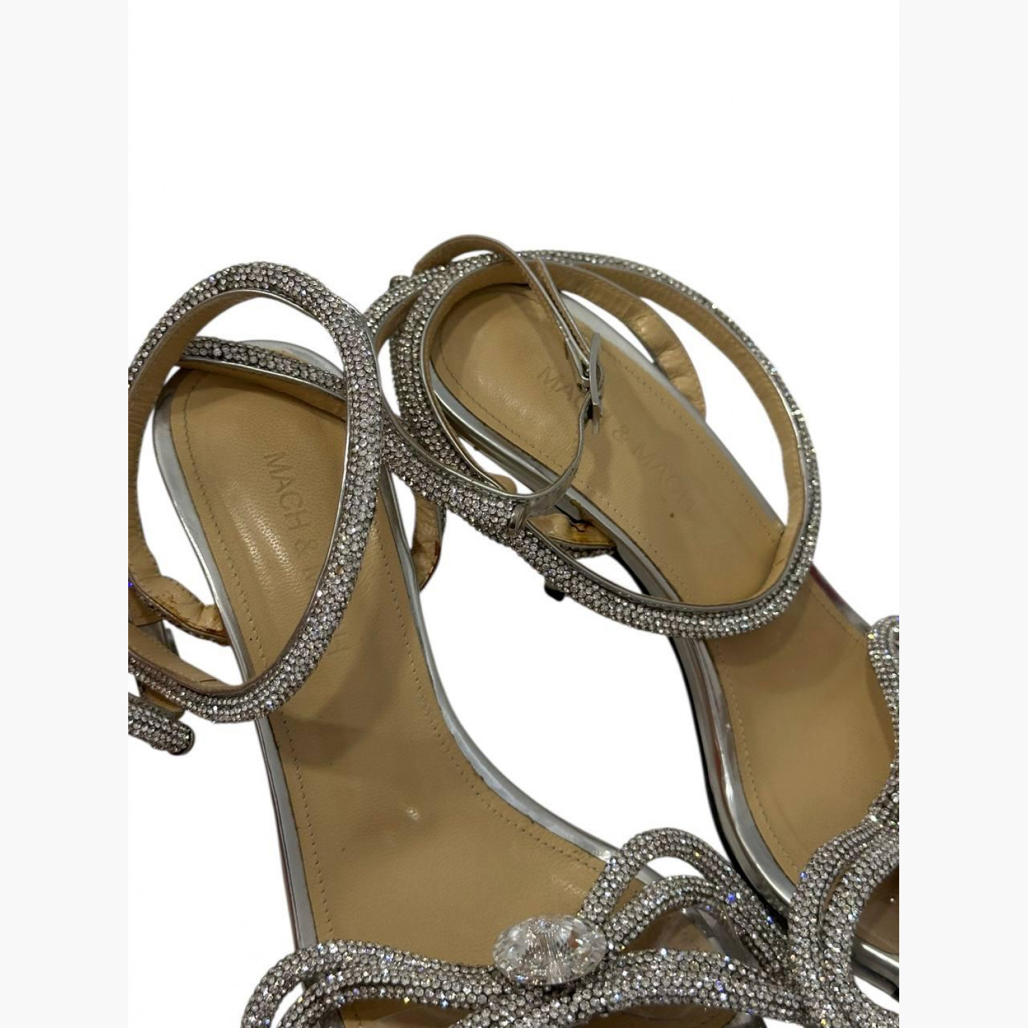 Сріблясті шкіряні босоніжки зі стразами. У хорошому стані, є потертості та сліди вжитку.