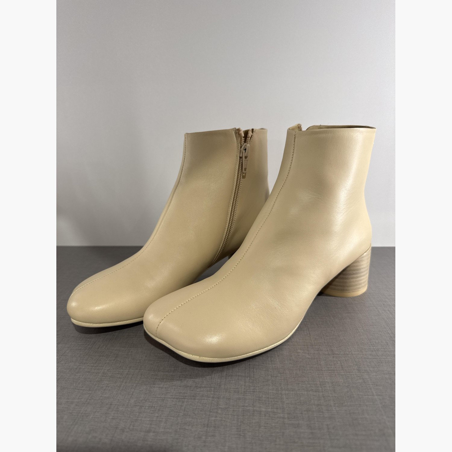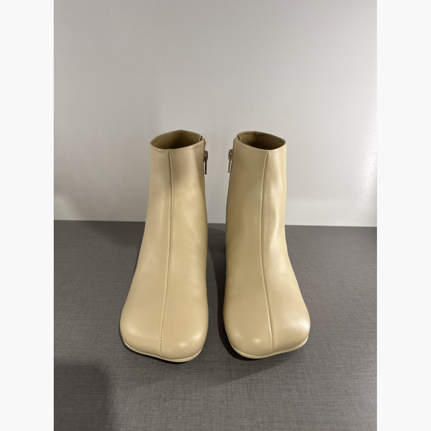 Нові шкіряні ботільони бежевого кольору.