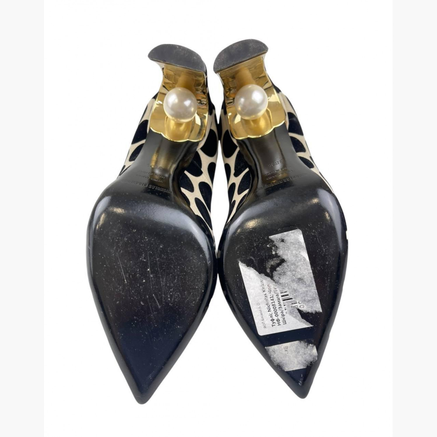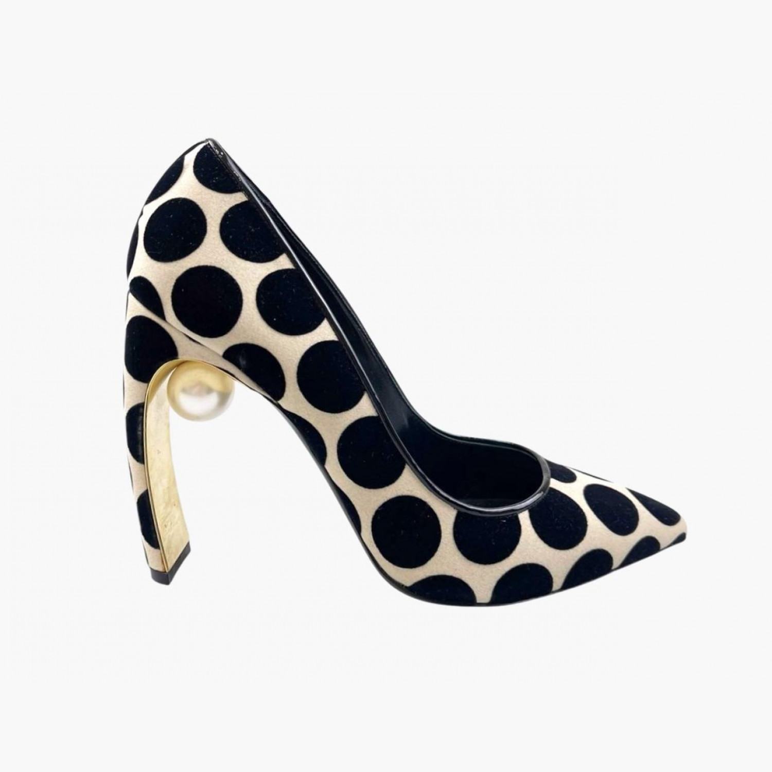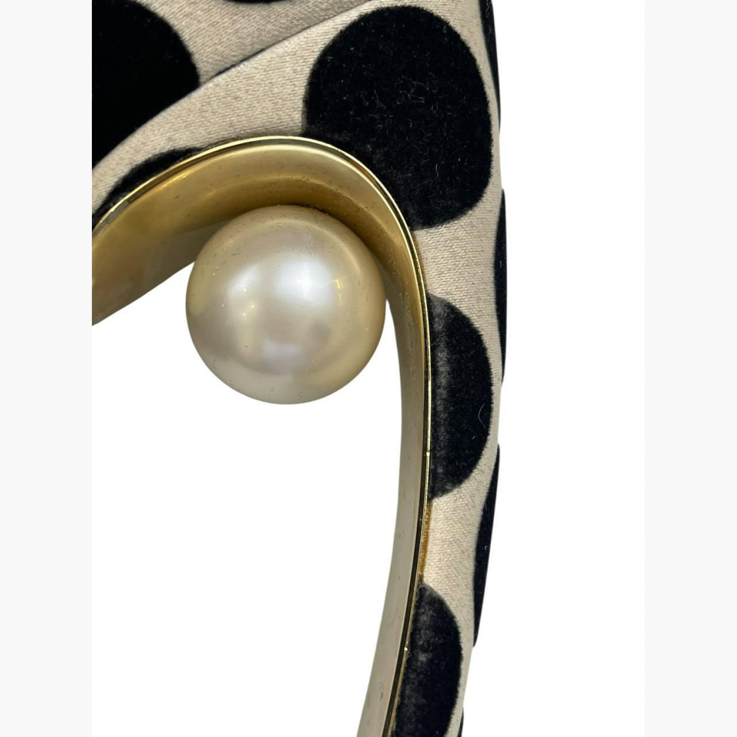 Текстильні туфлі в чорний горох з перлинами під підбором. У відмінному стані, є незначні сліди вжитку.