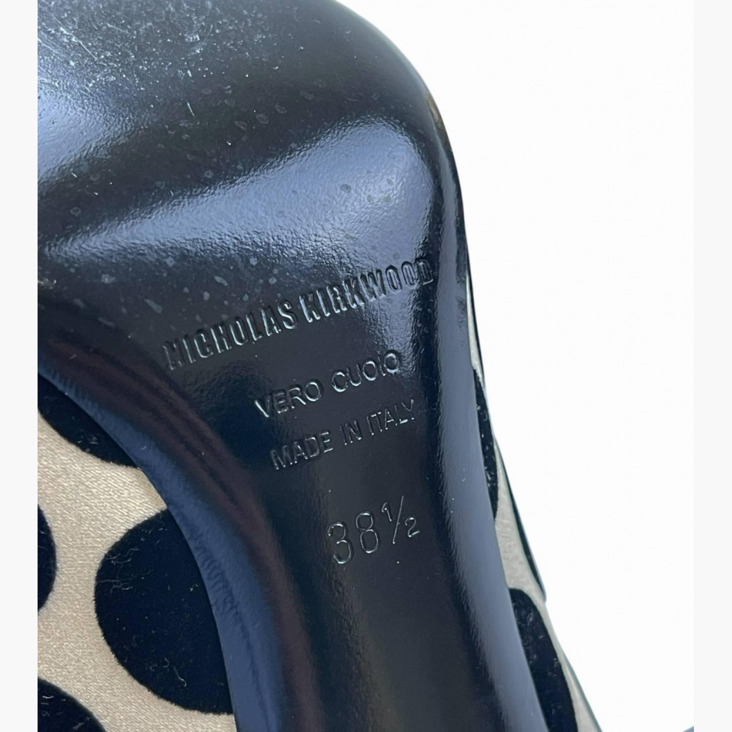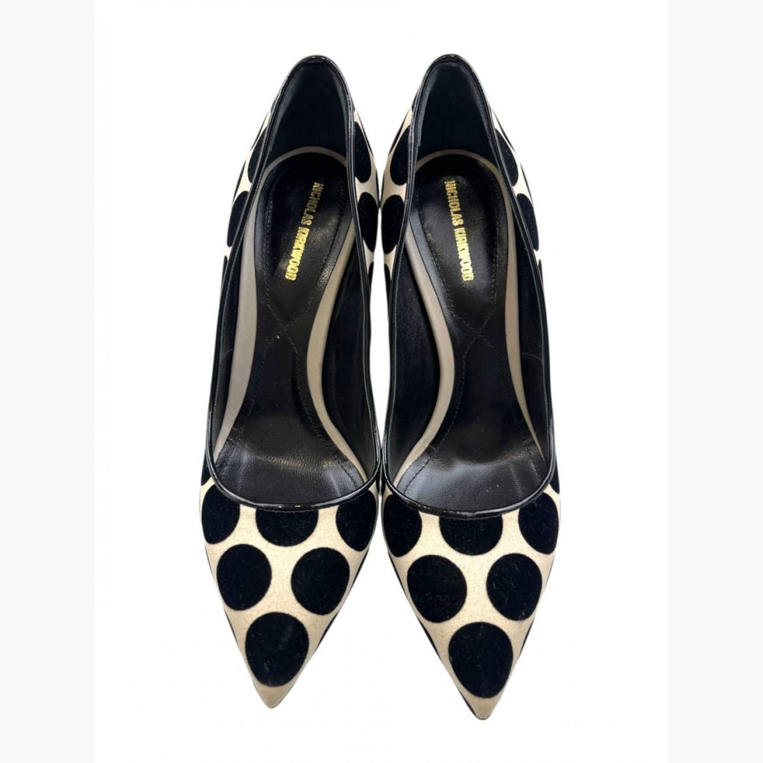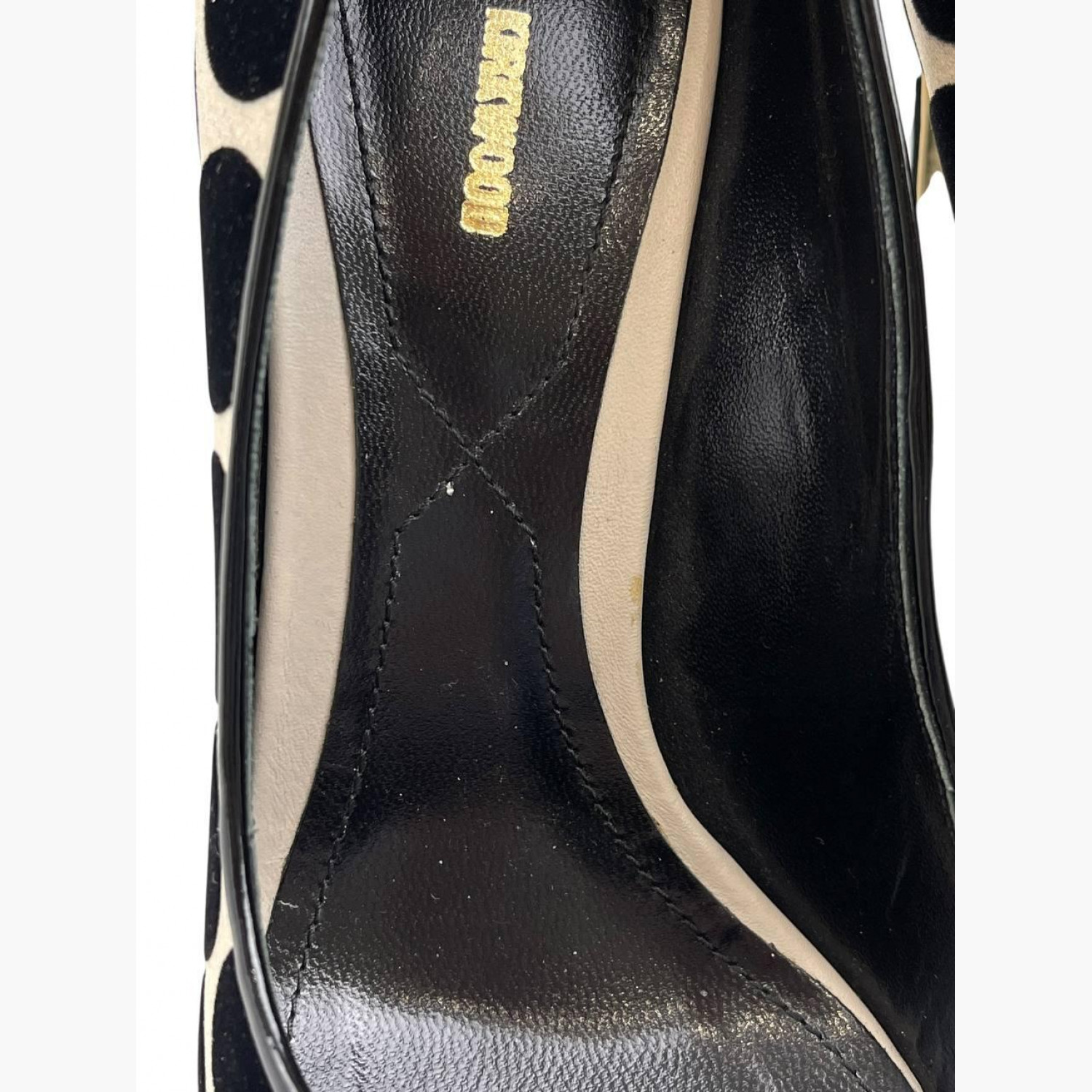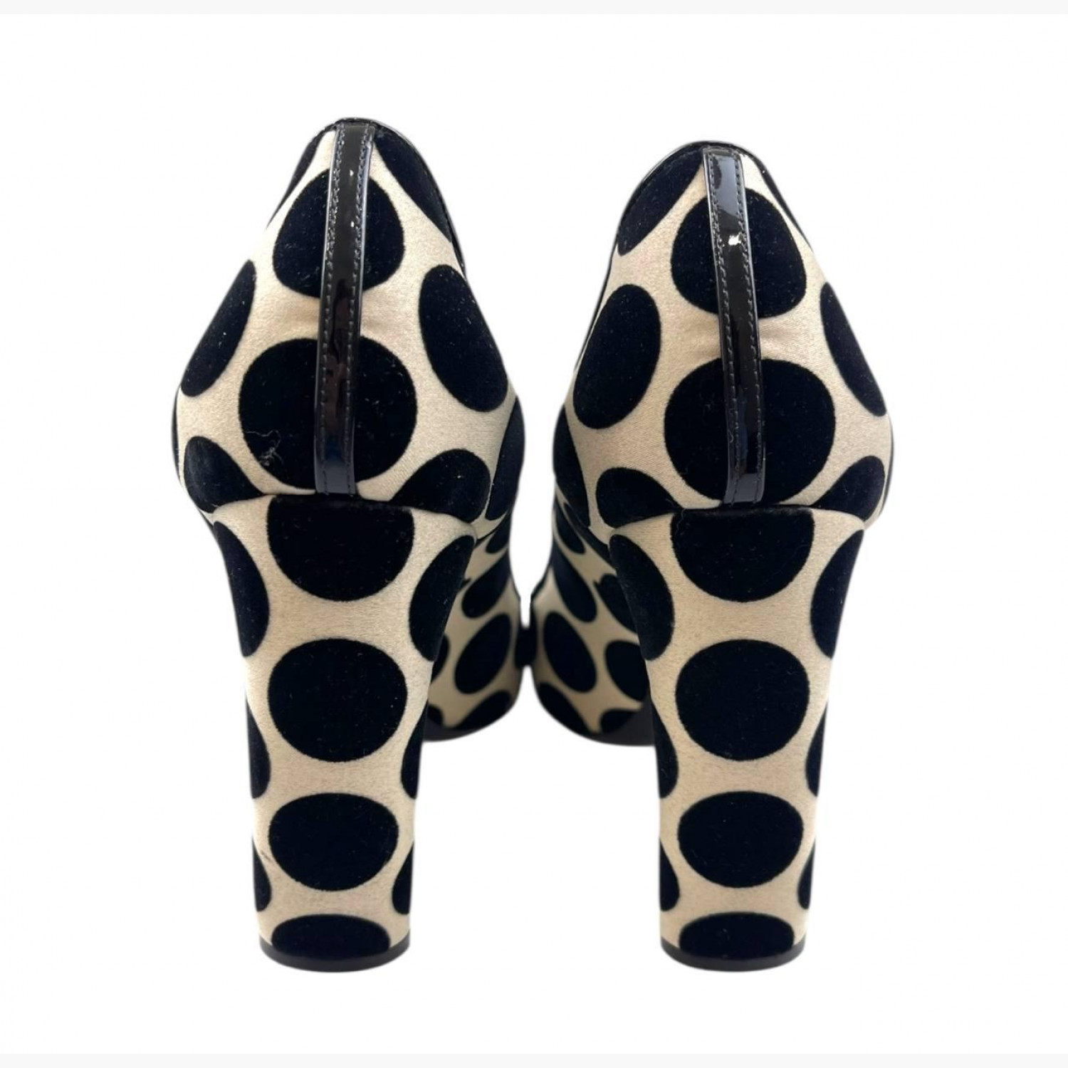 Текстильні туфлі в чорний горох з перлинами під підбором. У відмінному стані, є незначні сліди вжитку.