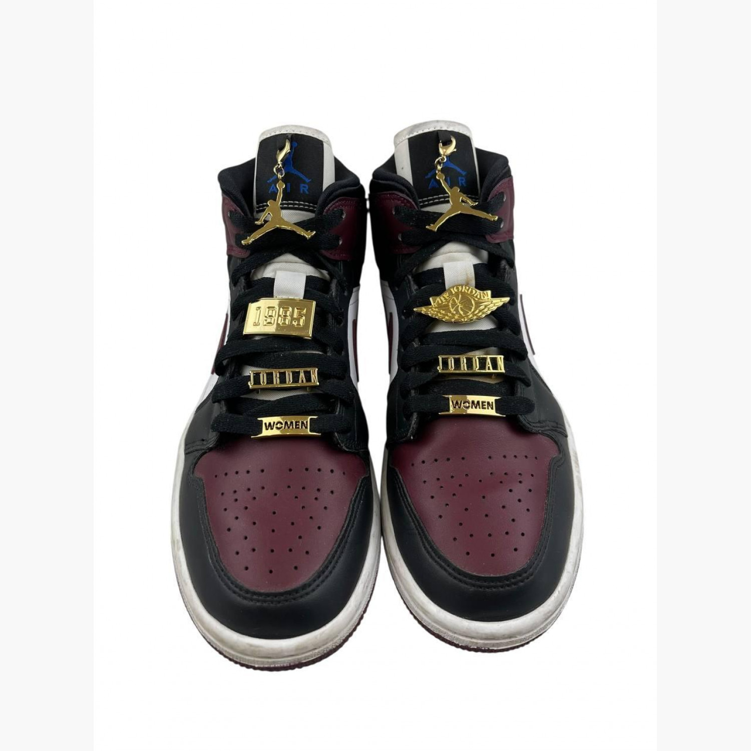 Фіолетові шкіряні кросівки з чорними вставками та золотими знімними брелоками. У хорошому стані, є сліди вжитку.