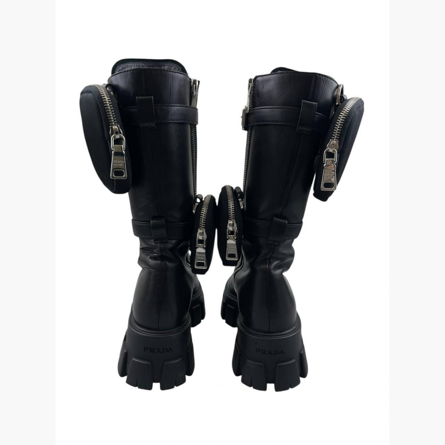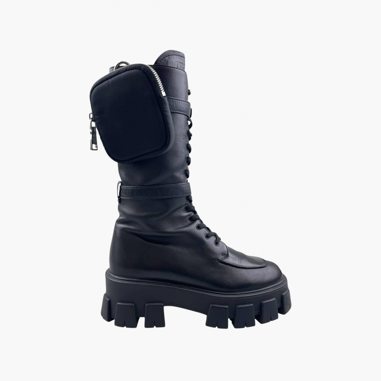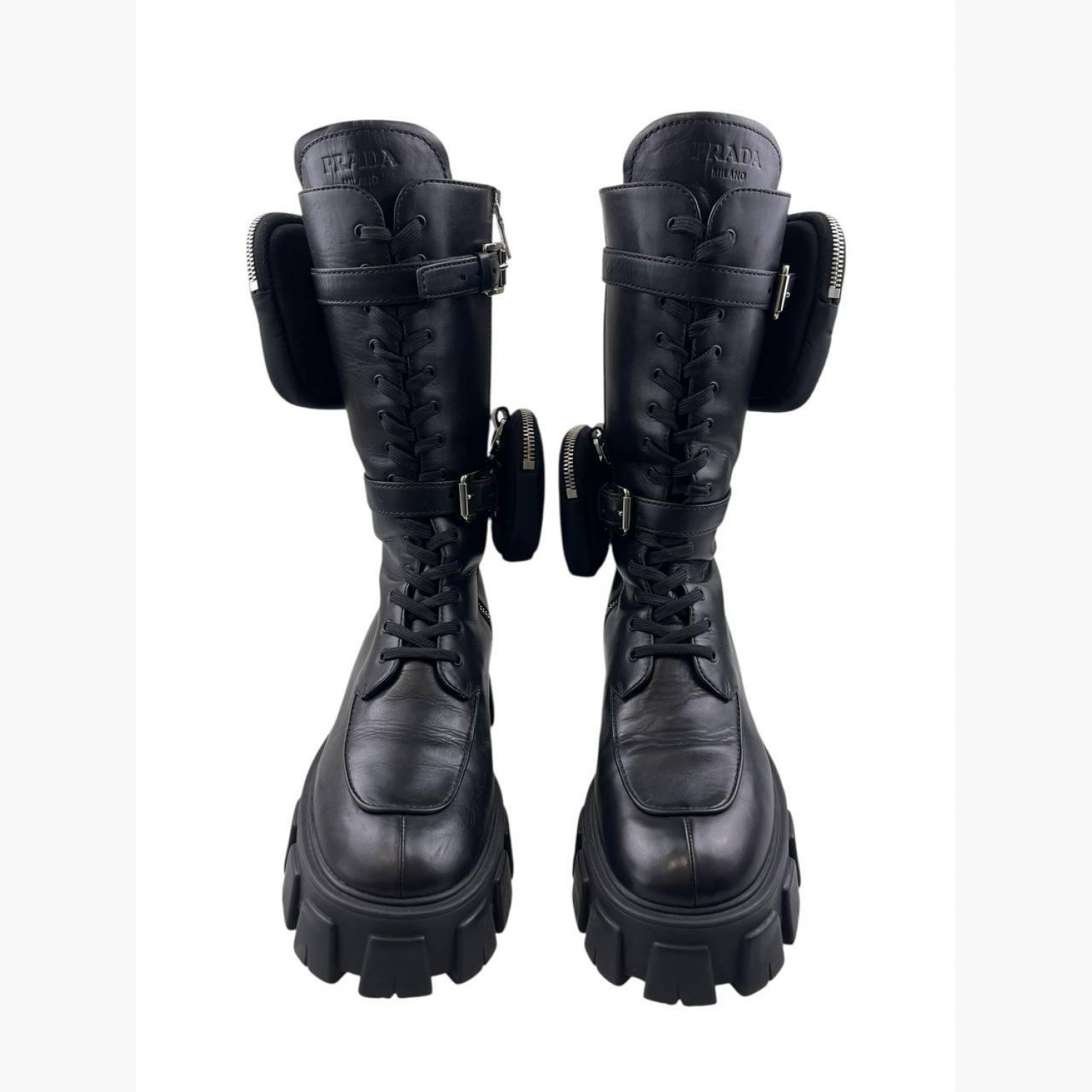 Чорні шкіряні високі черевики на шнурівці з підвісними знімними текстильними кишеньками на шкіряному ремінці. У дуже гарному стані, є незначні потертості на підошві.