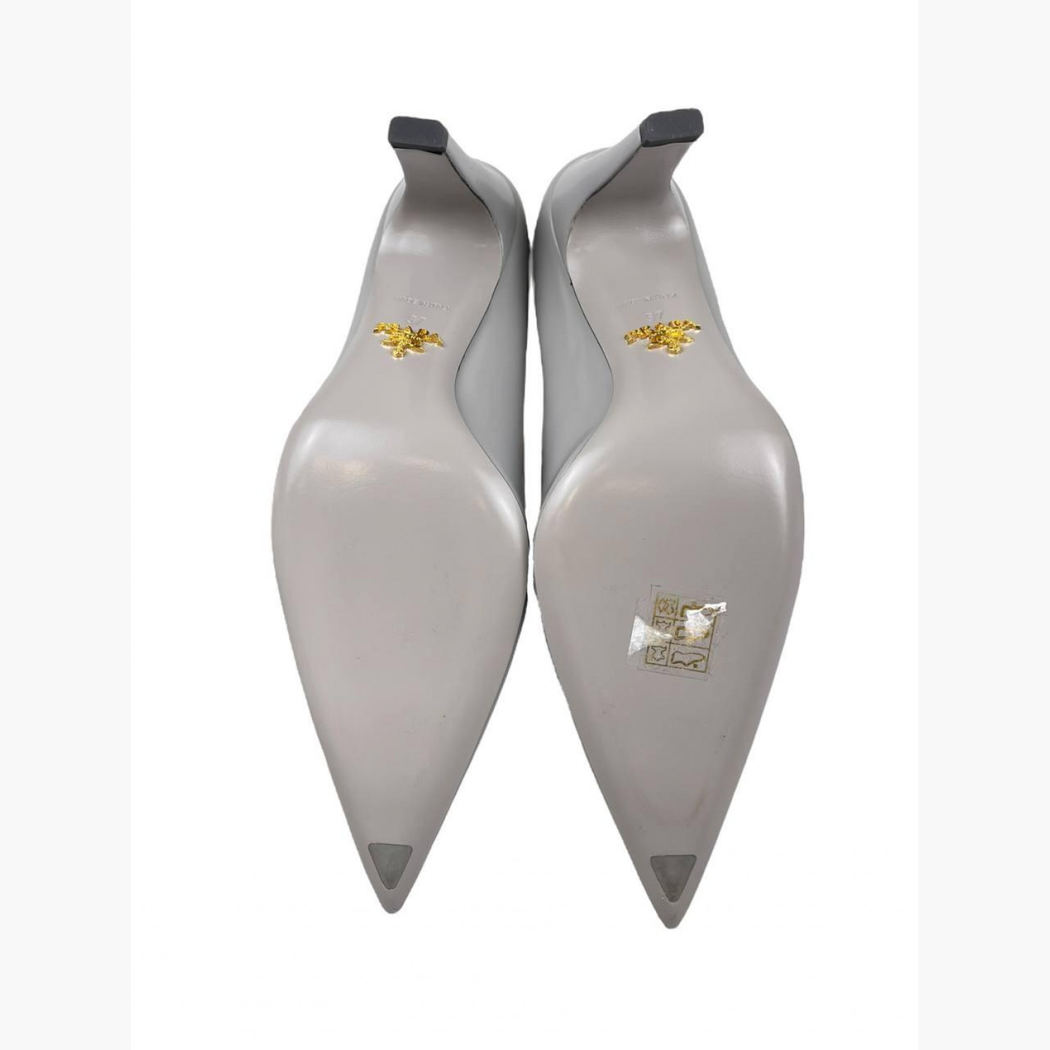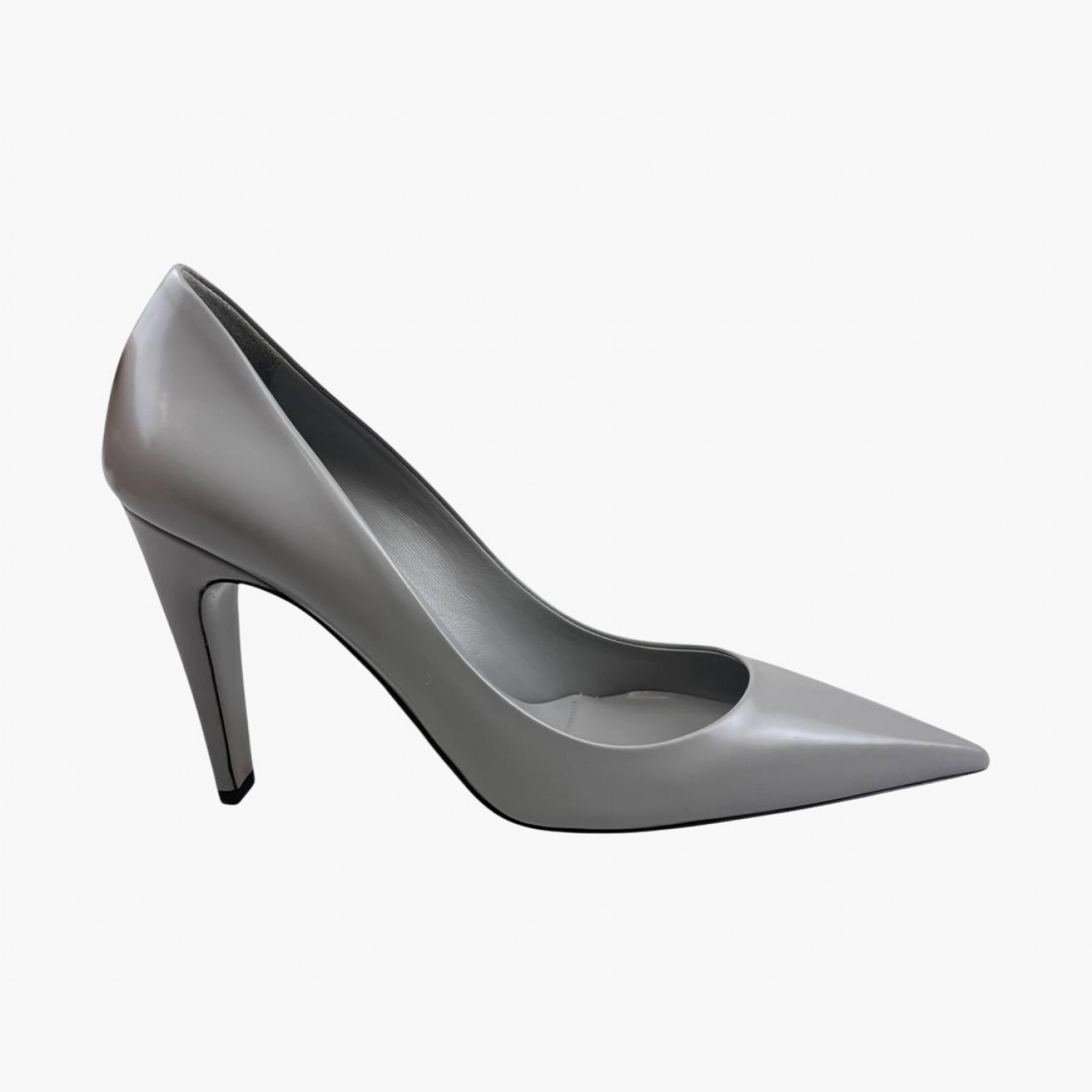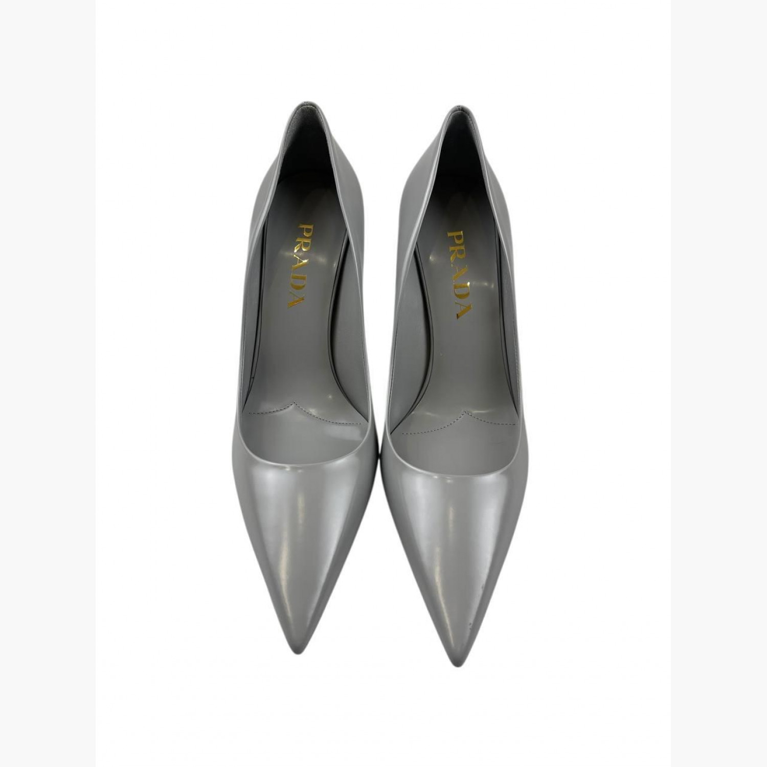 Сірі туфлі з загостреним носком, виготовлені з лакованої шкіри. У комплекті — пара додаткових колодок. У відмінному стані, є незначні сліди вжитку.