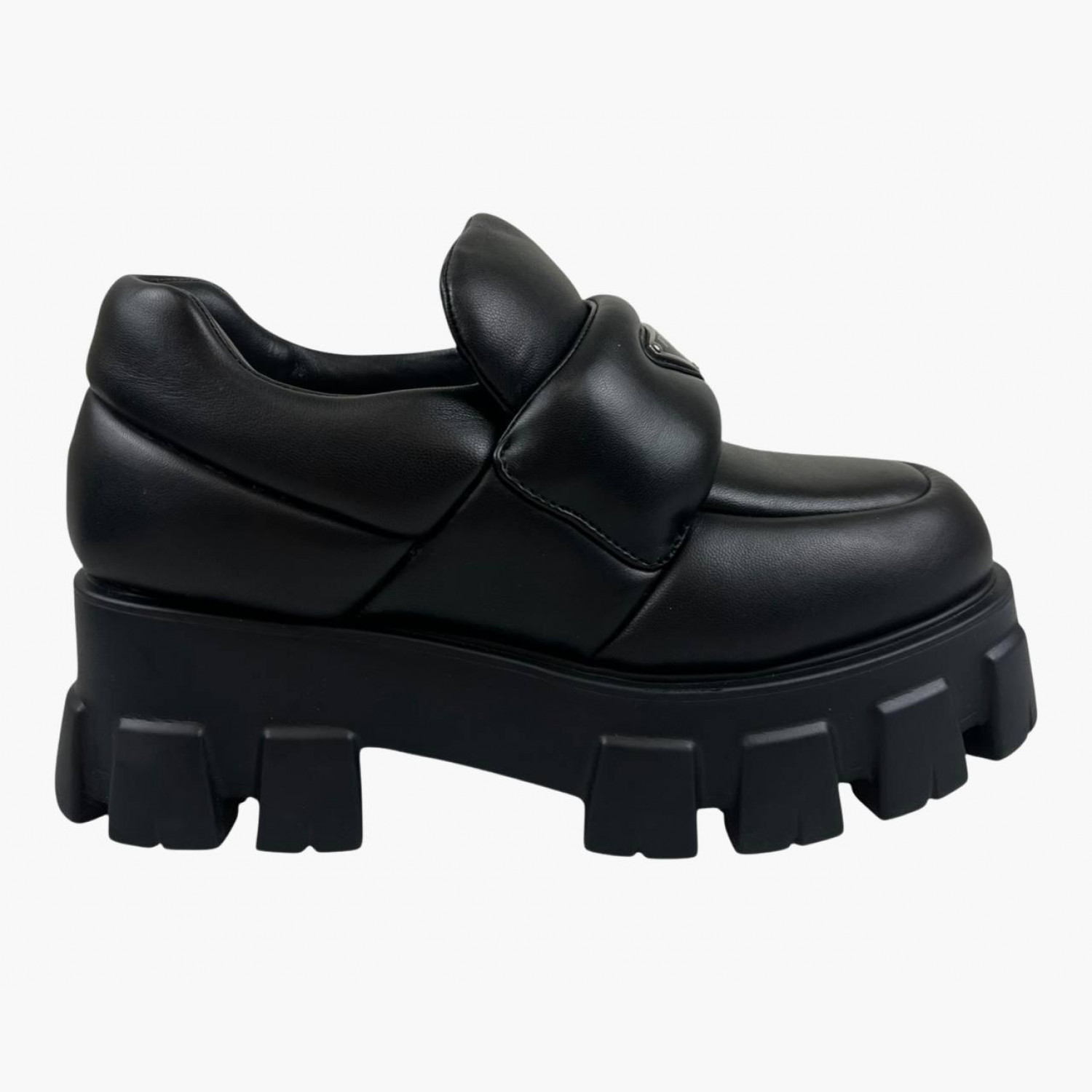 Чорні масивні шкіряні лофери на високій підошві. Відмінний стан, є сліди вжитку.