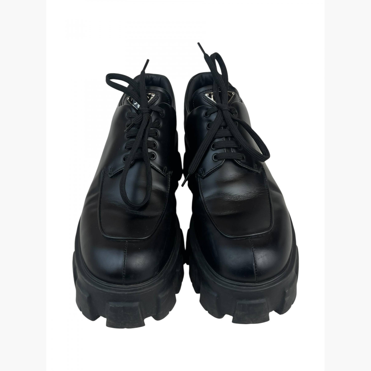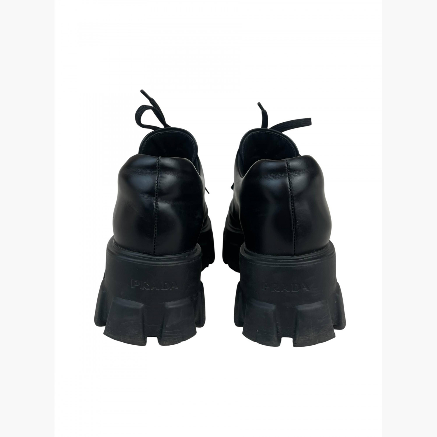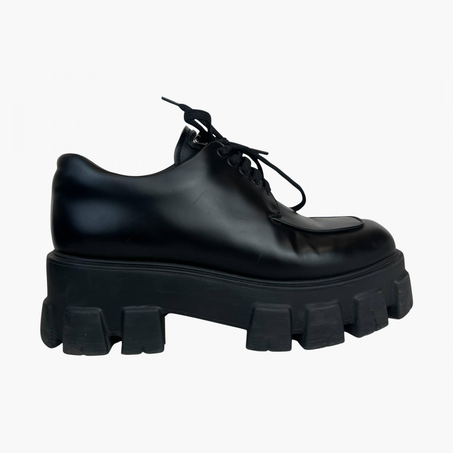 Чорні шкіряні лофери на високій масивній підошві.У гарному стані, є потертості.