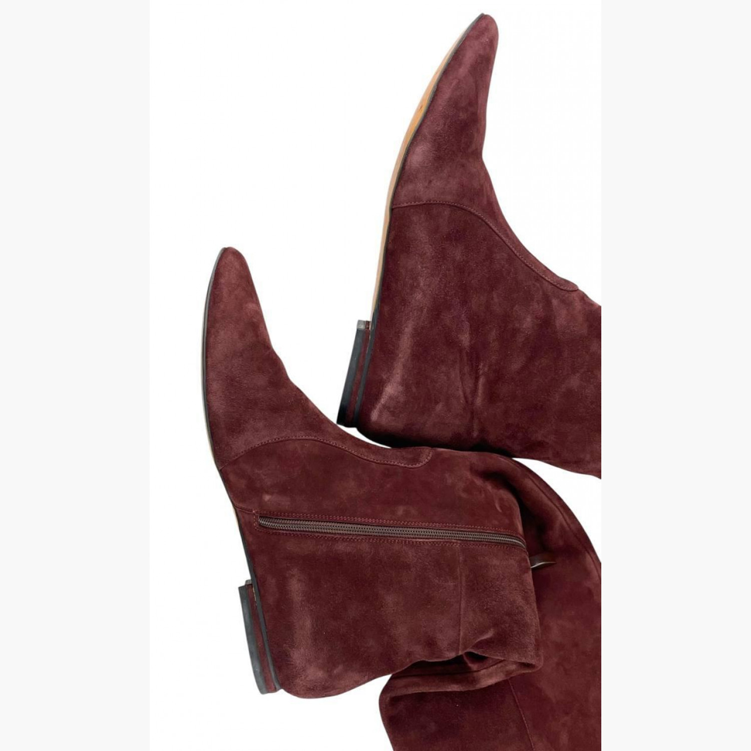 Бордові замшеві ботфорти. Стан гарний, є сліди вжитку.