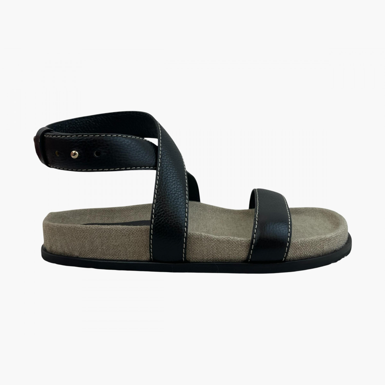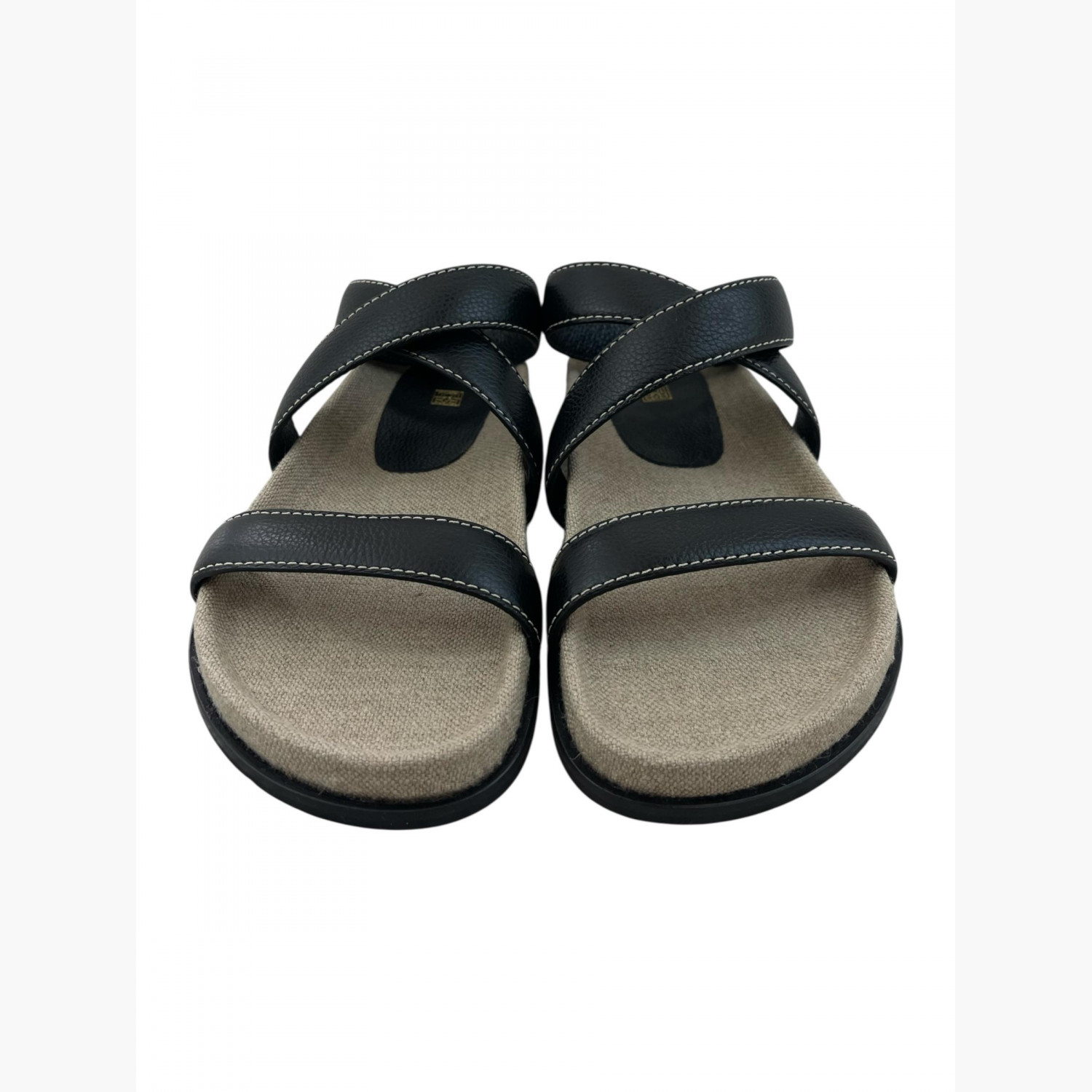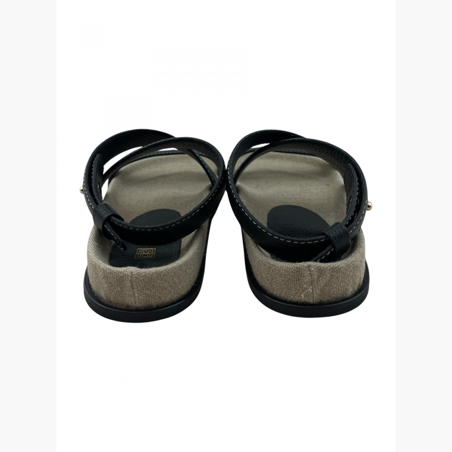 Чорні шкіряні босоніжки на світлій текстильній підошві.У відмінному стані, є незначні сліди носіння.