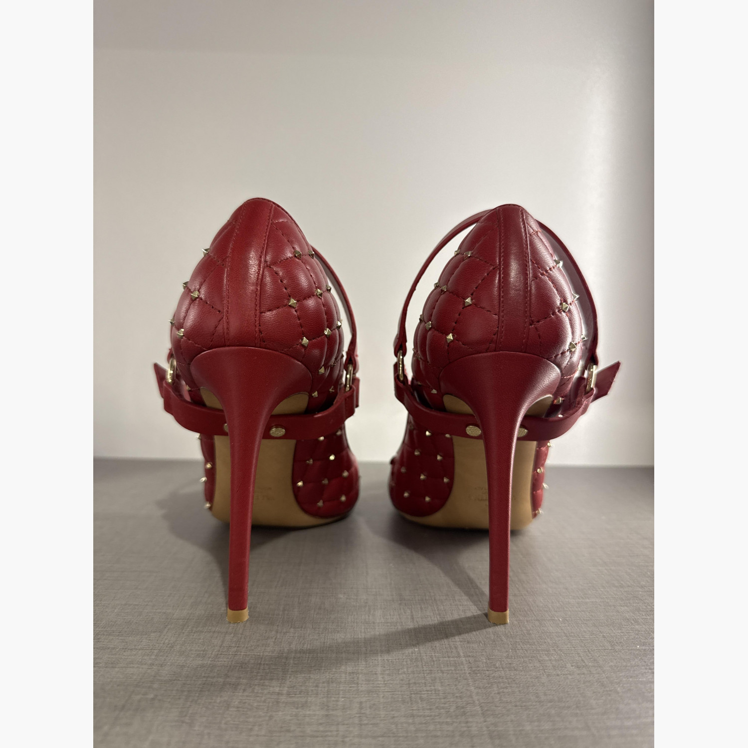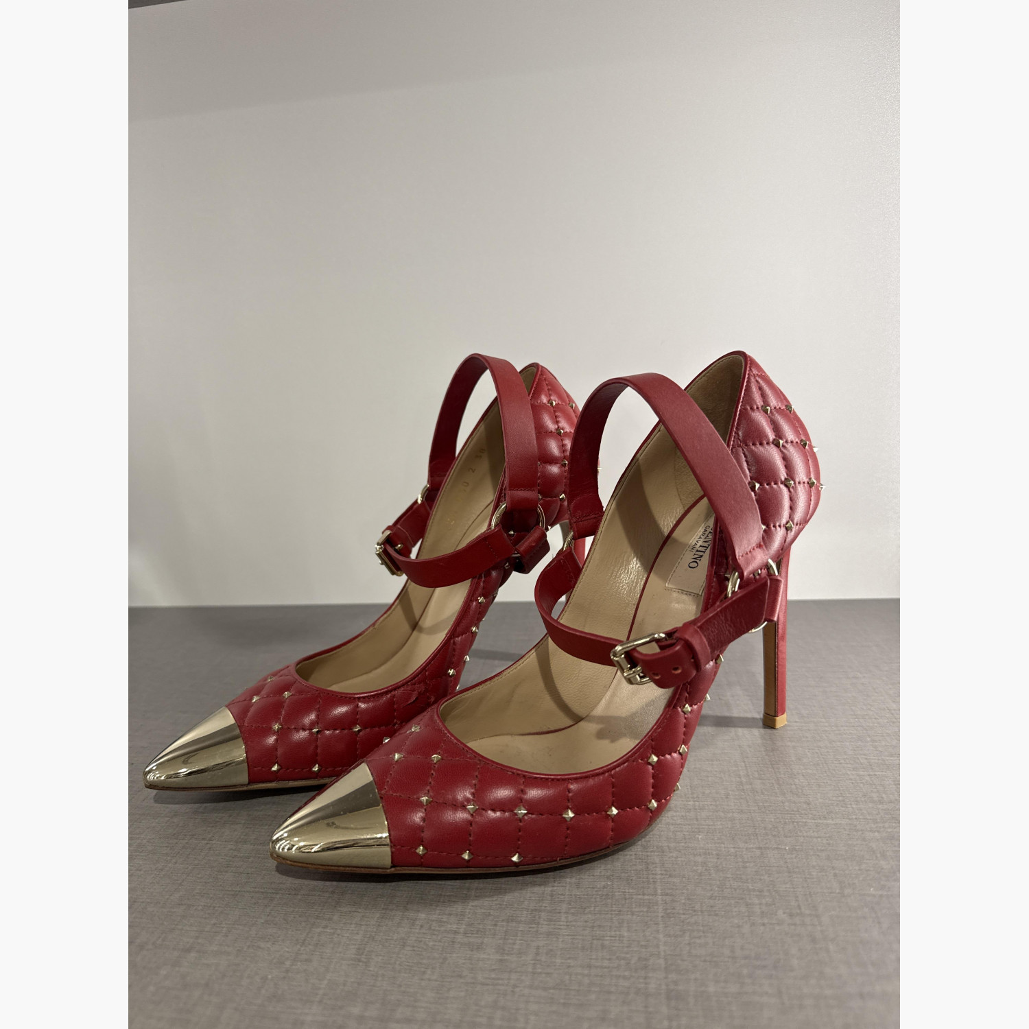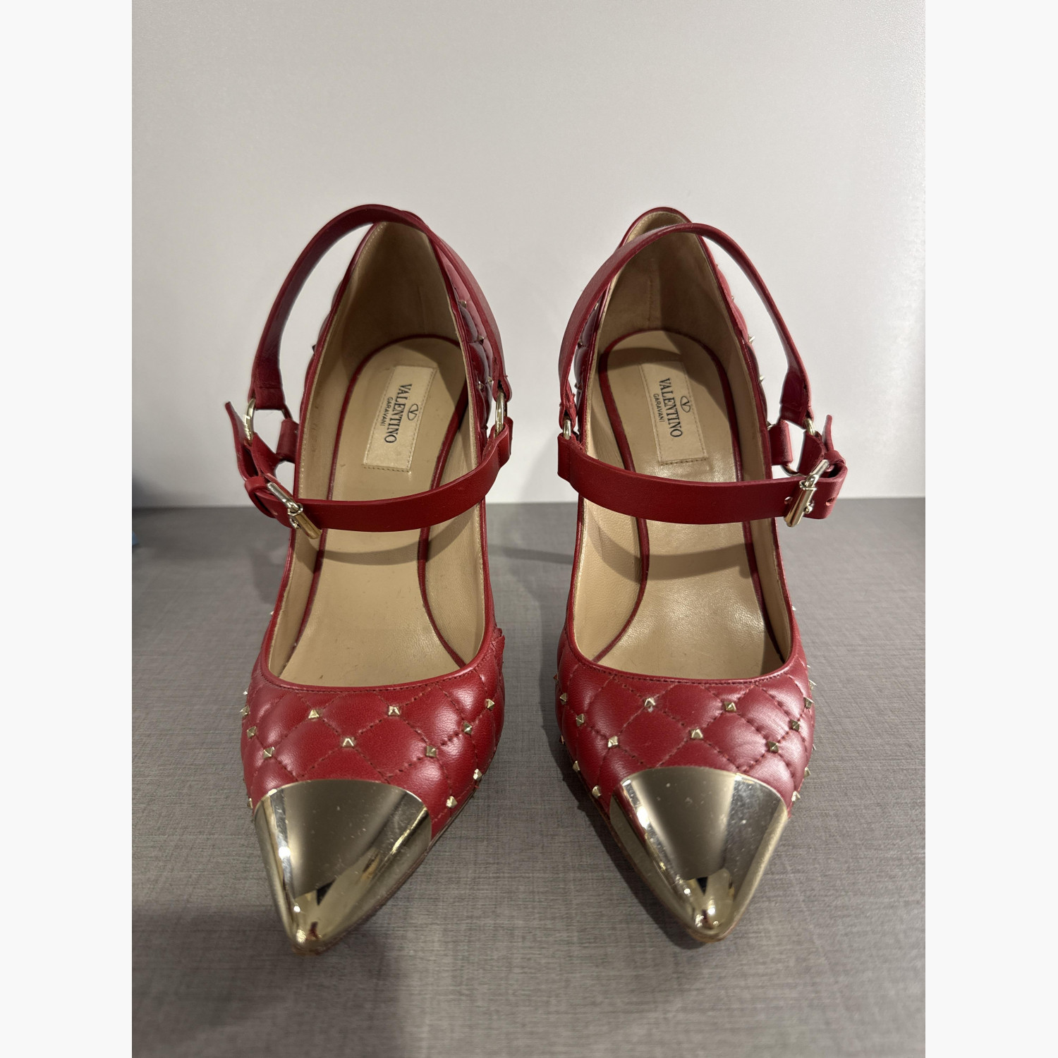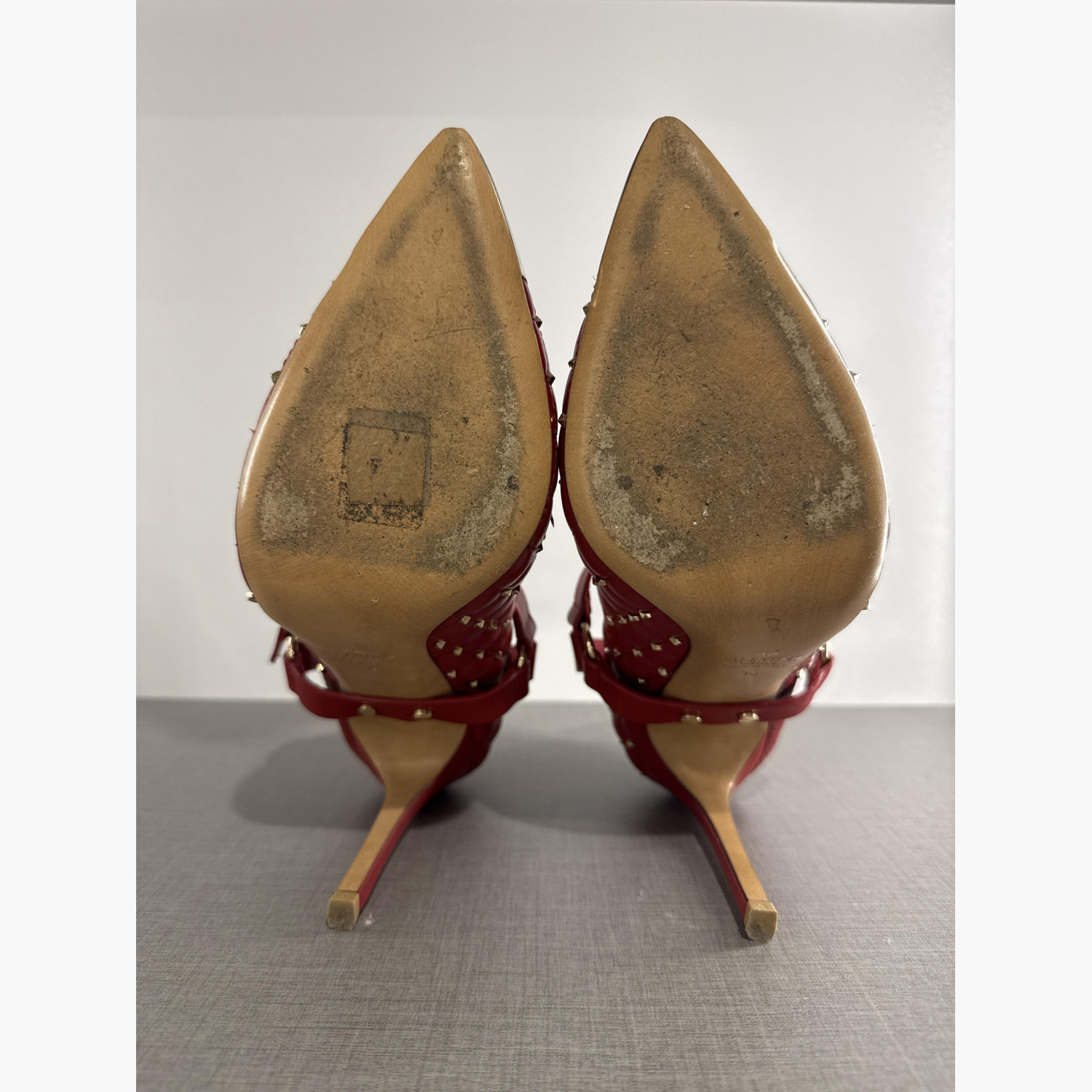 Червоні шкіряні туфлі у гарному стані, є невелика подряпина на внутрішній стороні.