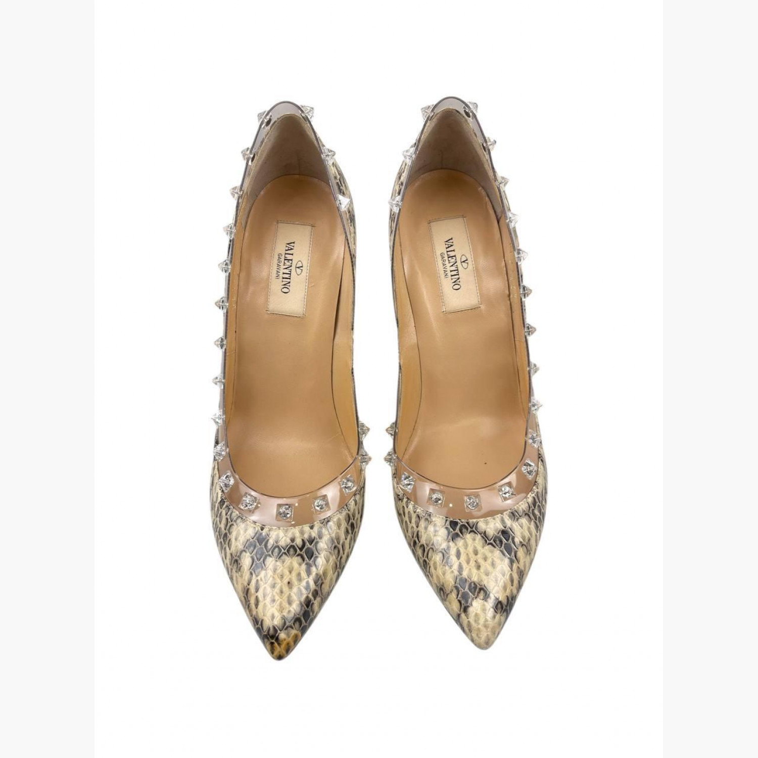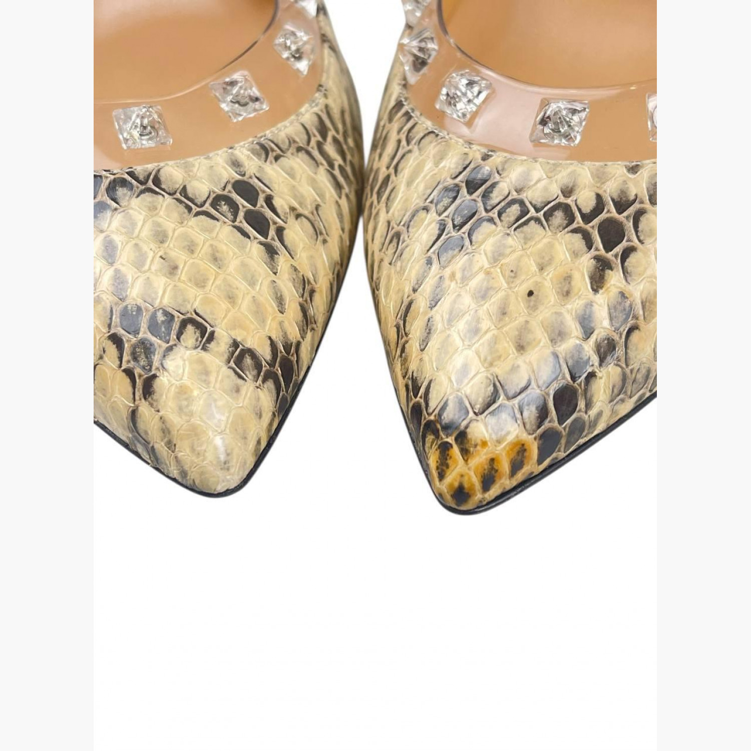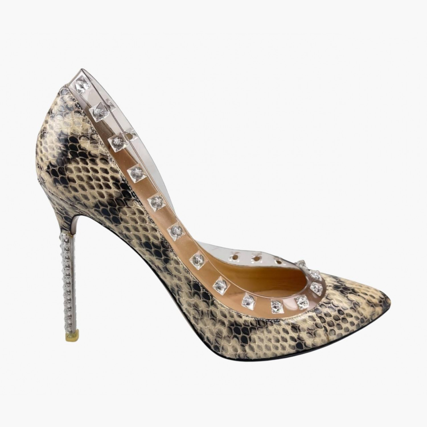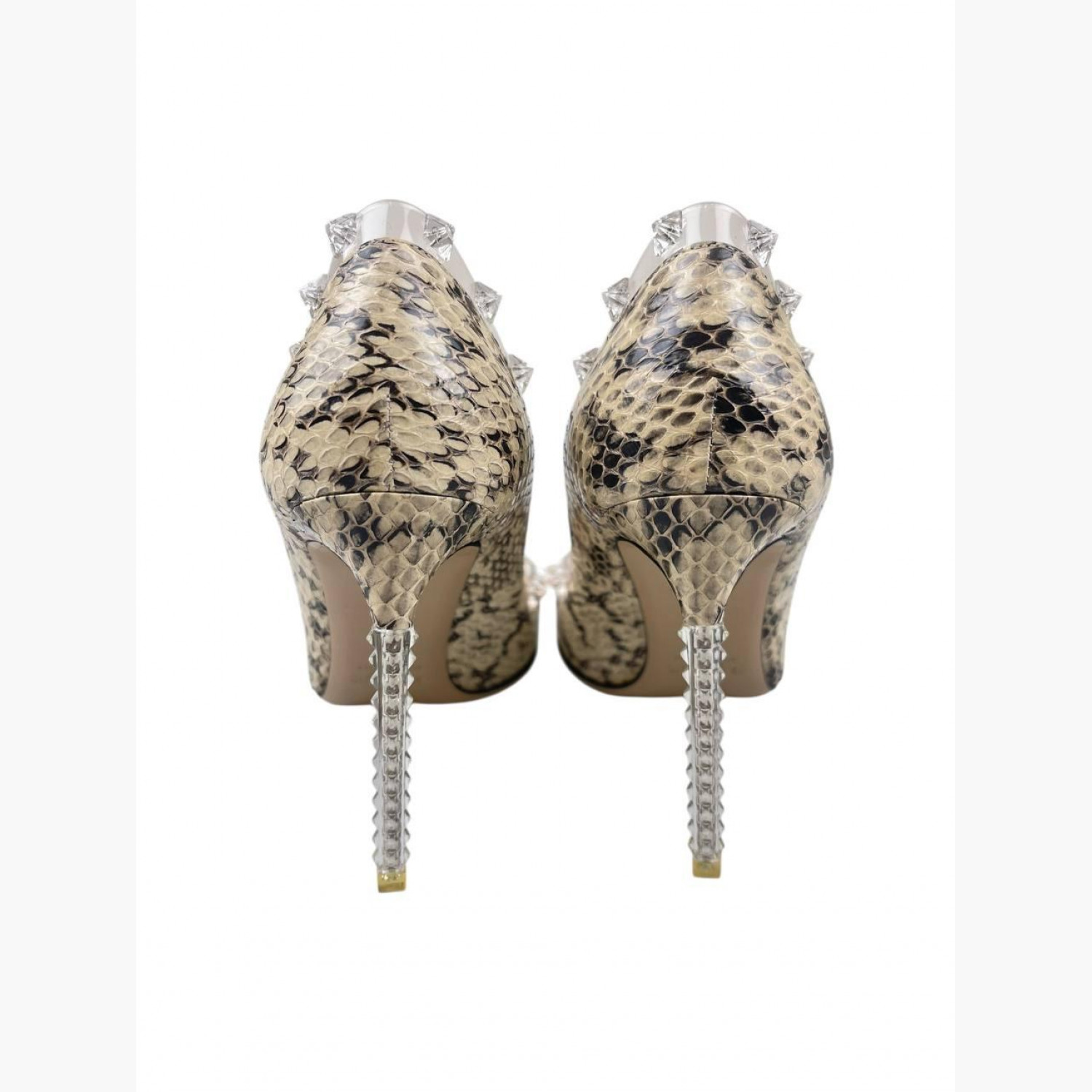 Бежеві туфлі зі шкіри пітона з прозорою силіконовою окантовкою та декором у вигляді шипів. Абсолютно нові, без слідів вжитку.
