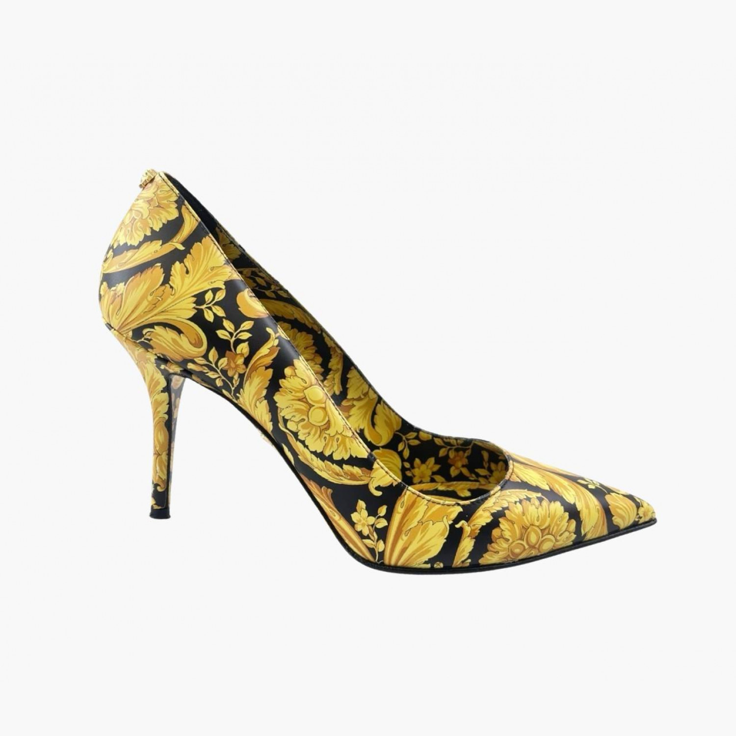 Шкіряні чорні туфлі з принтом Baroque. У хорошому стані, є потертості.