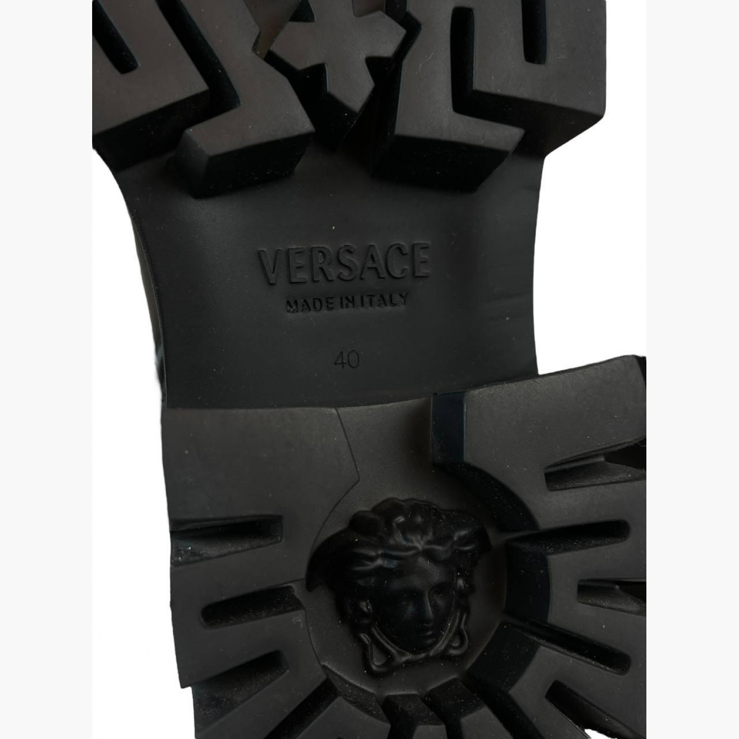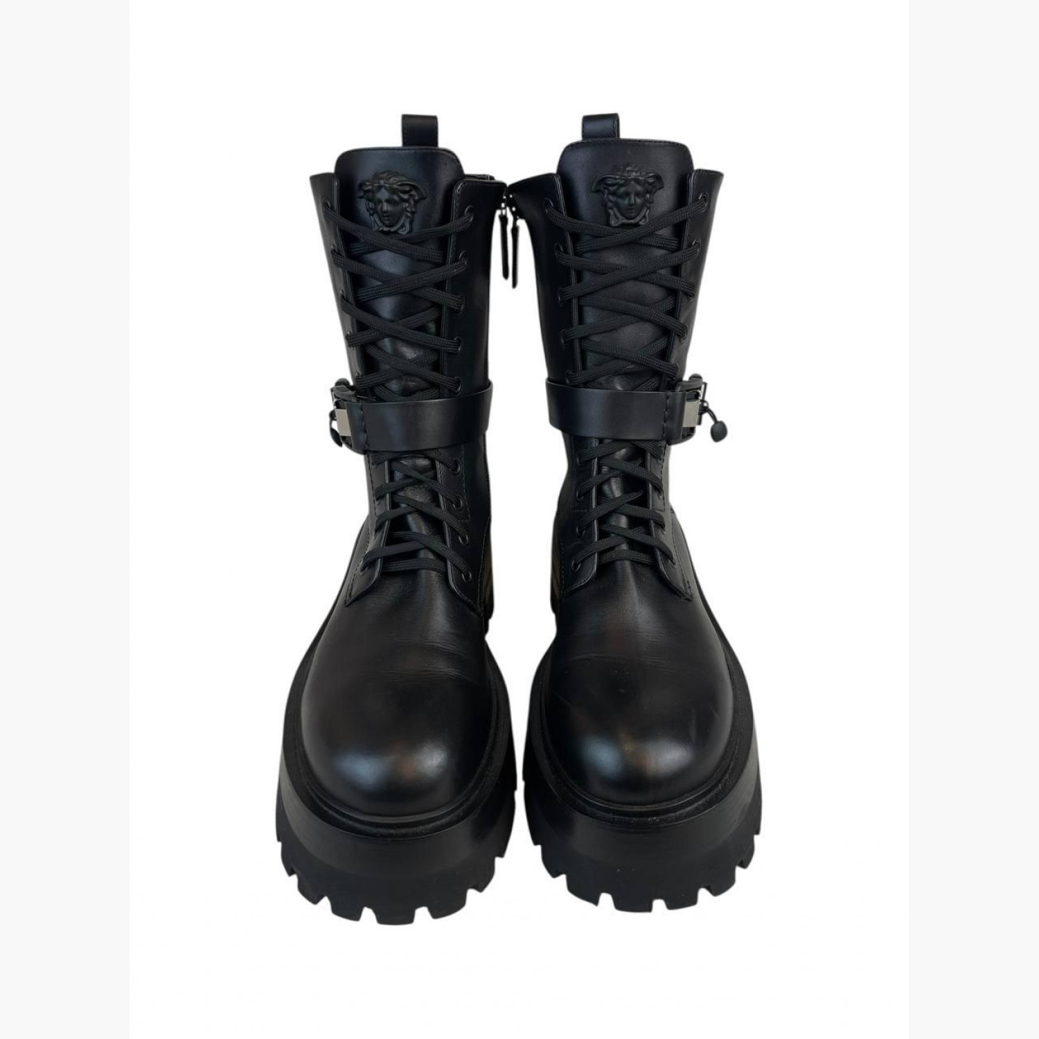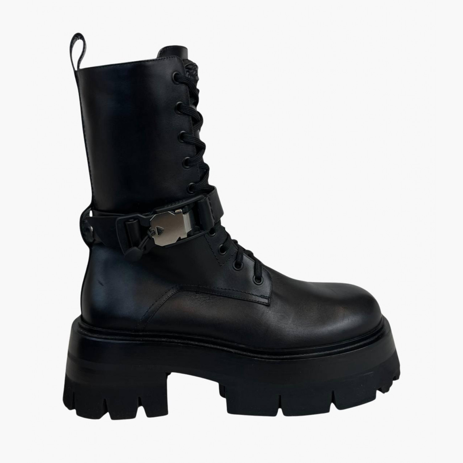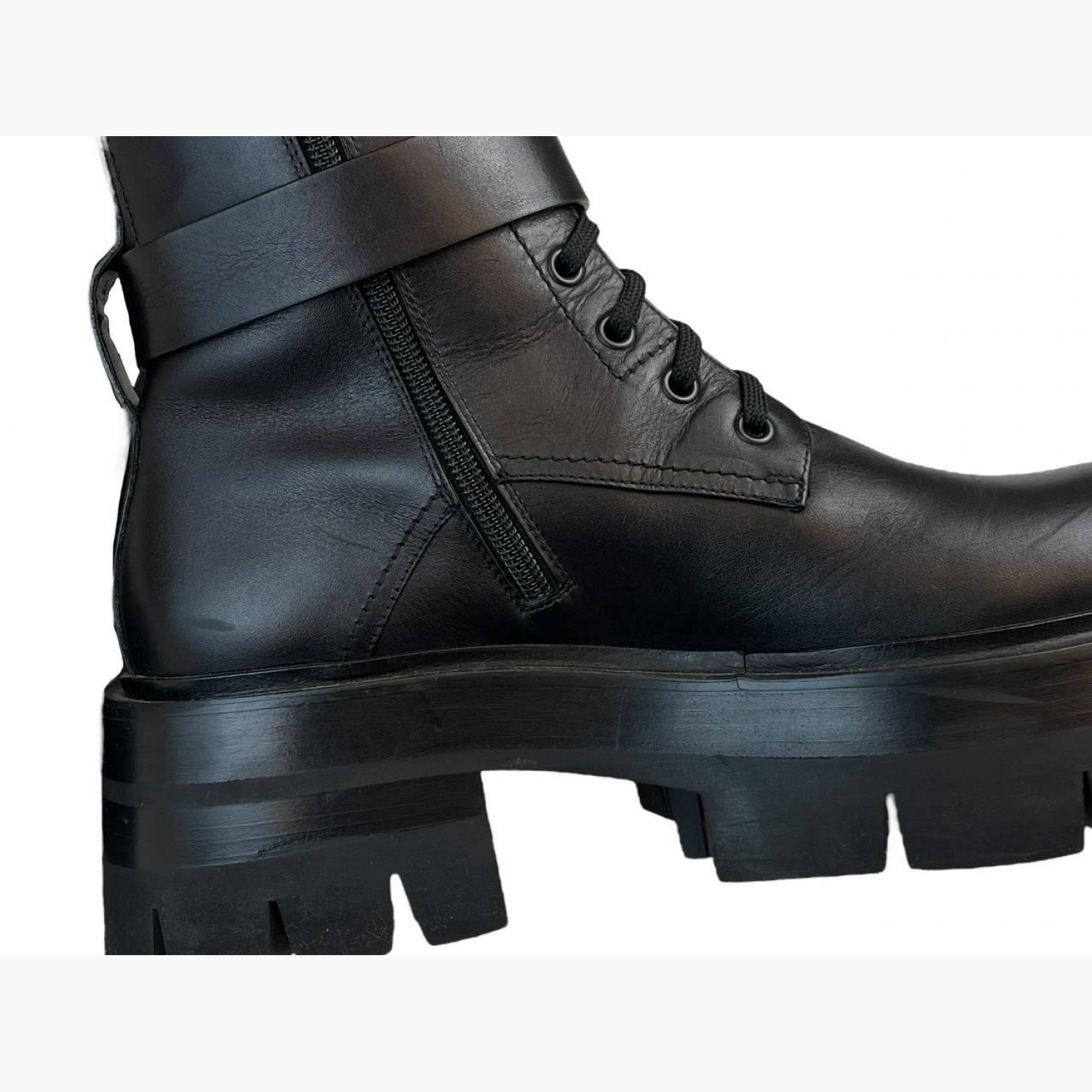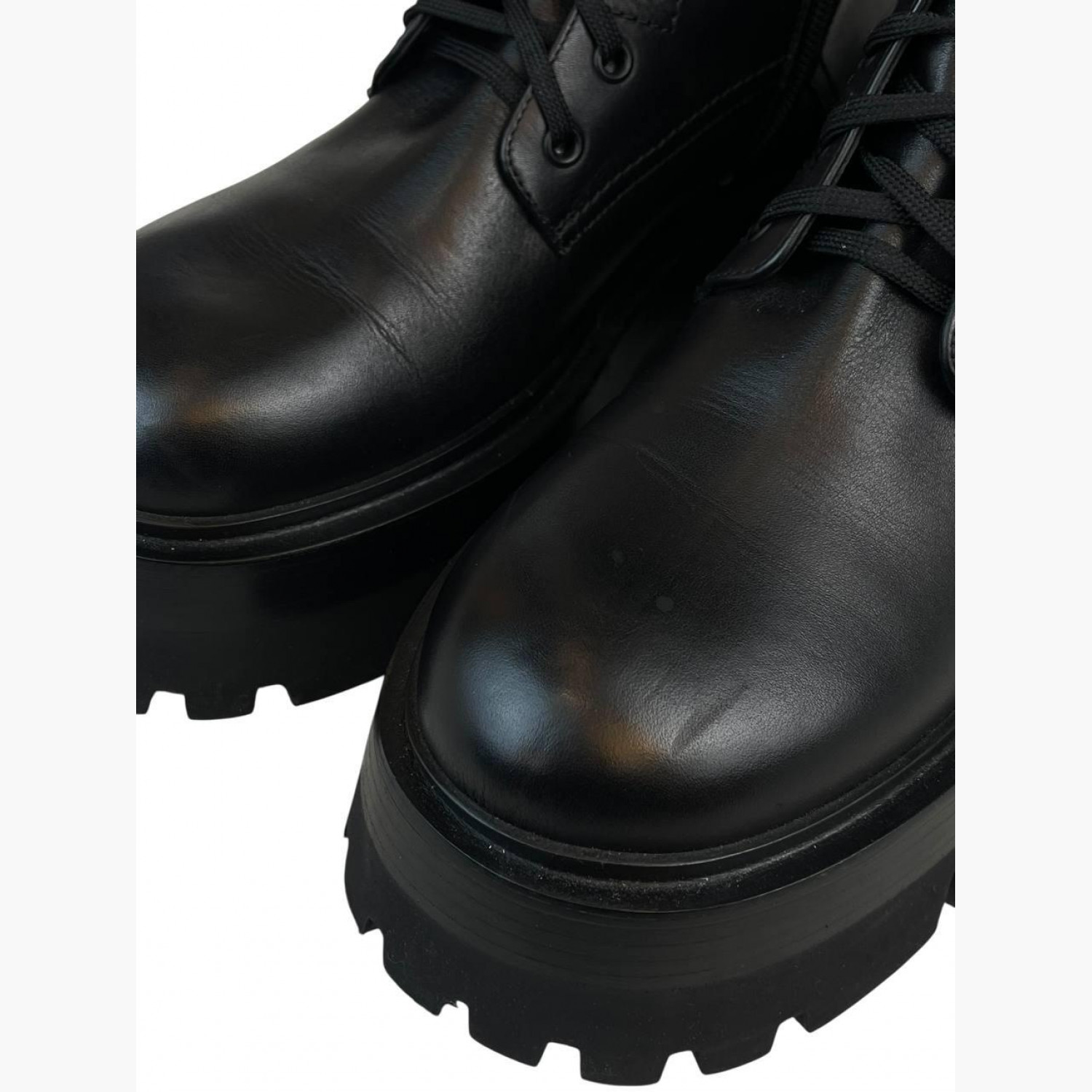 Чорні шкіряні черевики на шнурівці з пряжками, на язичку зображено логотип. У відмінному стані, є сліди вжитку.