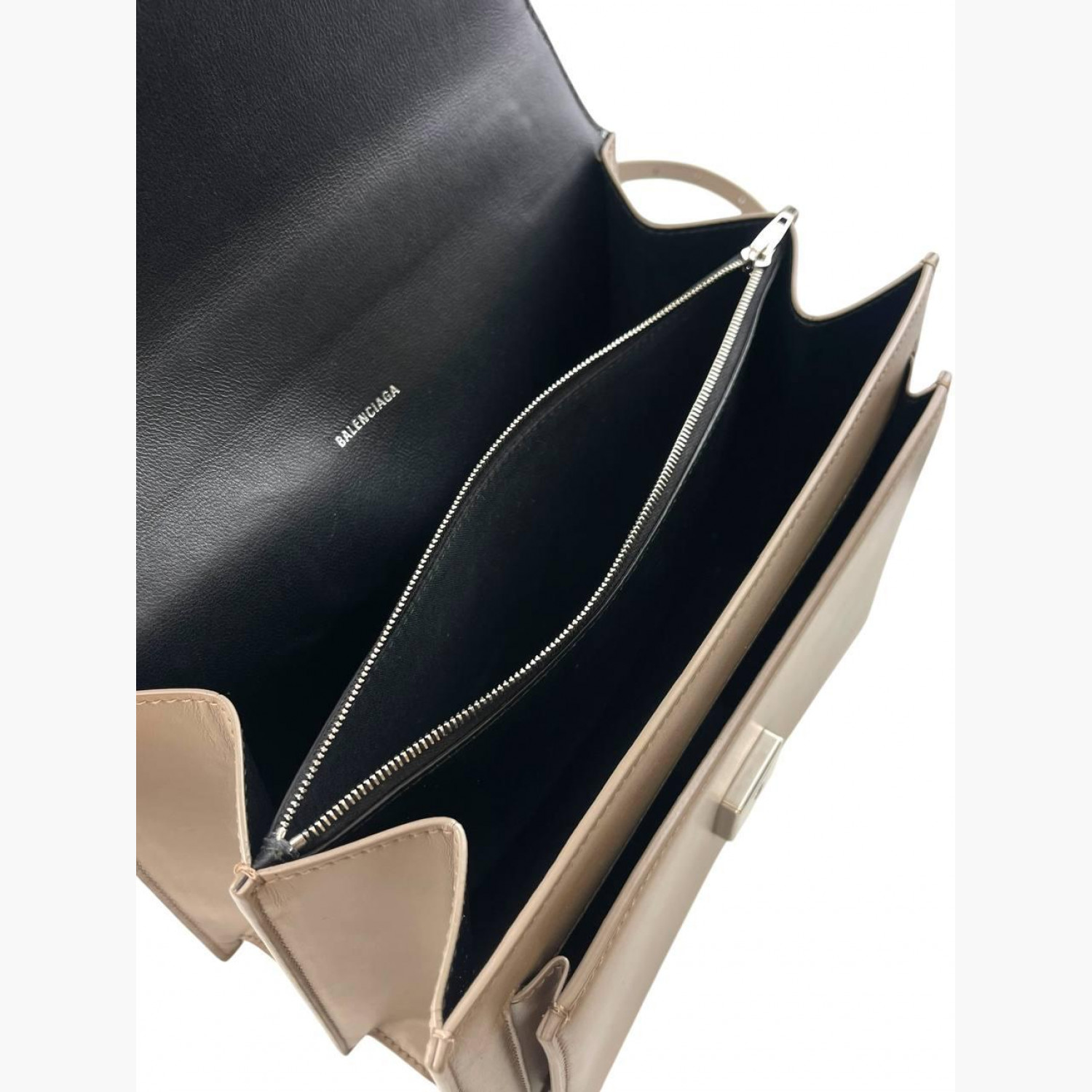 Бежева шкіряна сумка. Усередині два основні відділення, між ними закрита кишеня на блискавці, а також дві відкриті кишені ззаду та спереду сумки. Довжина ремінця регулюється. У хорошому стані, є потертості та зламаний замок.