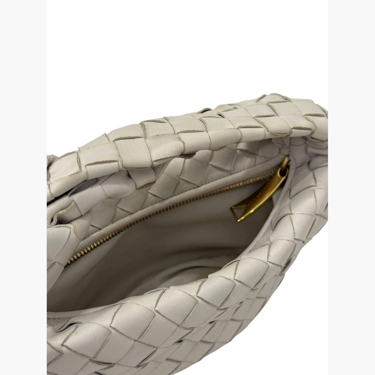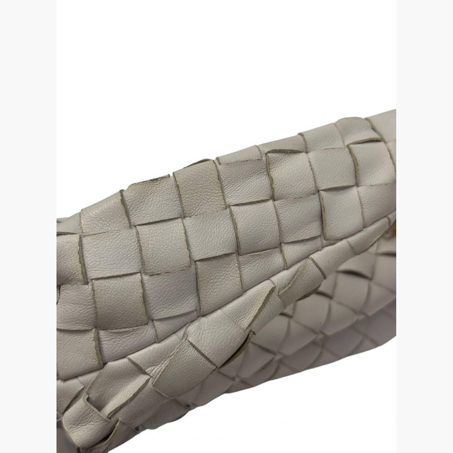 Біла шкіряна плетена сумка. Усередині одне основне відділення. У гарному стані, є потертості.