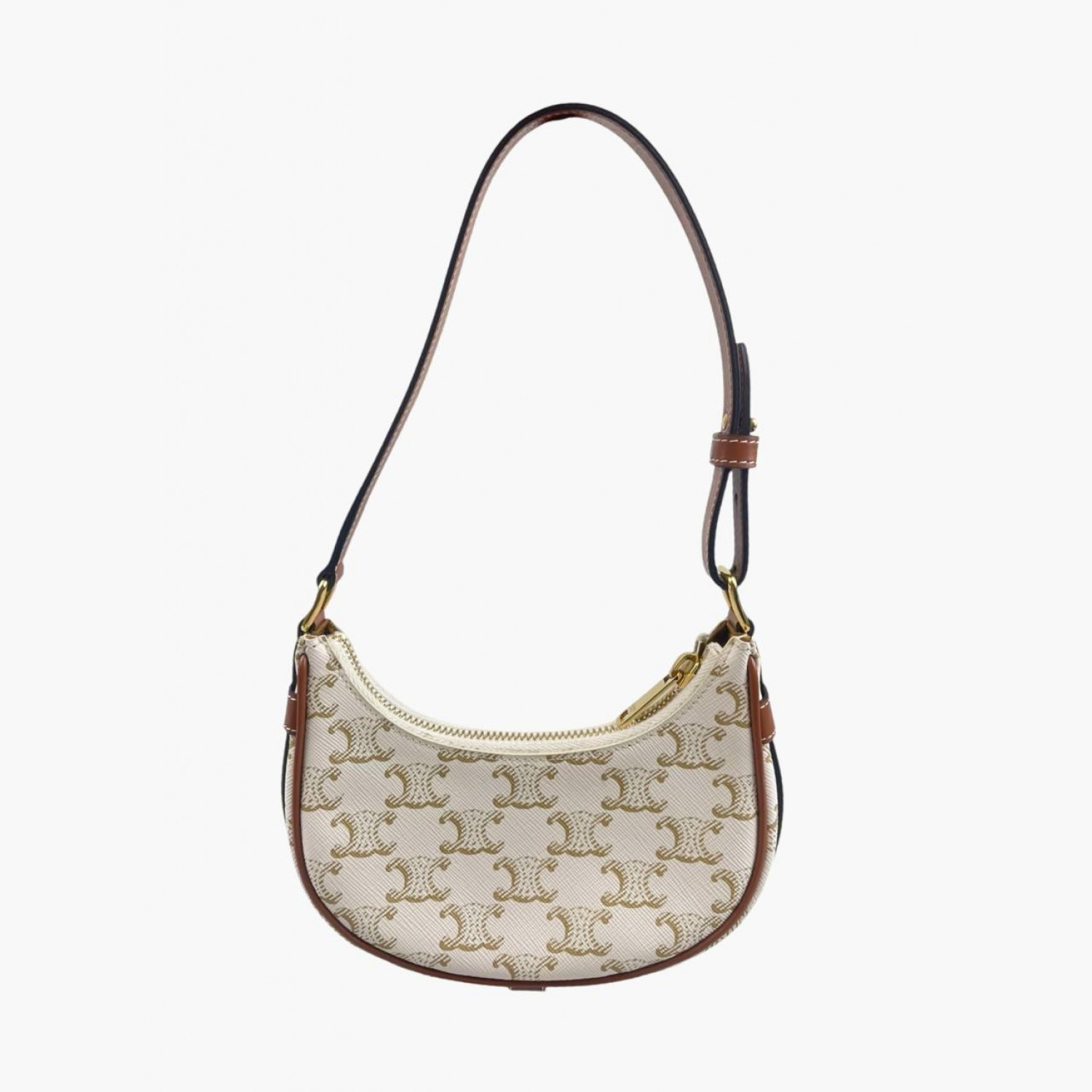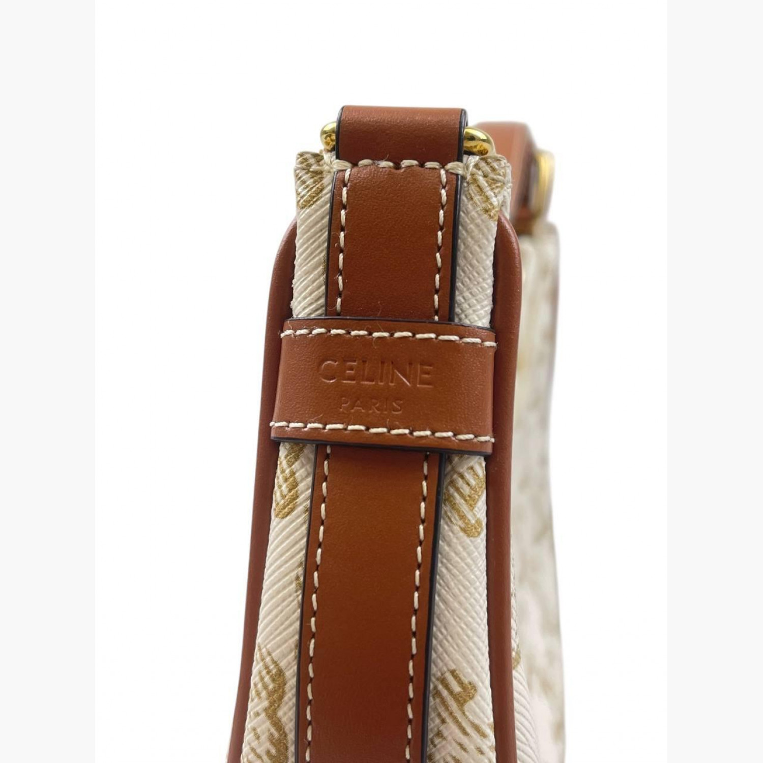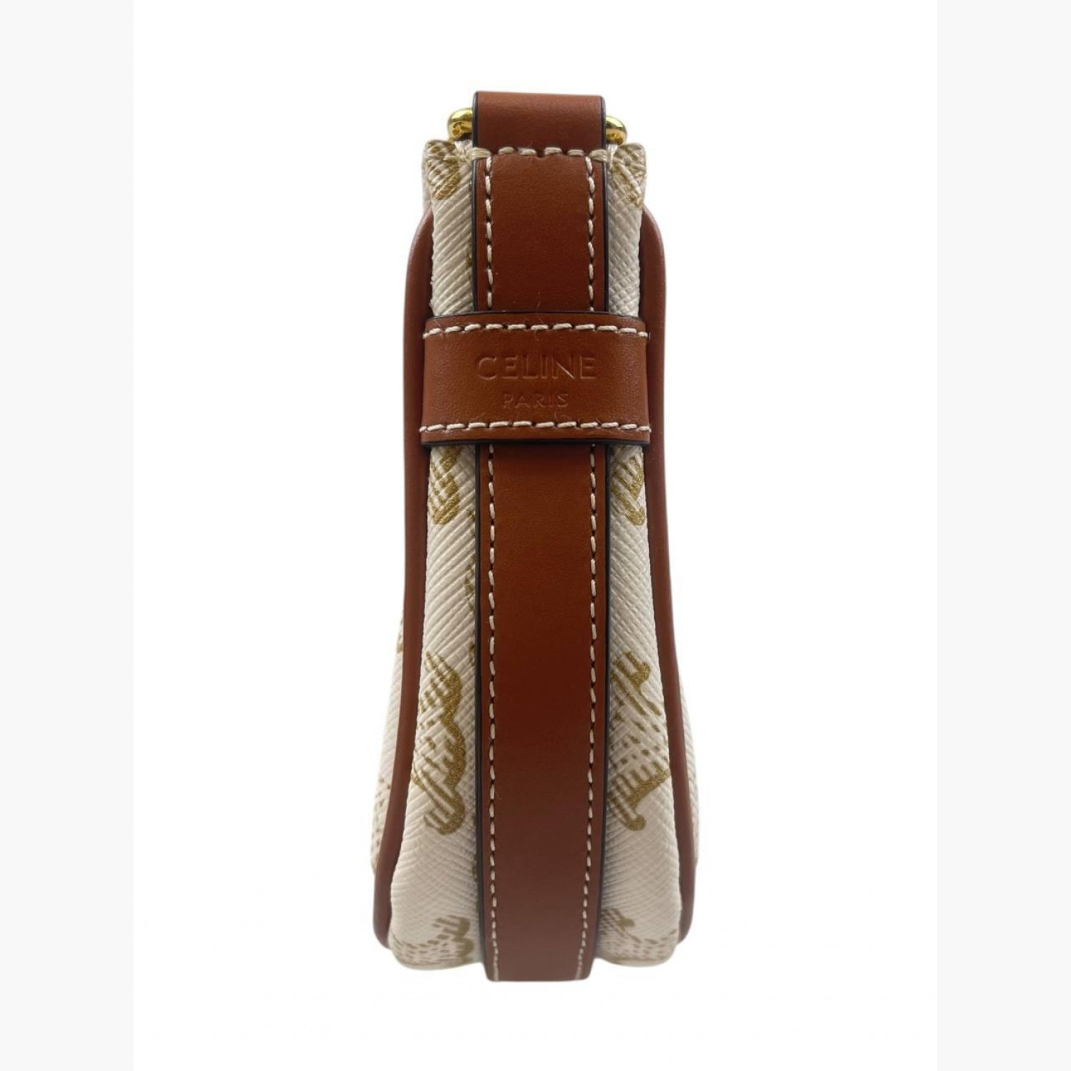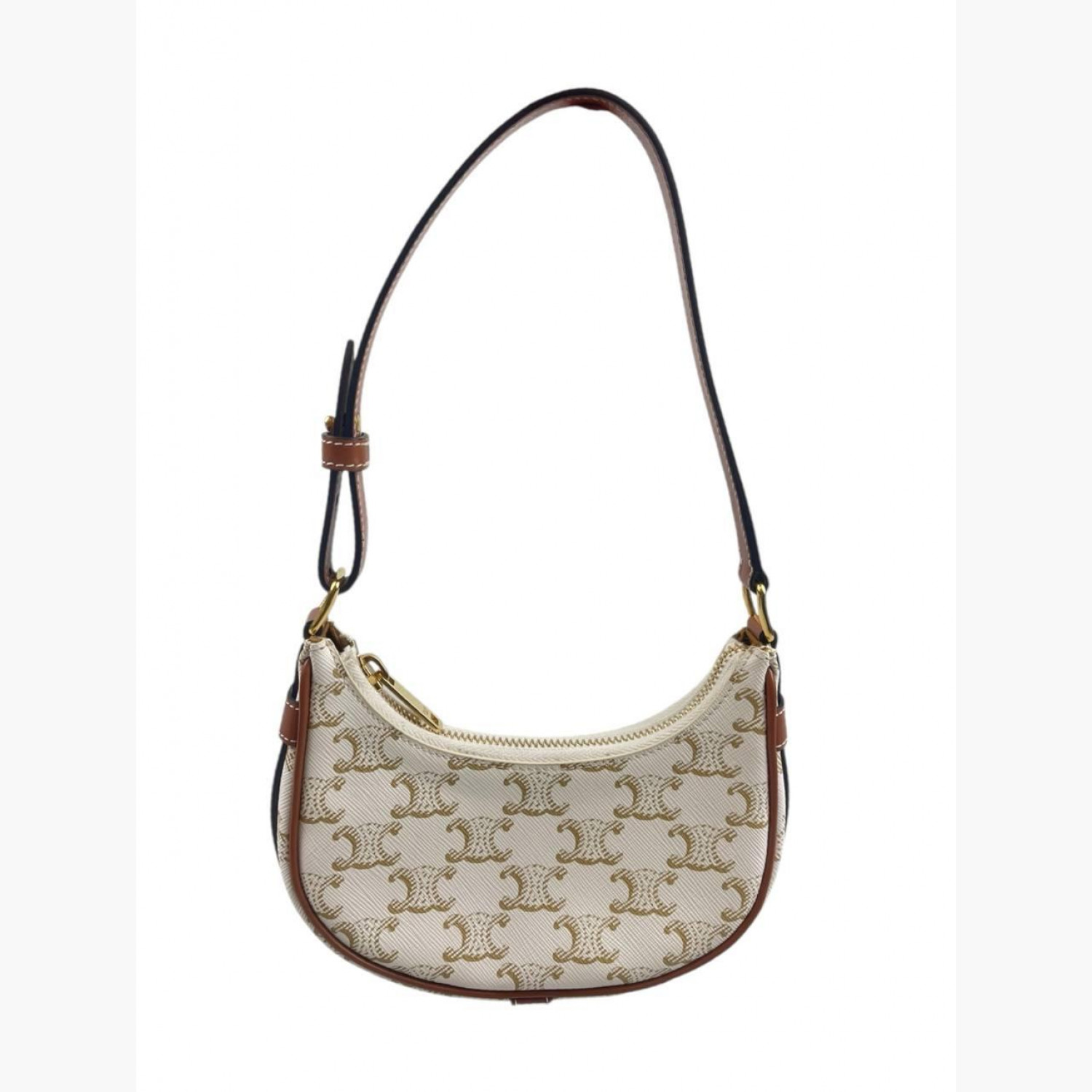 Мінісумка молочного кольору з логотипом, виготовлена з канви з шкіряною регульованою ручкою. Усередині одне основне відділення без кишень. У відмінному стані, є ледь помітні сліди вжитку.