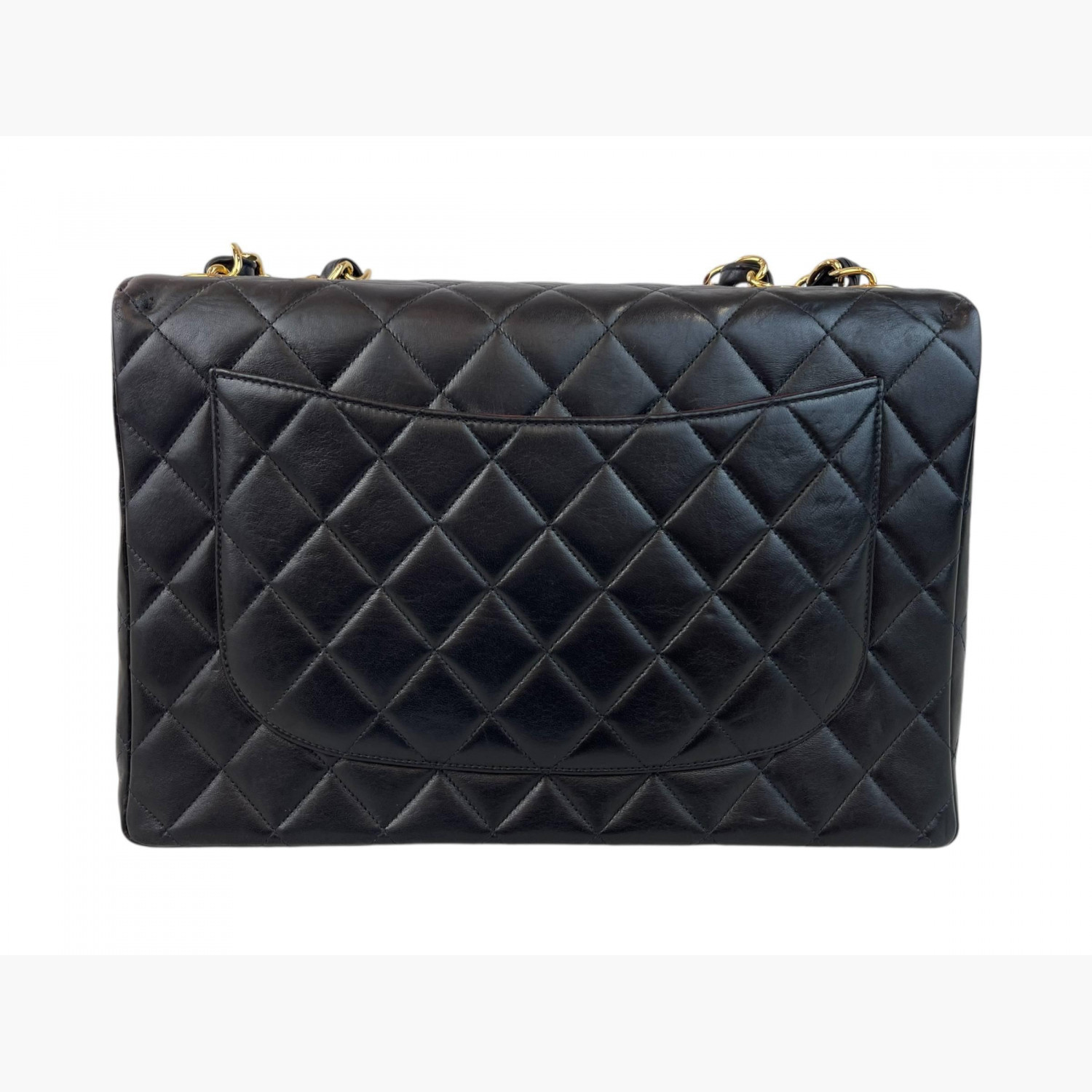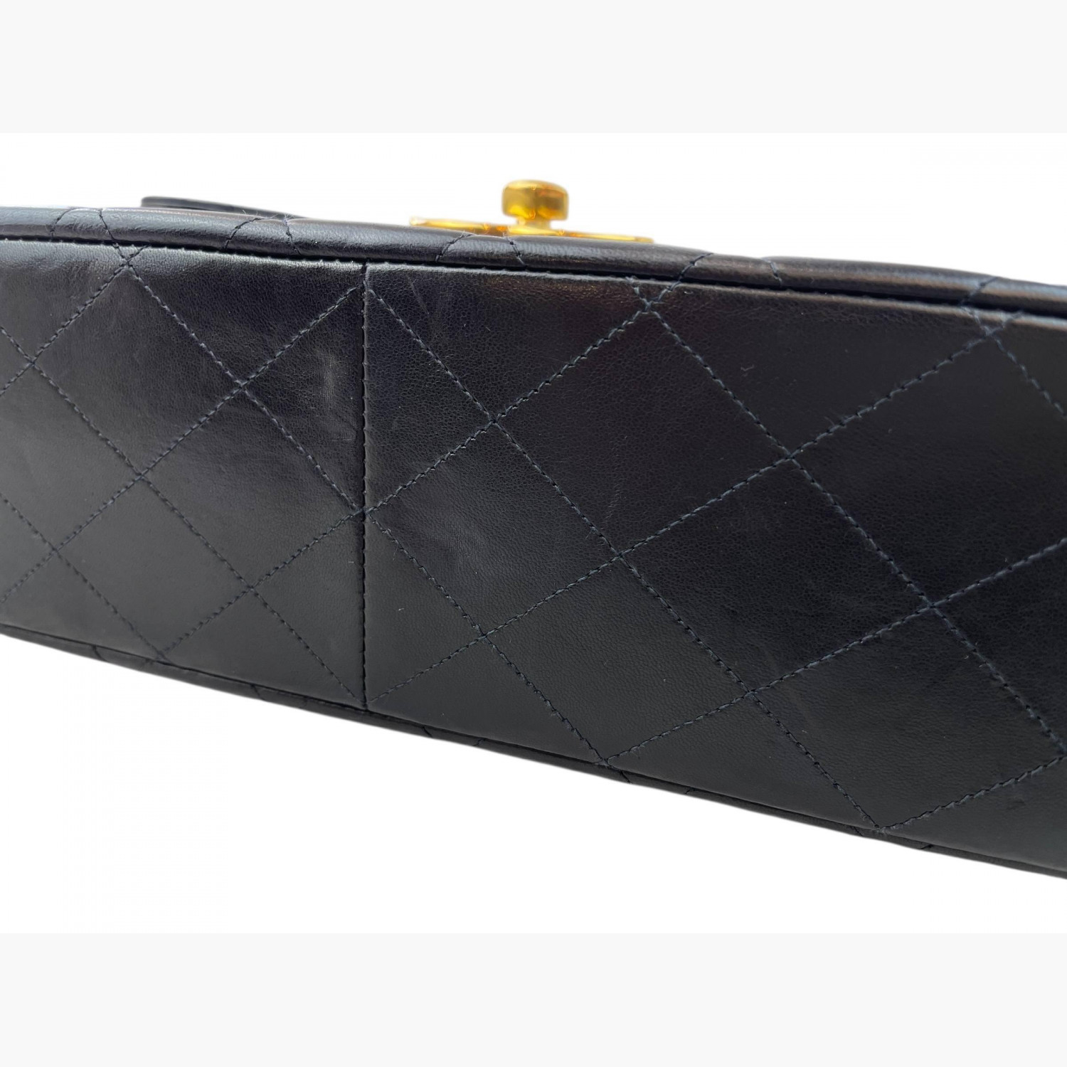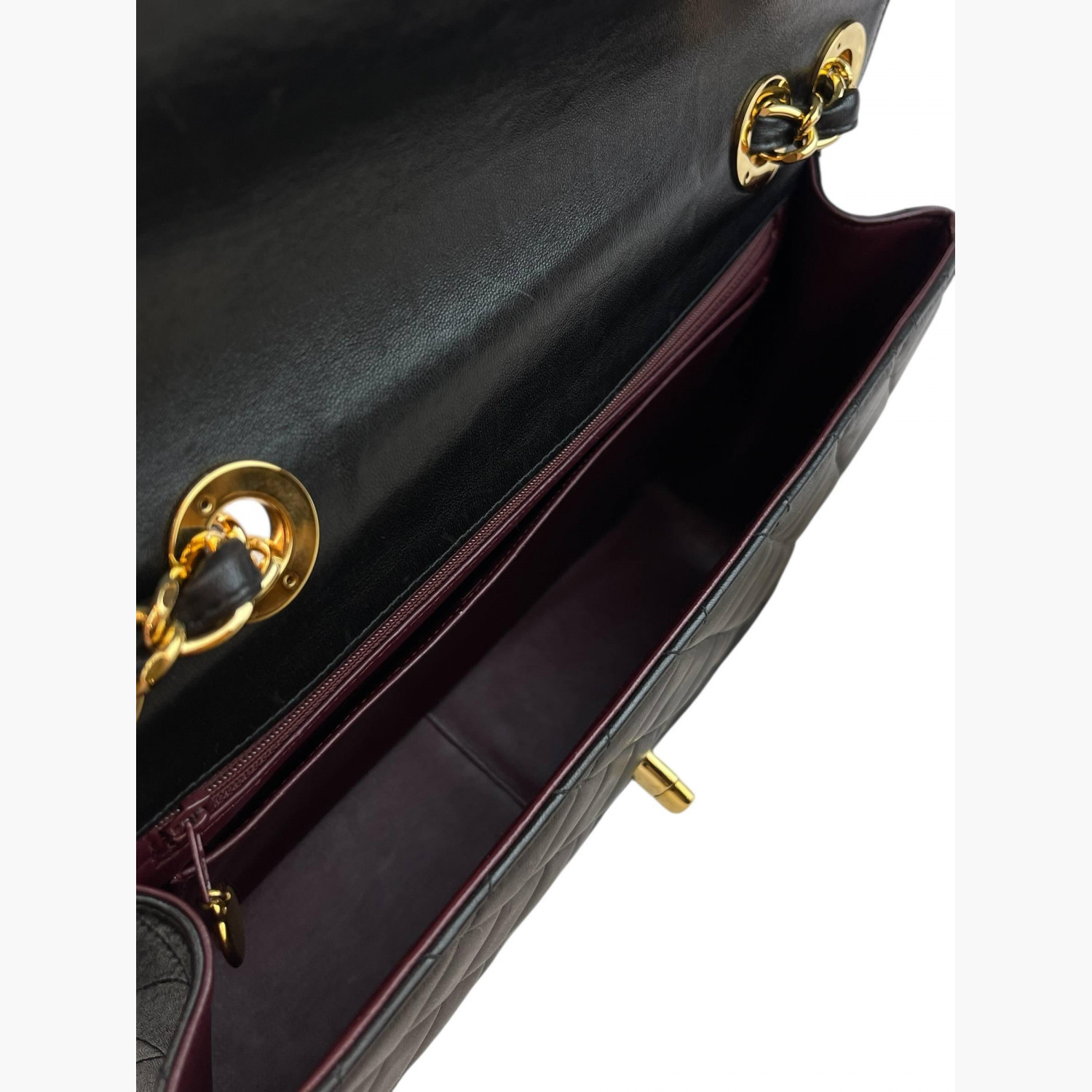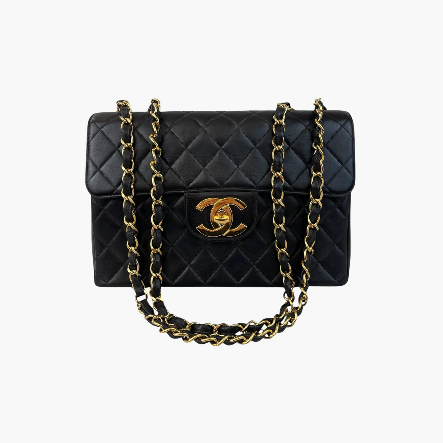 Чорна стьобана шкіряна сумка на ланцюжку. Всередині — одне основне відділення, подвійна кишеня та кишеня на блискавці. Ззаду розташована відкрита кишеня. У відмінному стані, присутні незначні сліди вжитку.