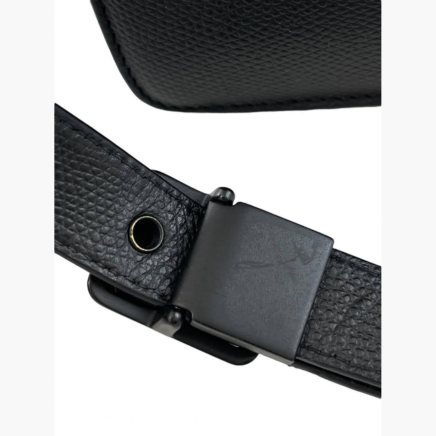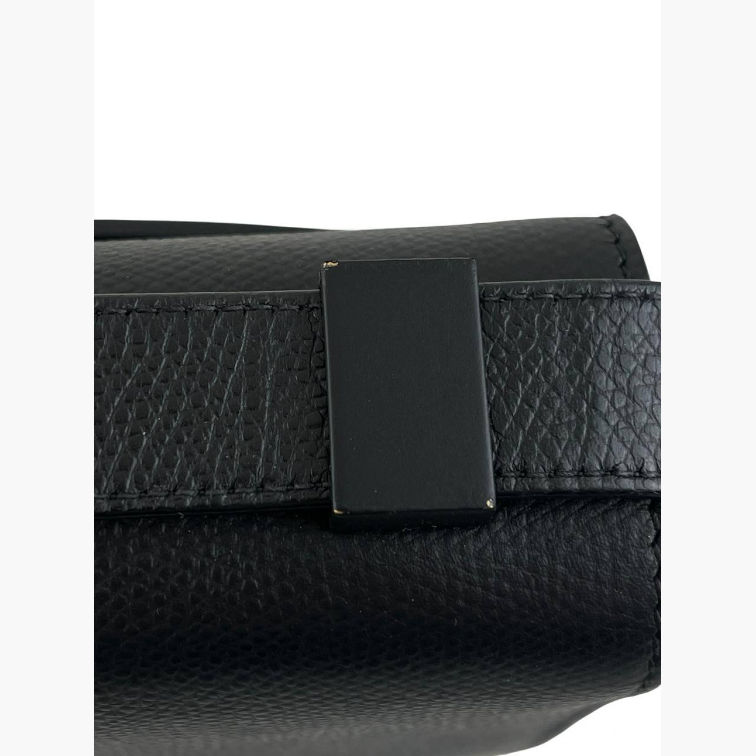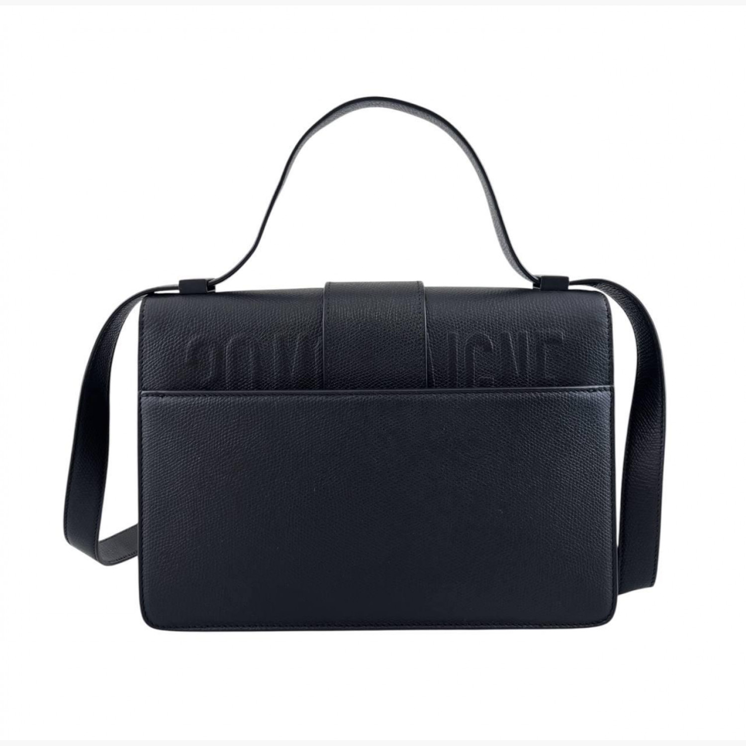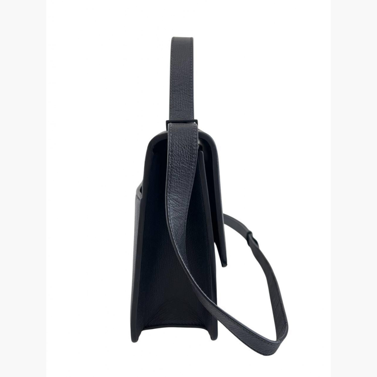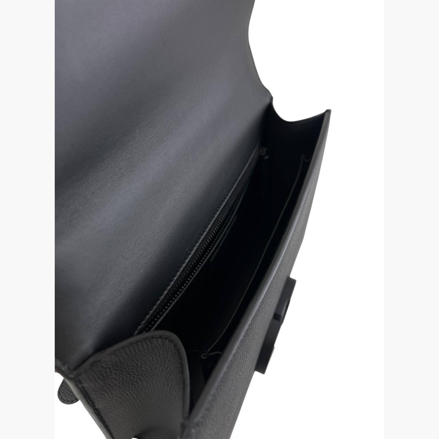Чорна шкіряна сумка. Всередині одне основне відділення з кишенею на блискавці та відкритою кишенею, а також кишеня на задній стороні сумки. В відмінному стані, є незначні потертості.