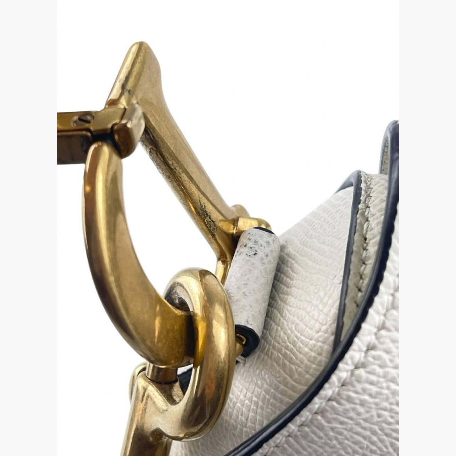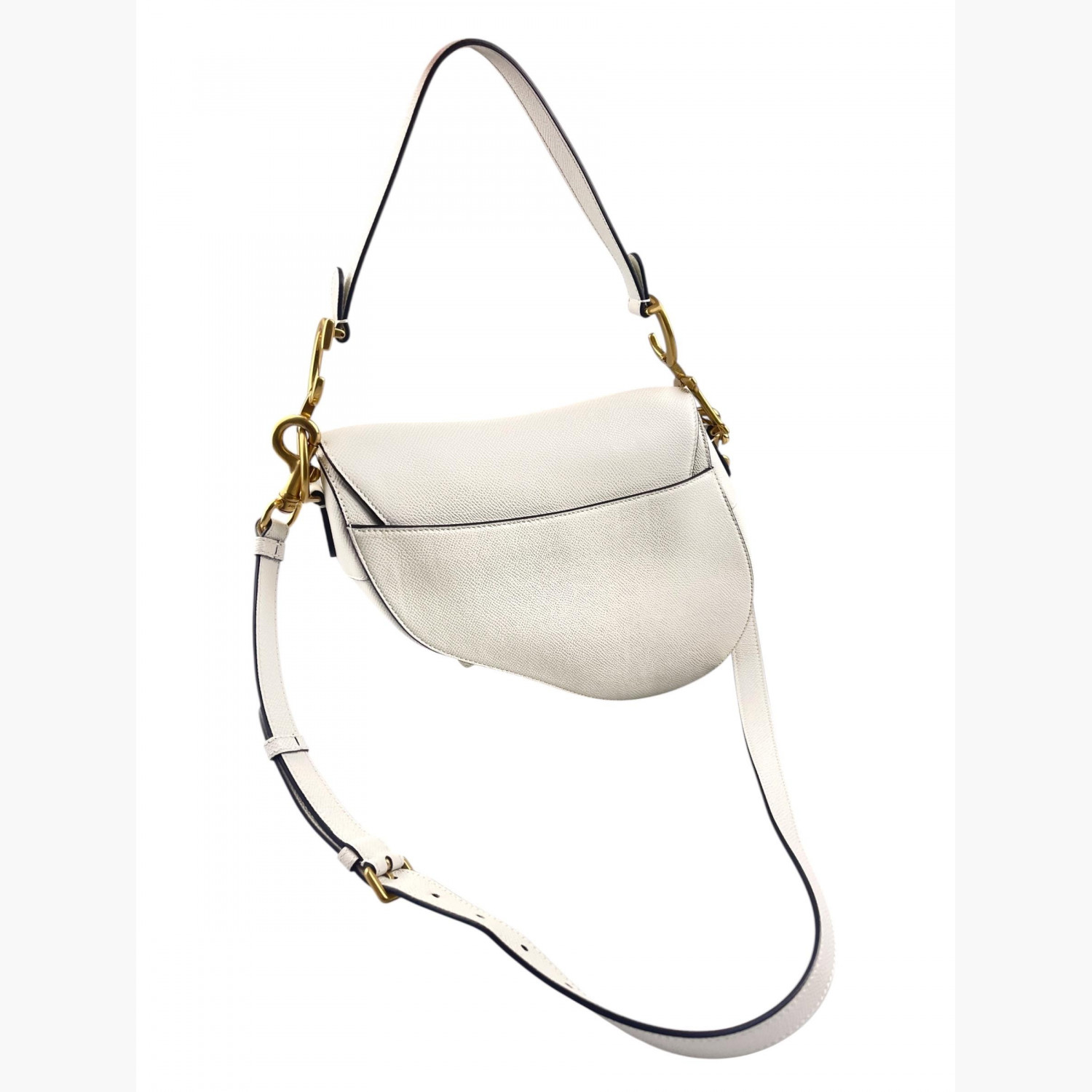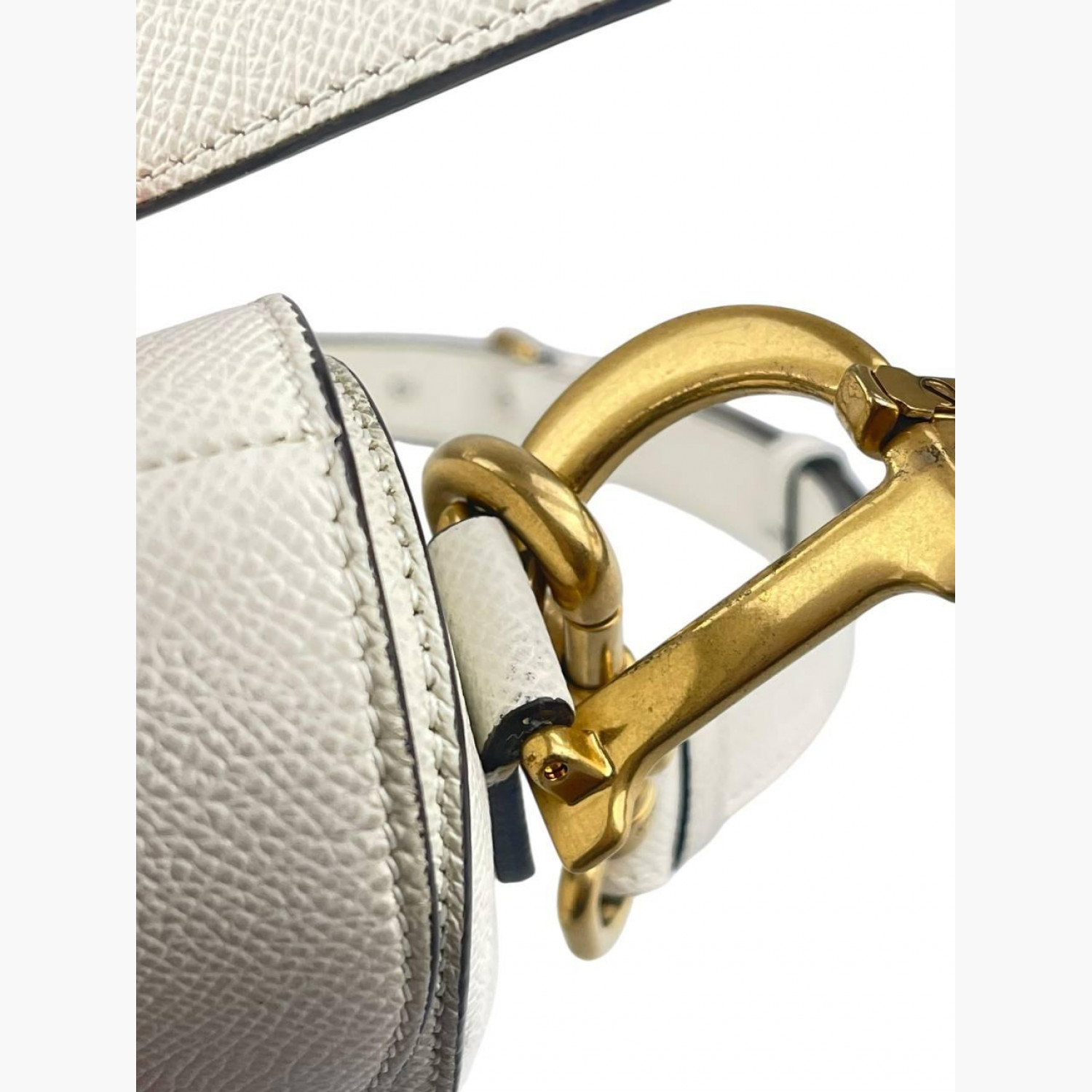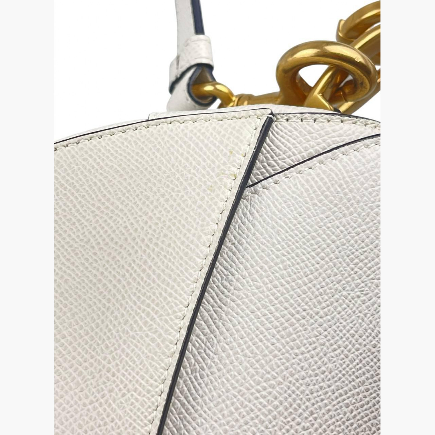 Біла шкіряна сумка з регульованим ремінцем. Усередині одне основне відділення з кишенею на блискавці, а також відкрита кишеня на зворотному боці сумки. В відмінному стані, є сліди вжитку.