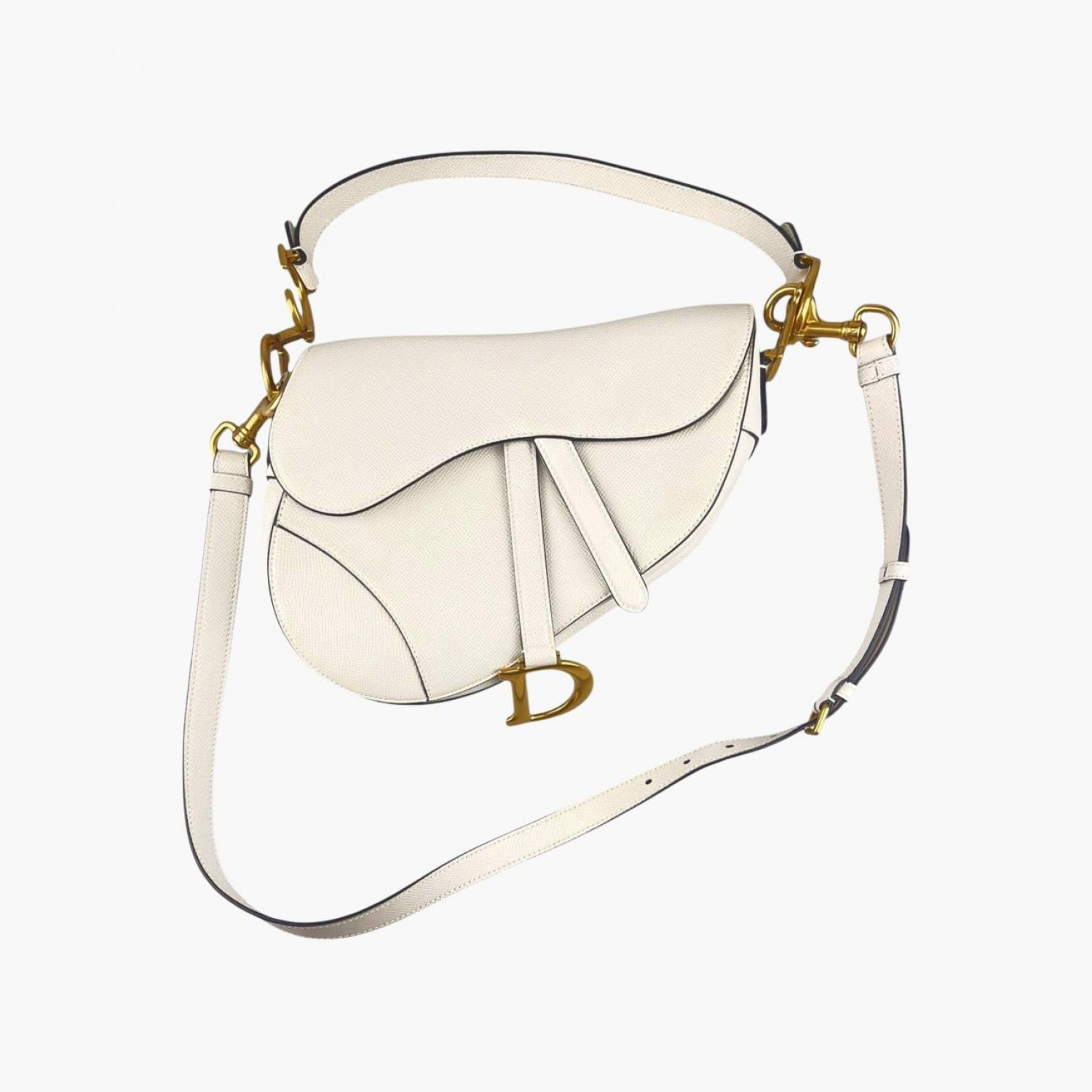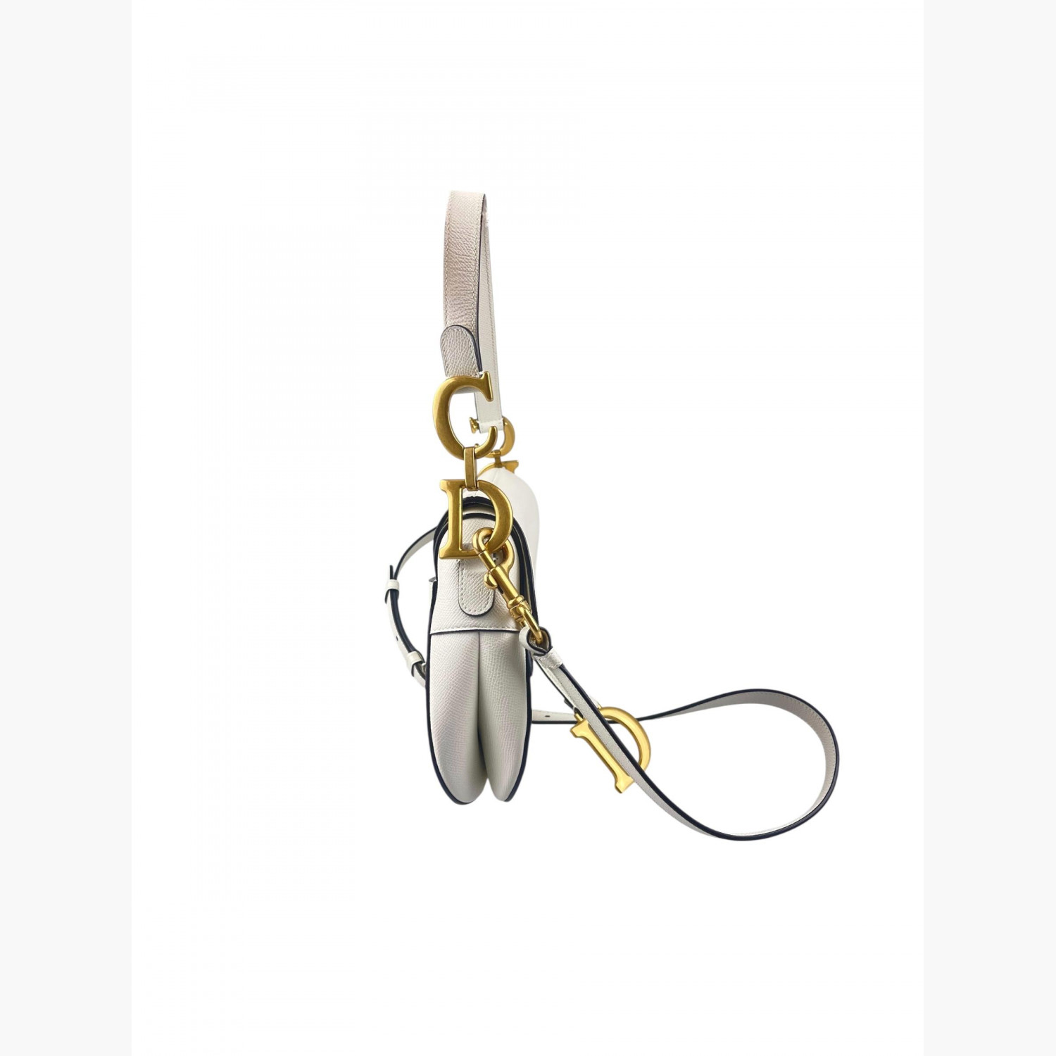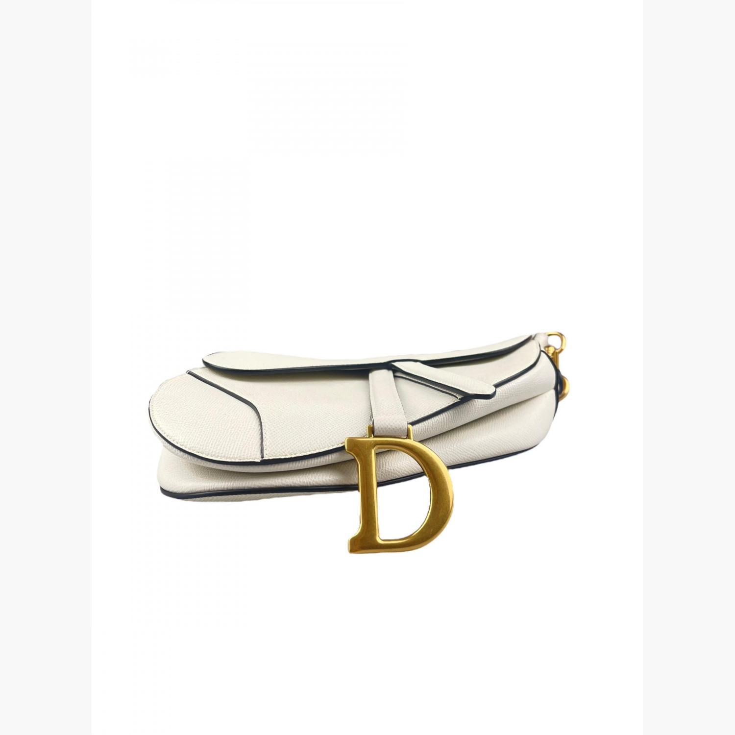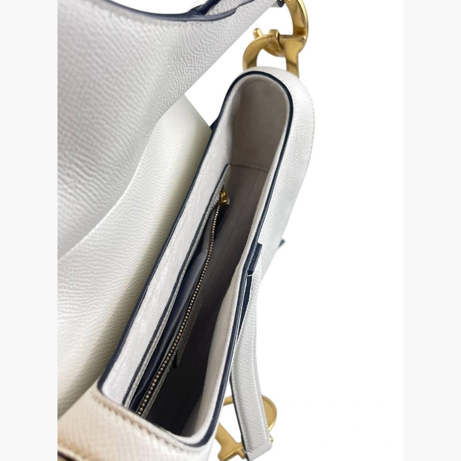 Біла шкіряна сумка з регульованим ремінцем. Усередині одне основне відділення з кишенею на блискавці, а також відкрита кишеня на зворотному боці сумки. В відмінному стані, є сліди вжитку.