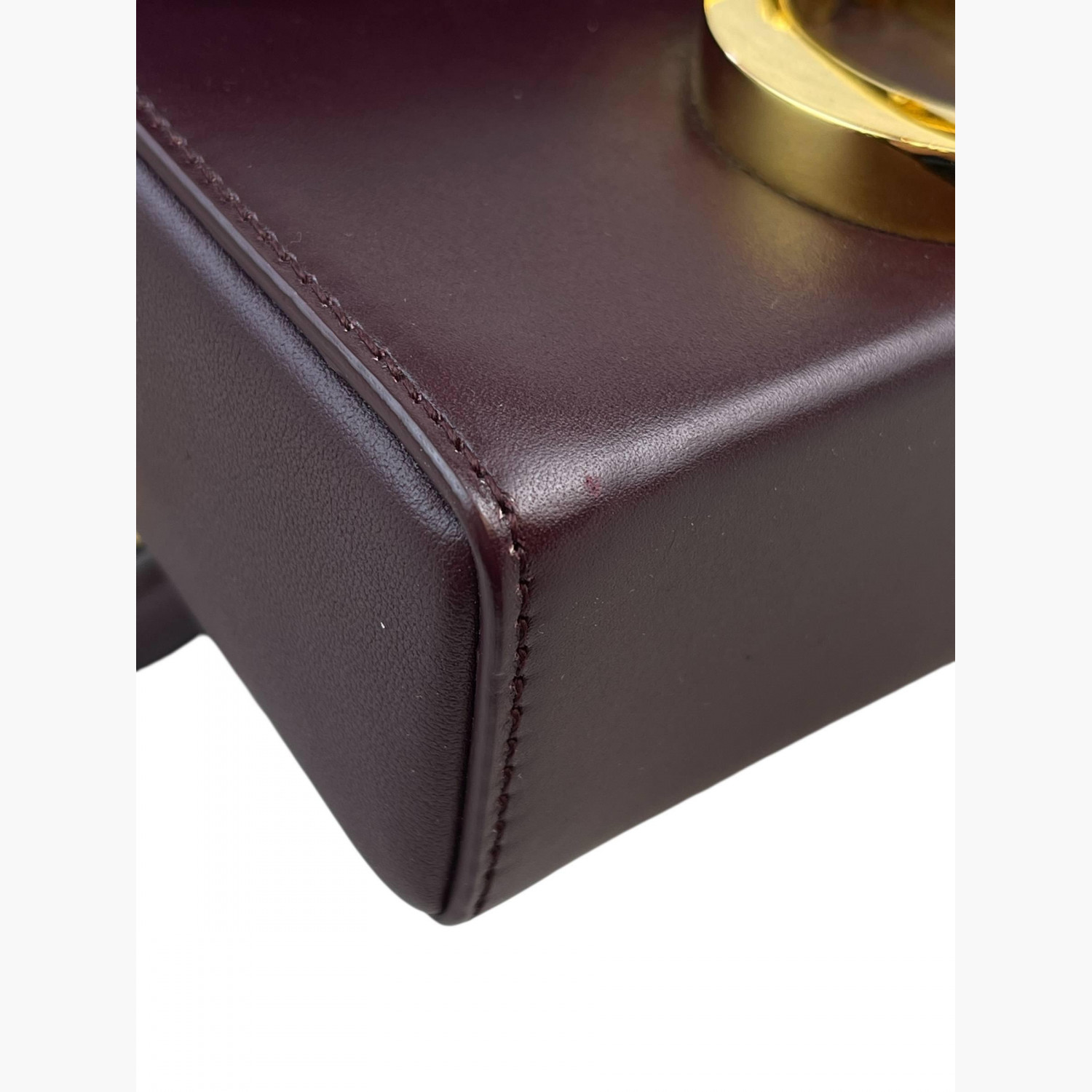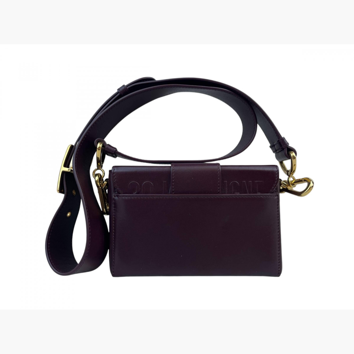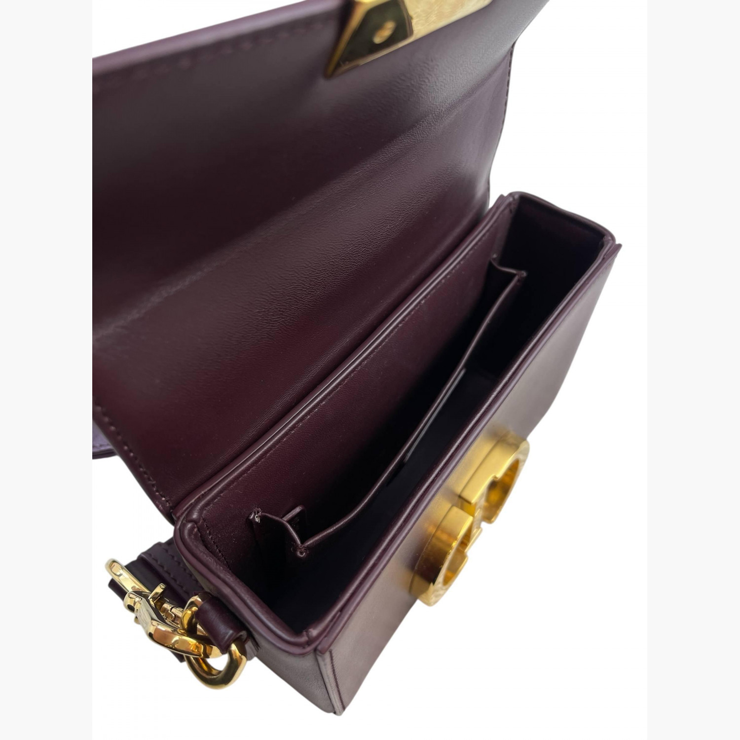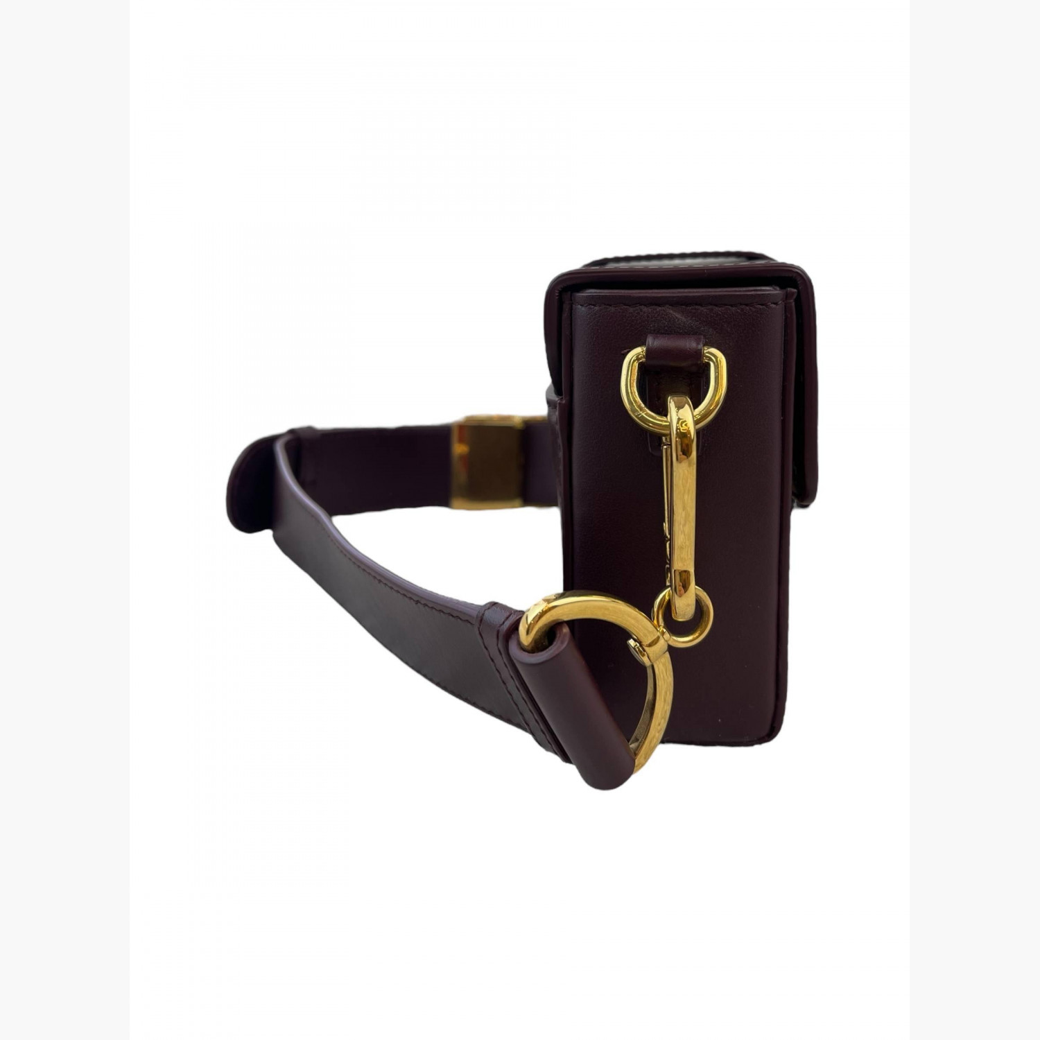 Бордова шкіряна сумка квадратної форми на широкому регульованому ремінці. Всередині — одне основне відділення; всередині та ззаду сумки — відкриті кишені. У відмінному стані, є незначні сліди вжитку.