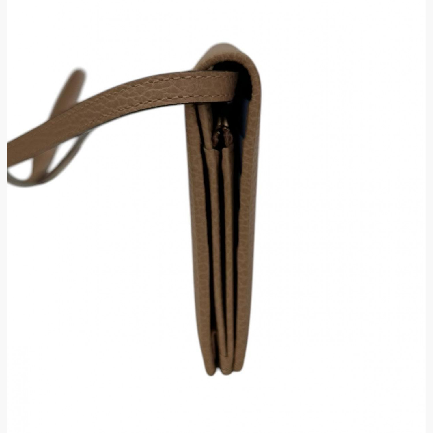 Бежева шкіряна сумка. Усередині три основних відділення, кишеня на блискавці та кілька відсіків для карток. В ідеальному стані, є невеликі потертості.