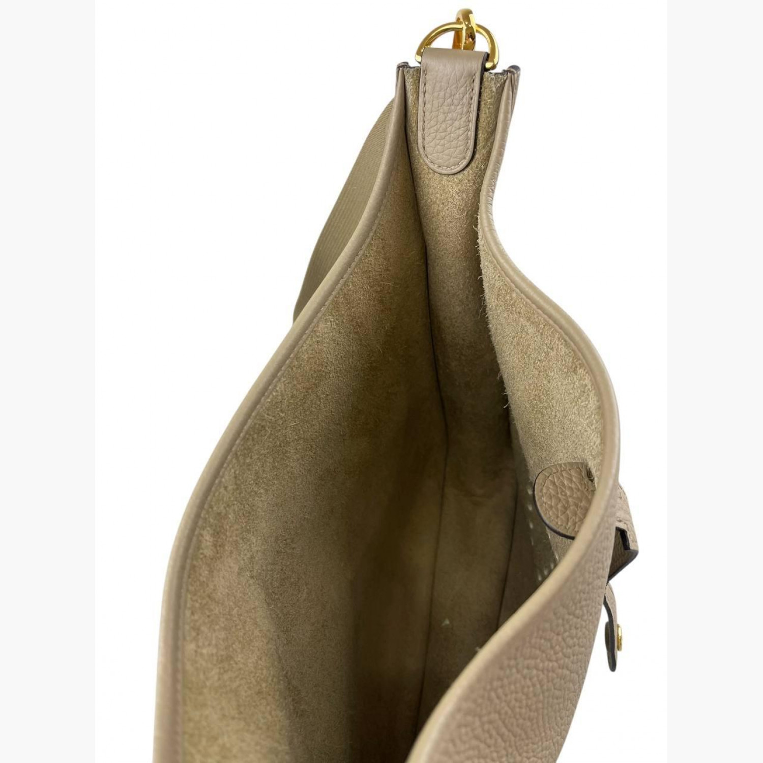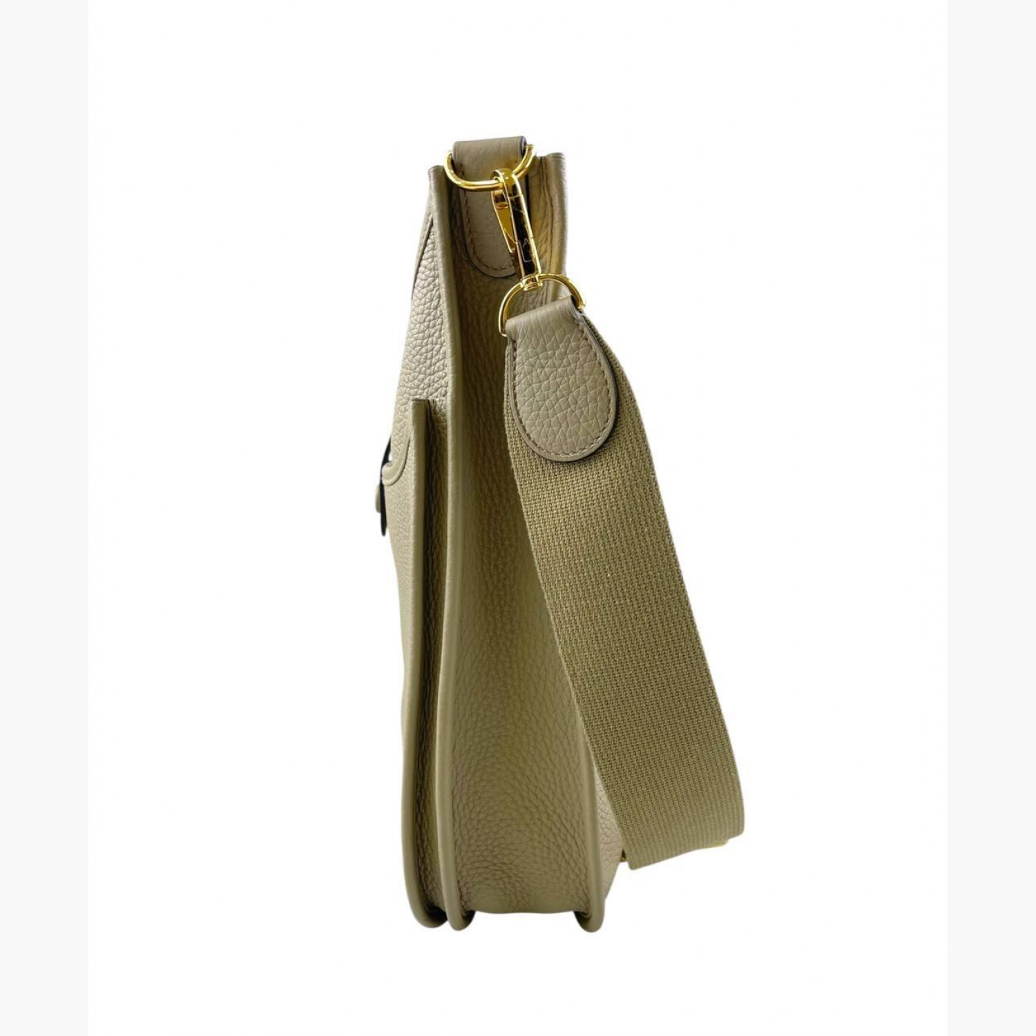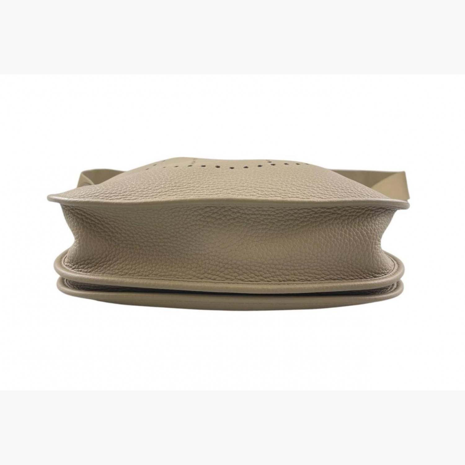 Бежева шкіряна сумка з регульованим знімним ремінцем. Усередині одне основне відділення, є відкрита кишеня ззаду сумки. У відмінному стані, є незначні сліди вжитку.