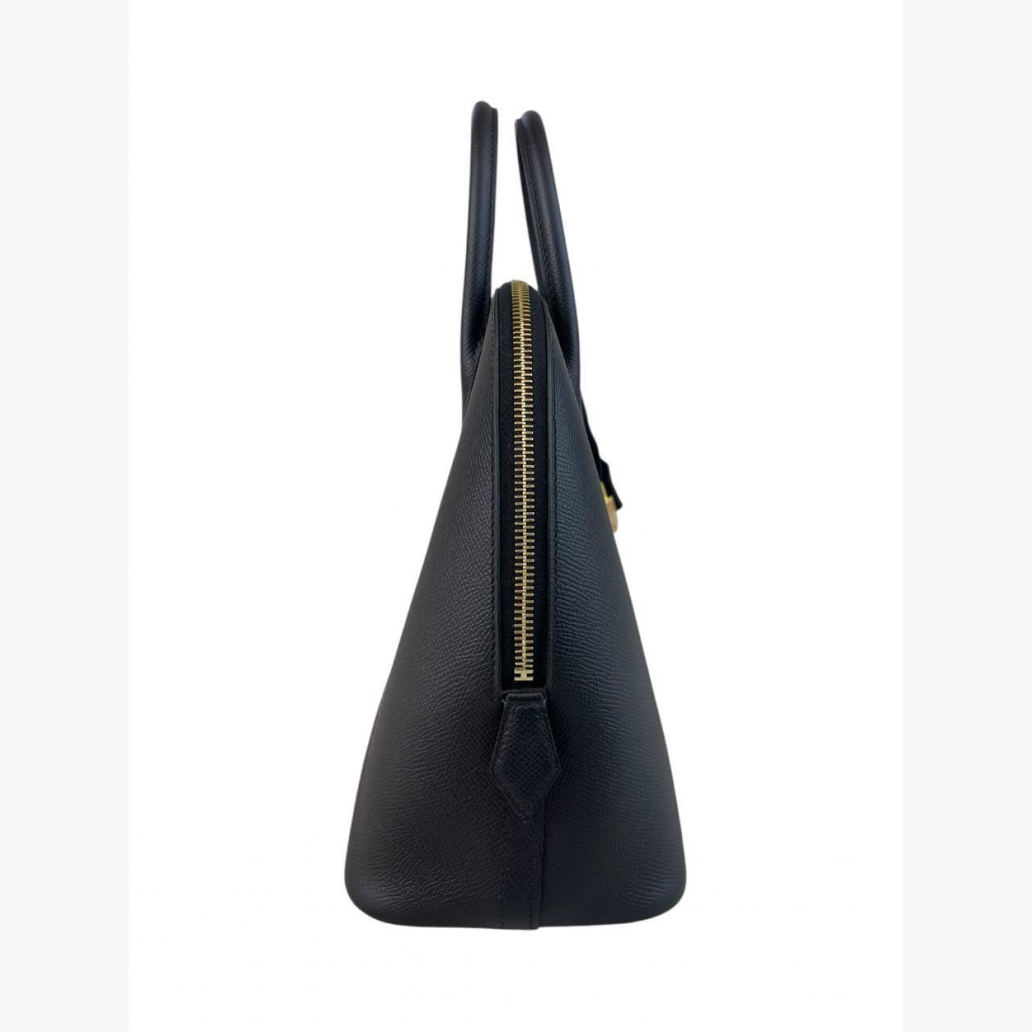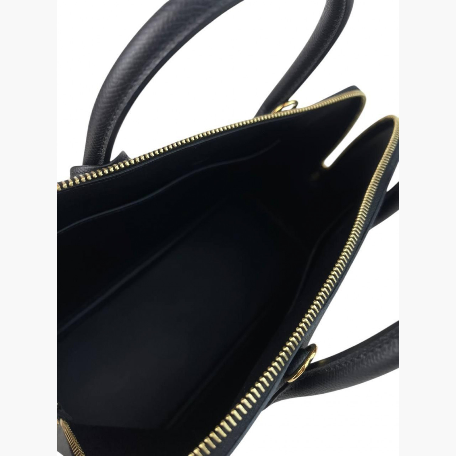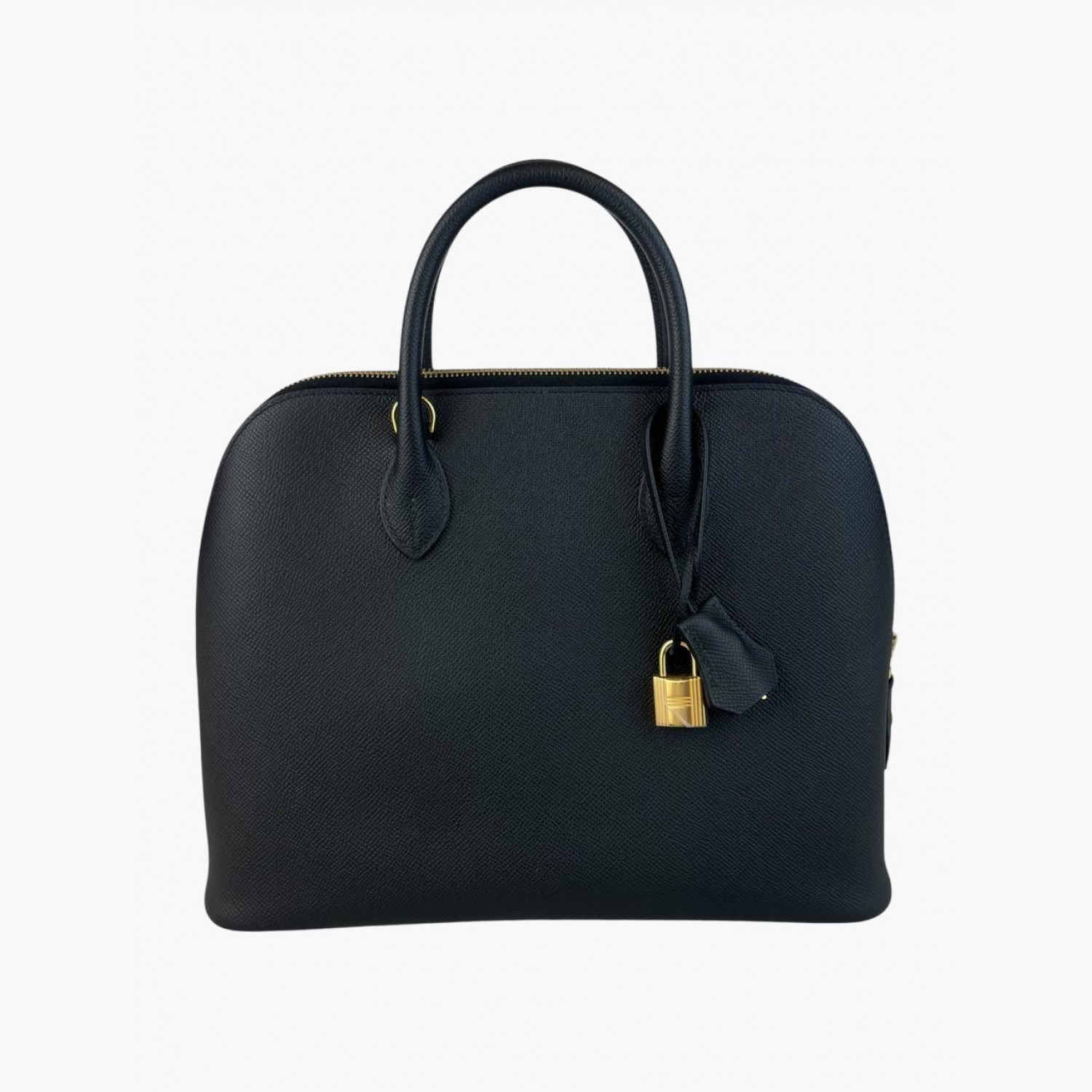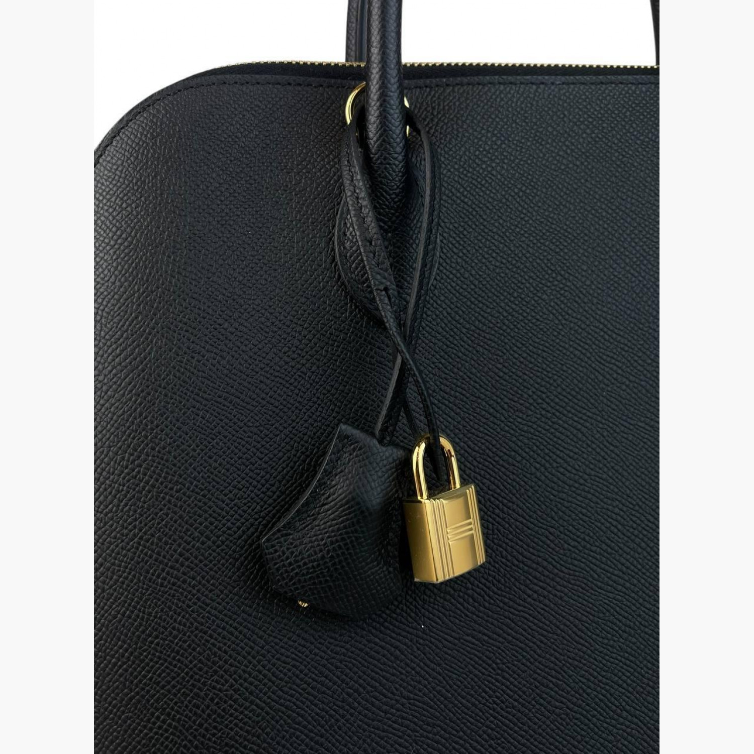 Чорна шкіряна сумка з ключами та декоративним замочком. Усередині — одне основне відділення з двома відкритими кишенями. Абсолютно нова.