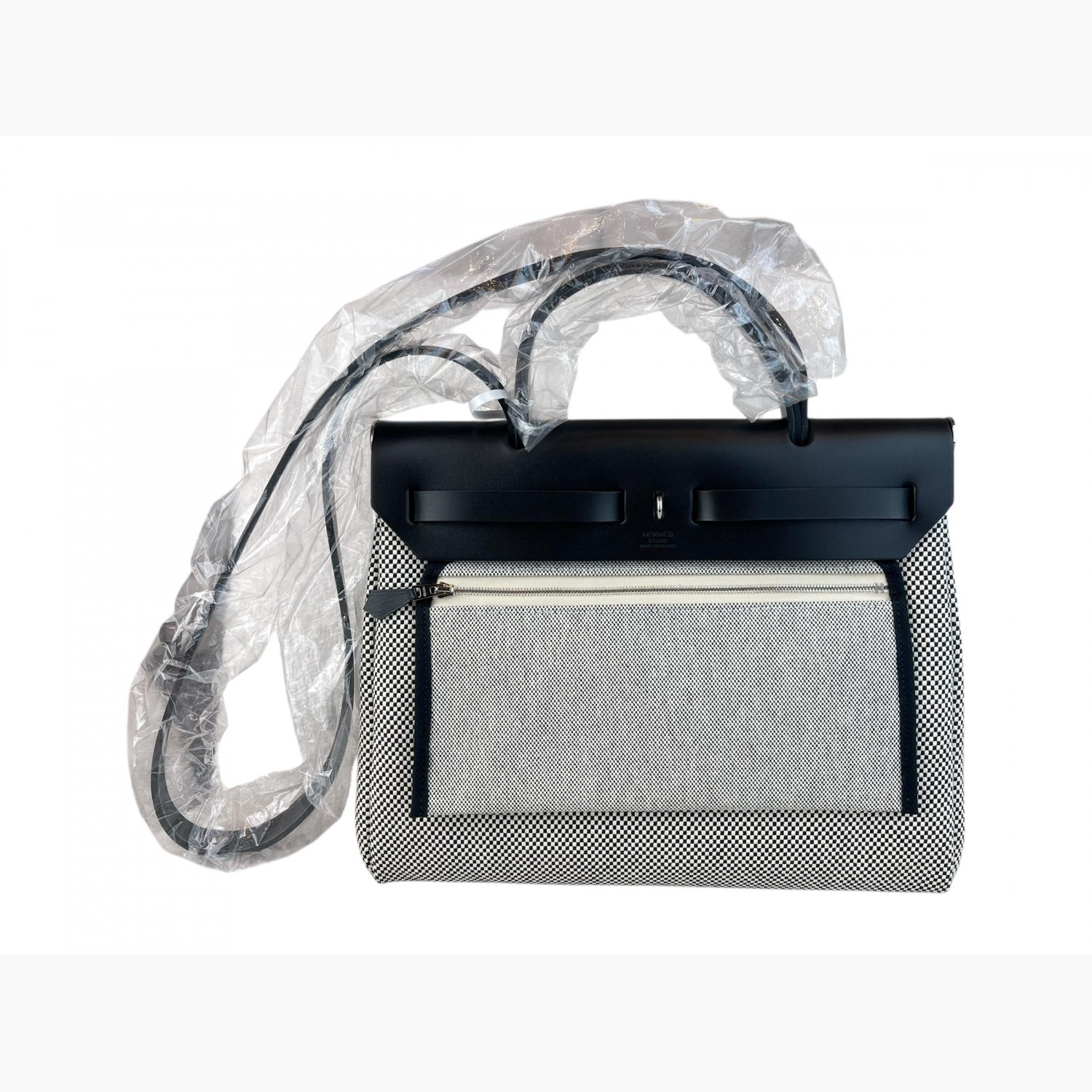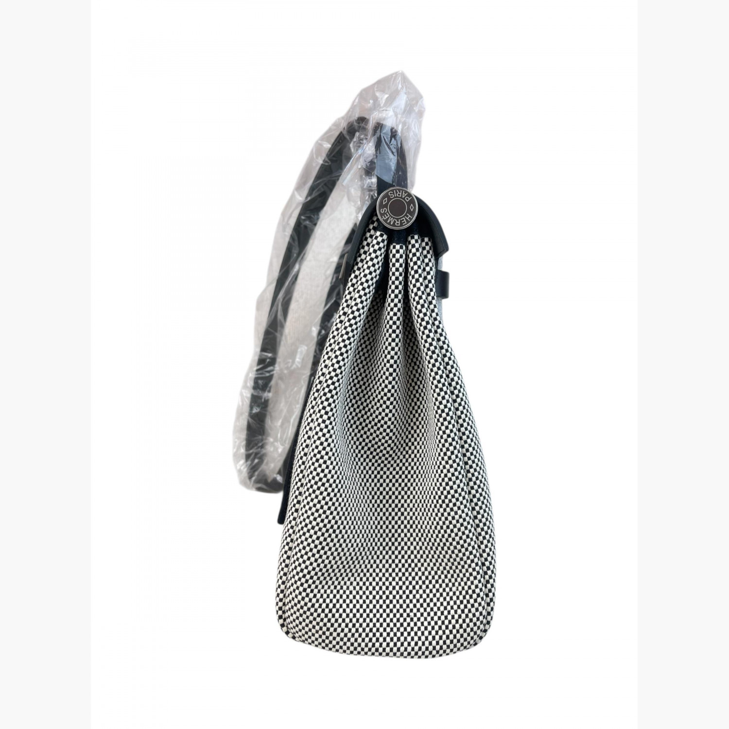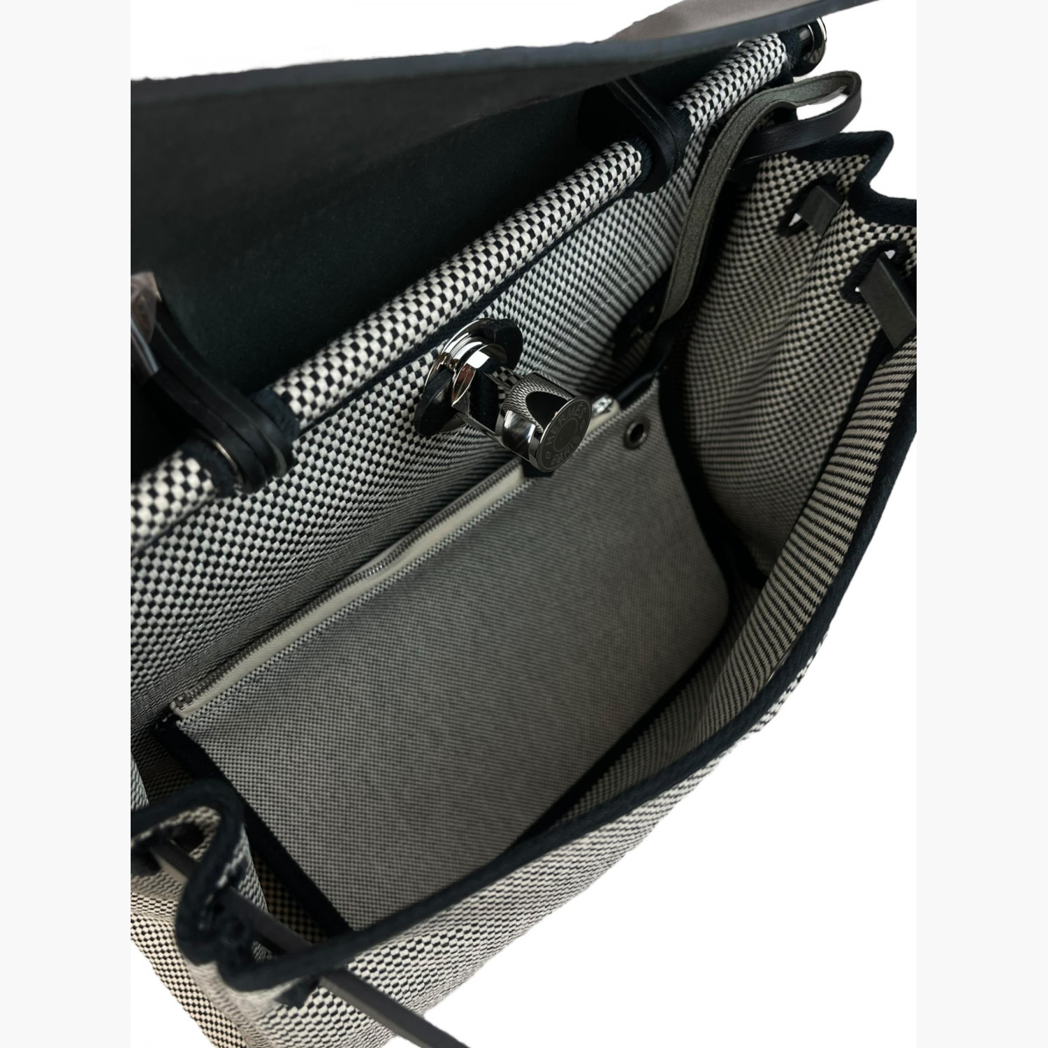 Чорно-біла текстильна сумка в клітинку зі шкіряною кришкою та ремінцями. Усередині — одне основне відділення зі знімною кишенею на блискавці та кишенею на блискавці із заднього боку сумки. Абсолютно нова.
