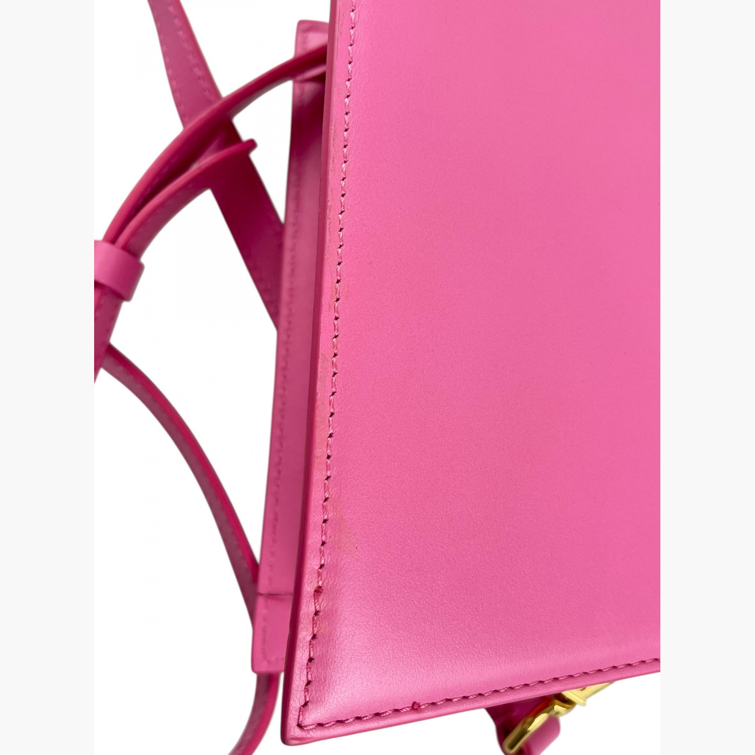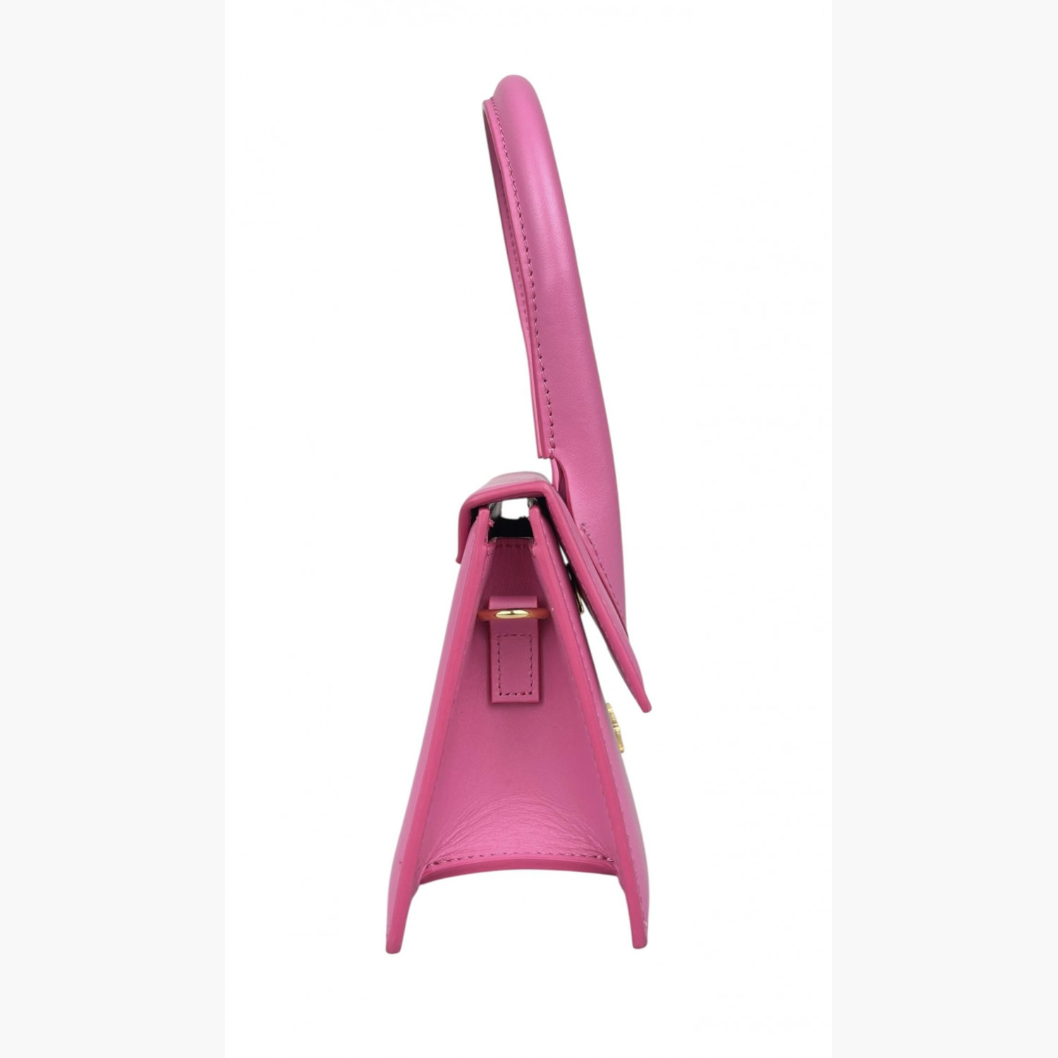 Рожева шкіряна сумка. У комплекті довгий ремінець на карабінах. Всередині одне основне відділення з плоскою кишенею. Стан гарний, є сліди вжитку.