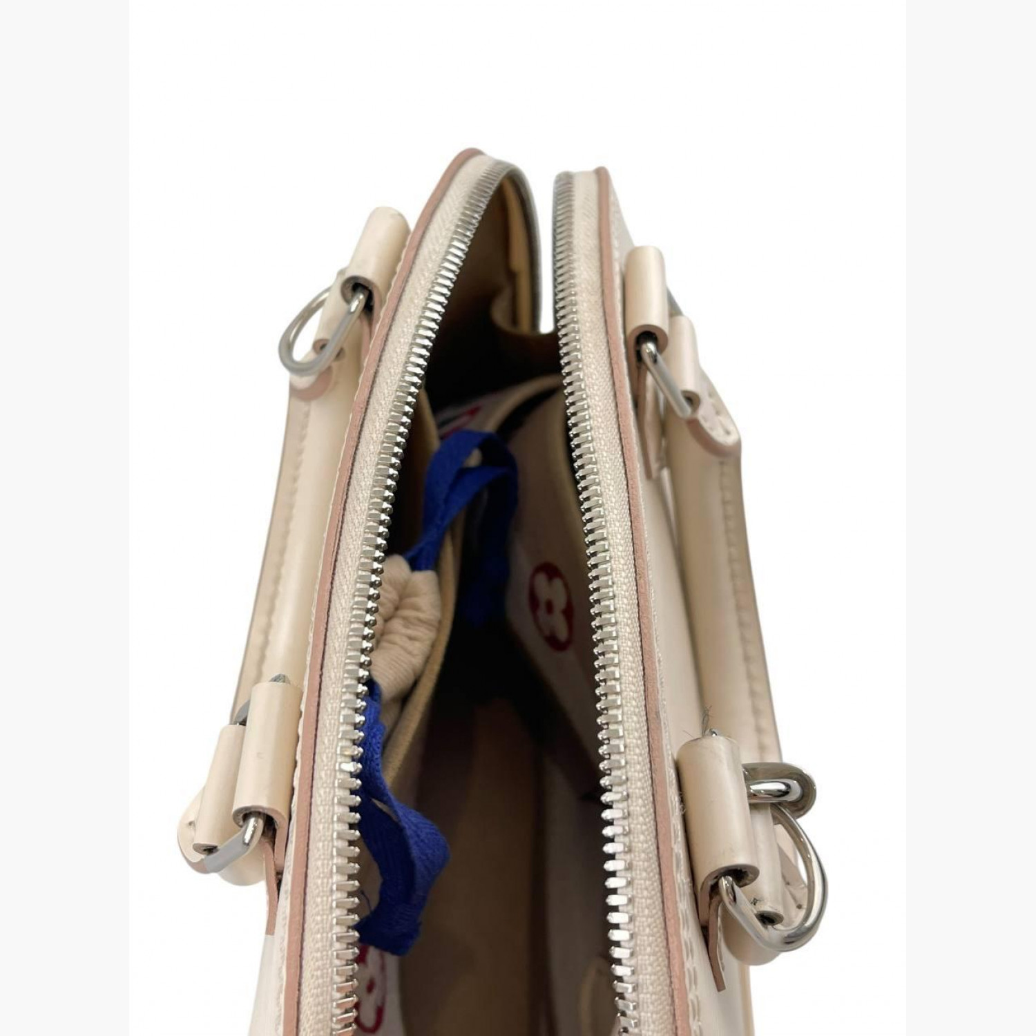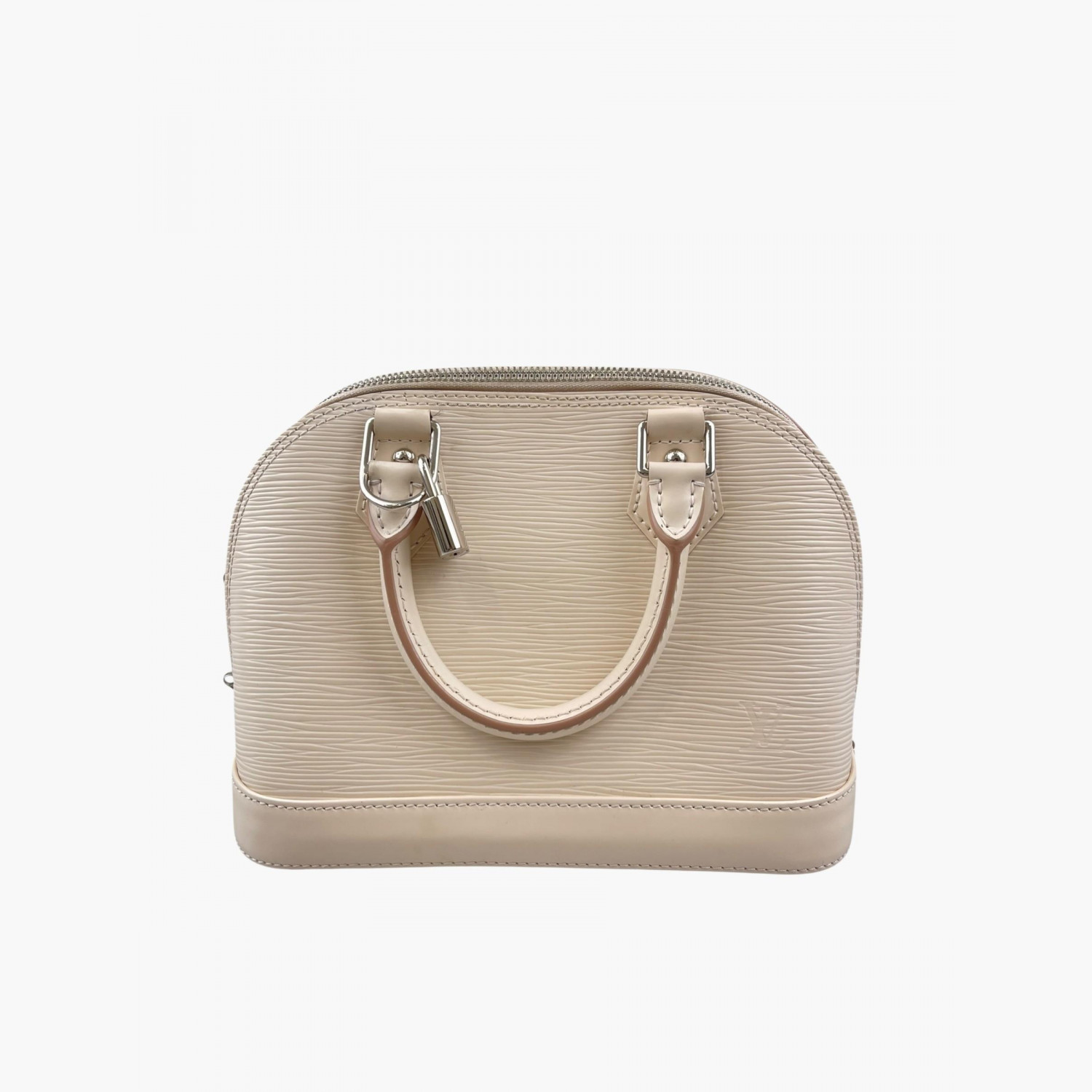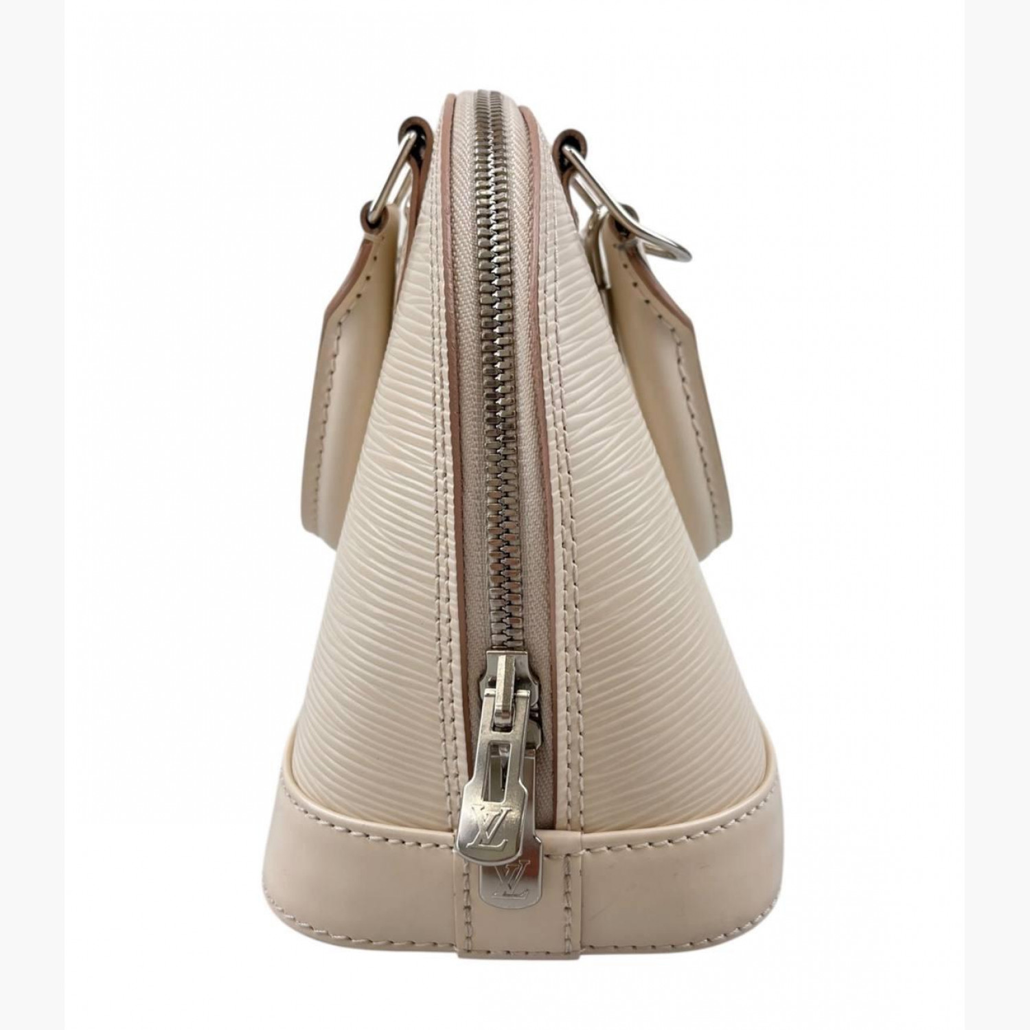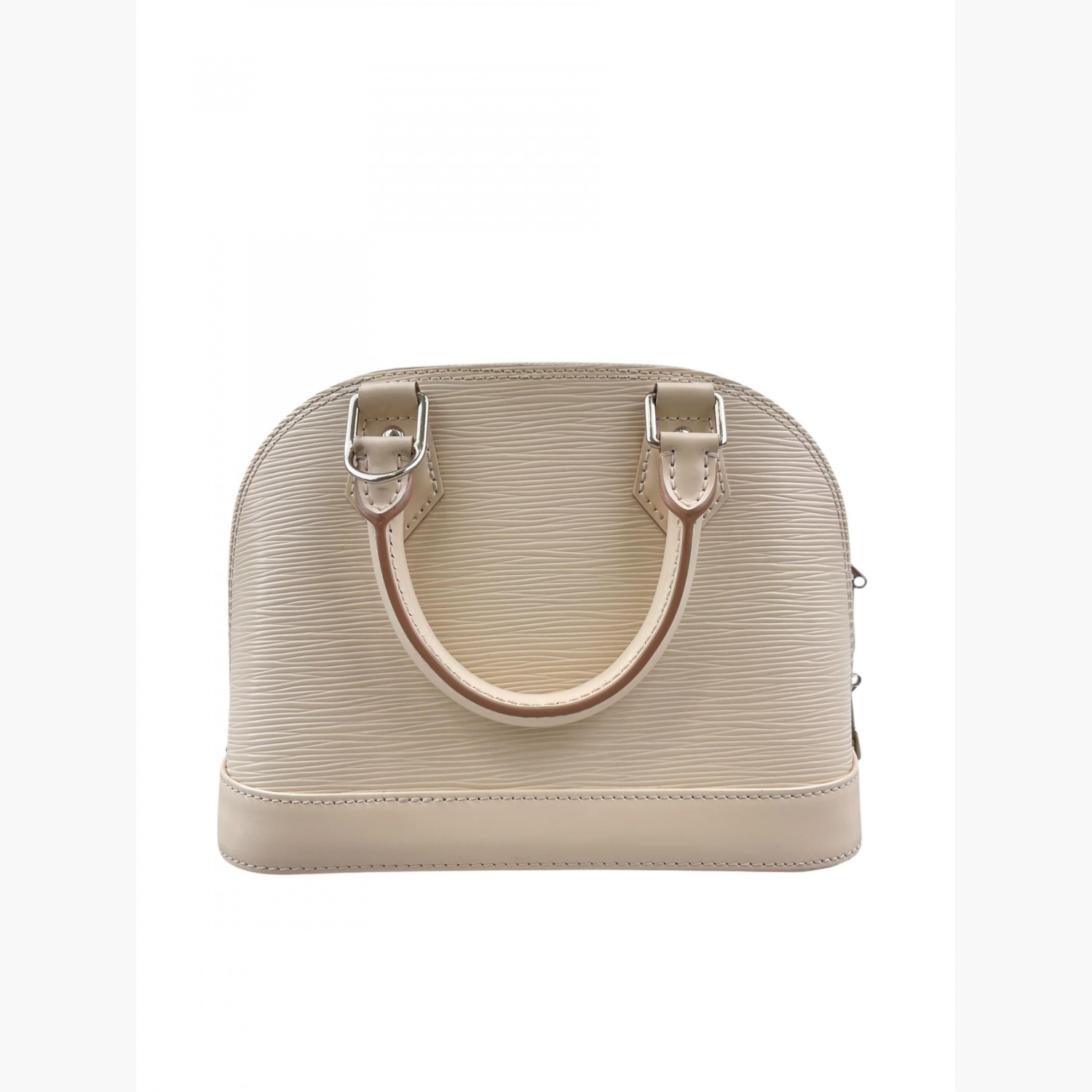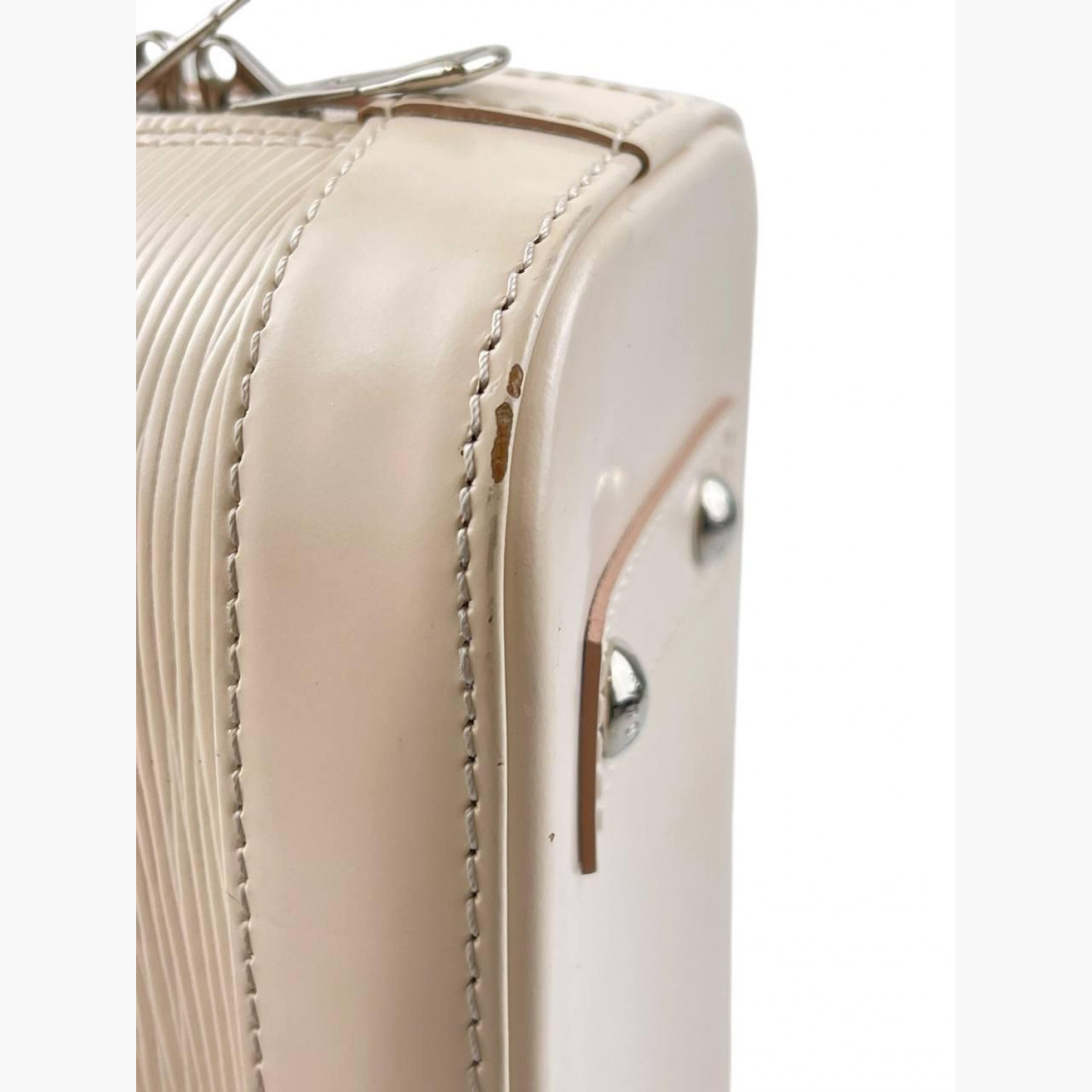 Сумка з натуральної шкіри кольору слонової кістки. Має одне основне відділення з відкритою кишенею. У комплекті текстильний ремінець та ключі в пилевику від замка. У хорошому стані, є сліди вжитку.