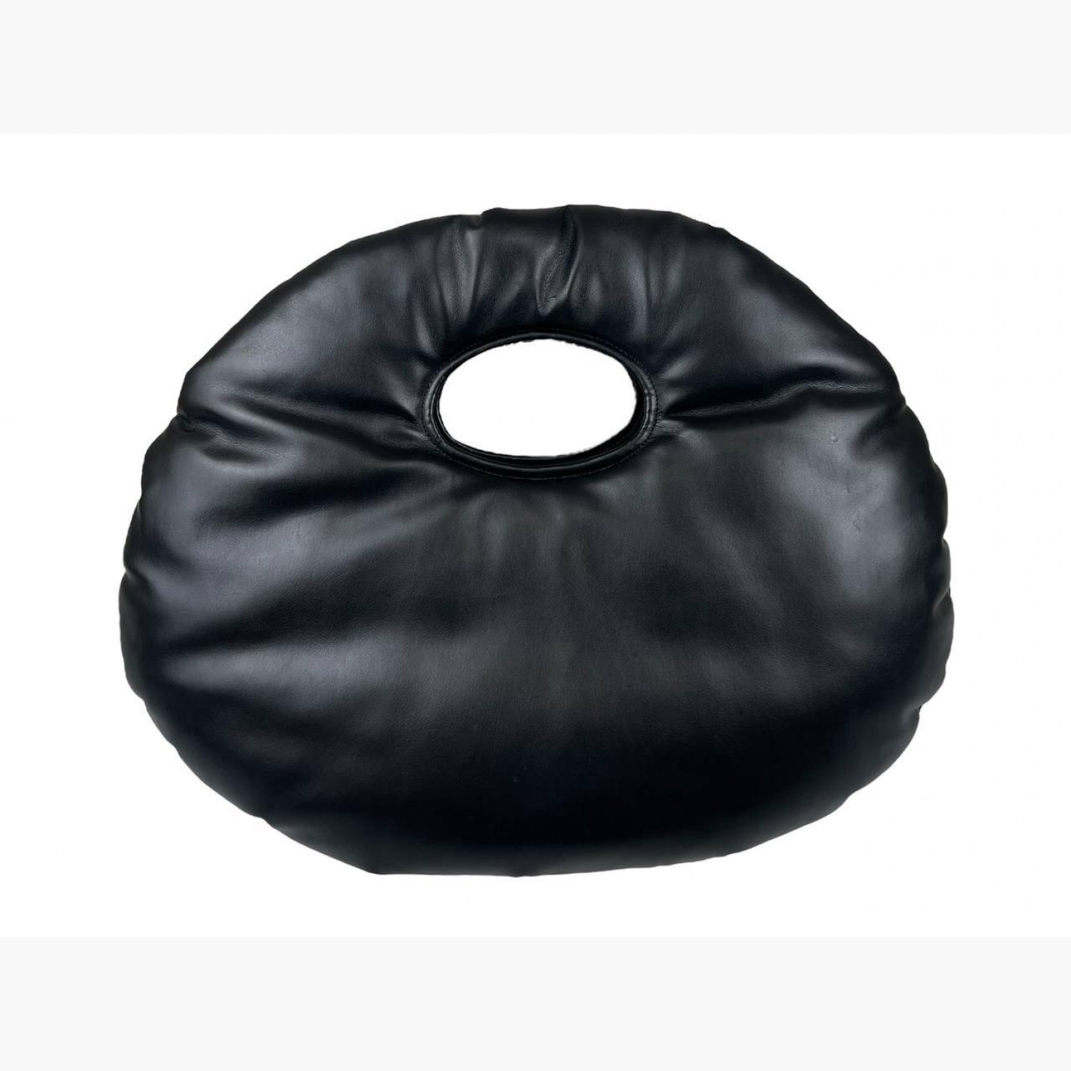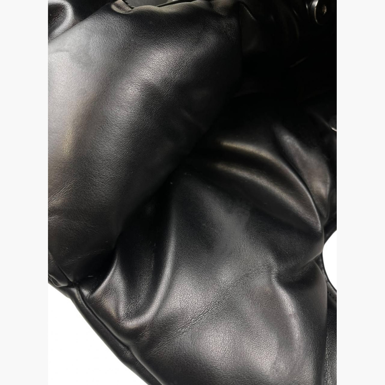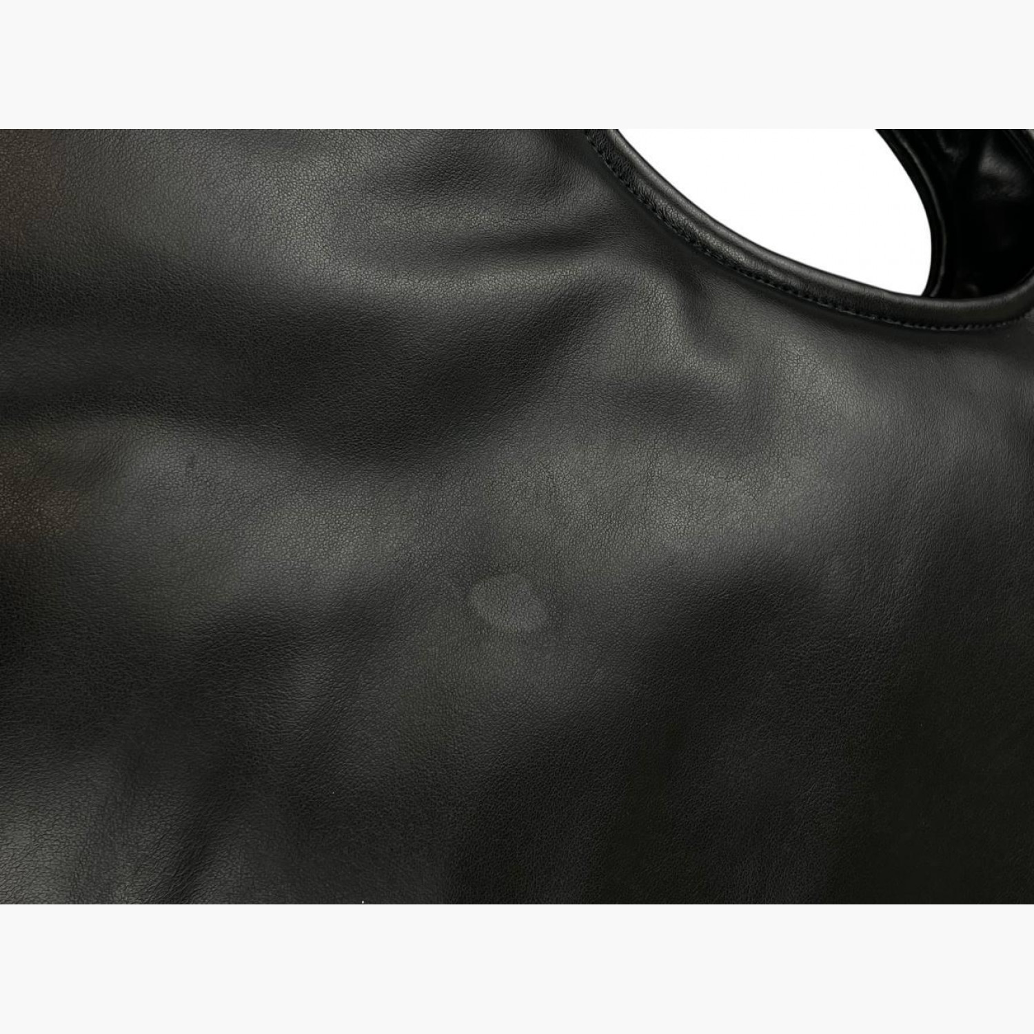 Велика чорна шкіряна сумка. Усередині — одне основне відділення без кишень. У хорошому стані, є сліди вжитку.