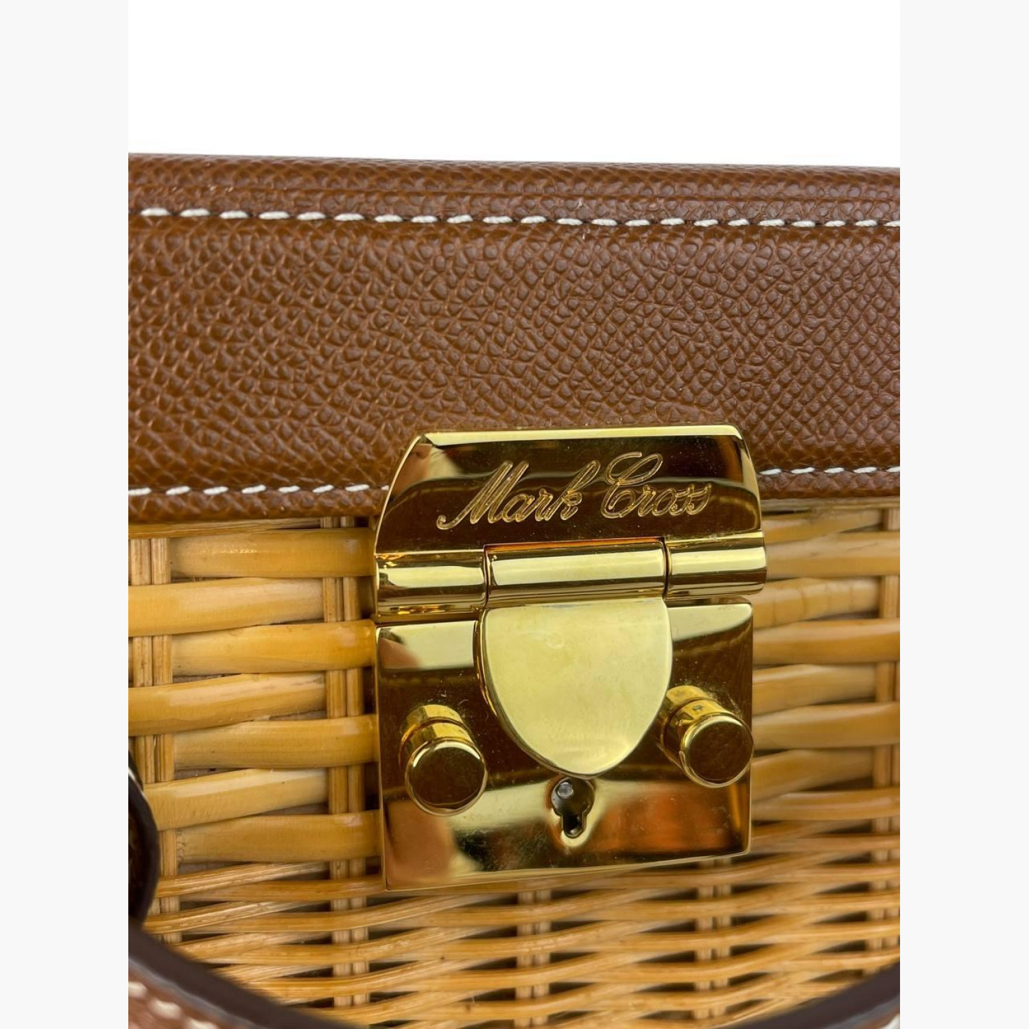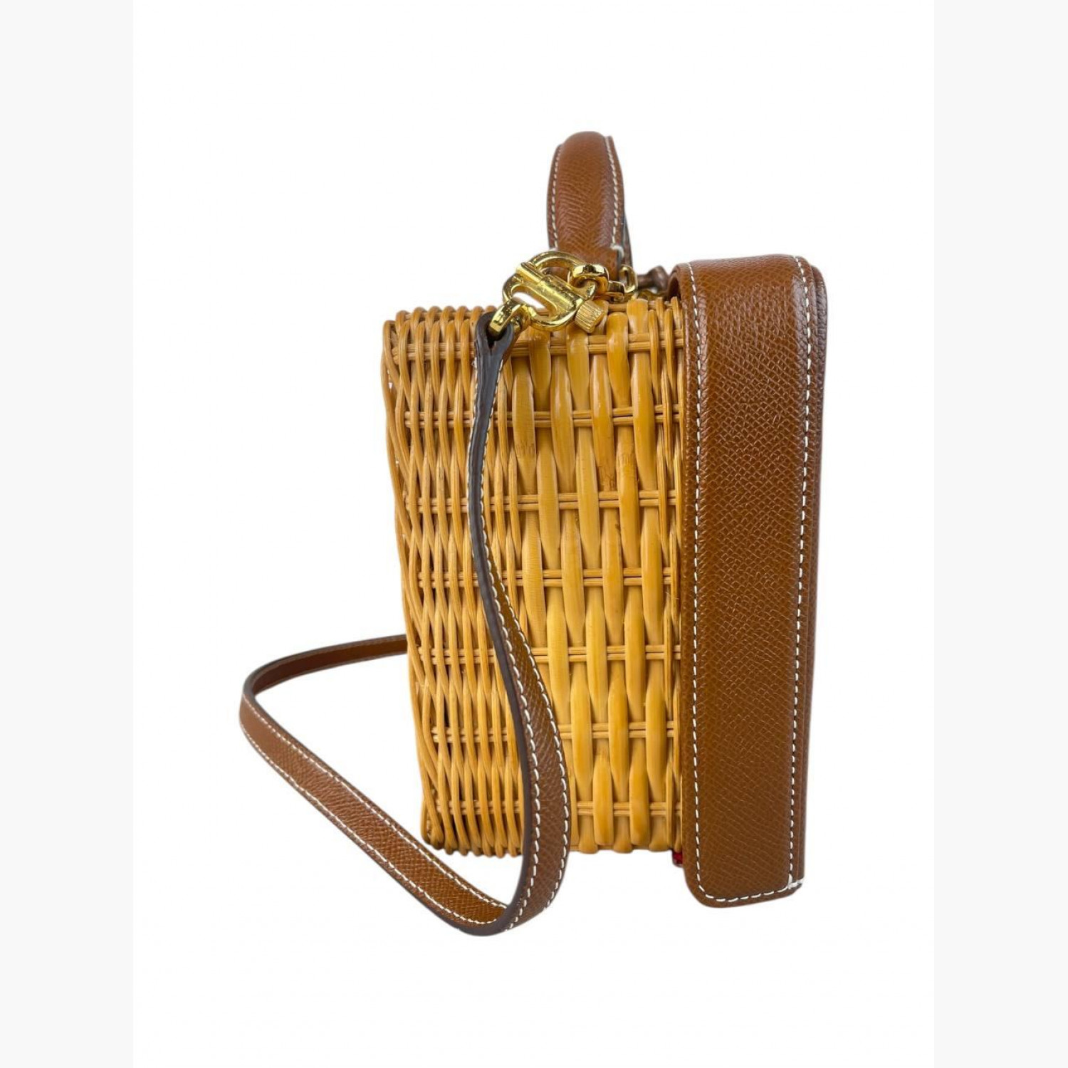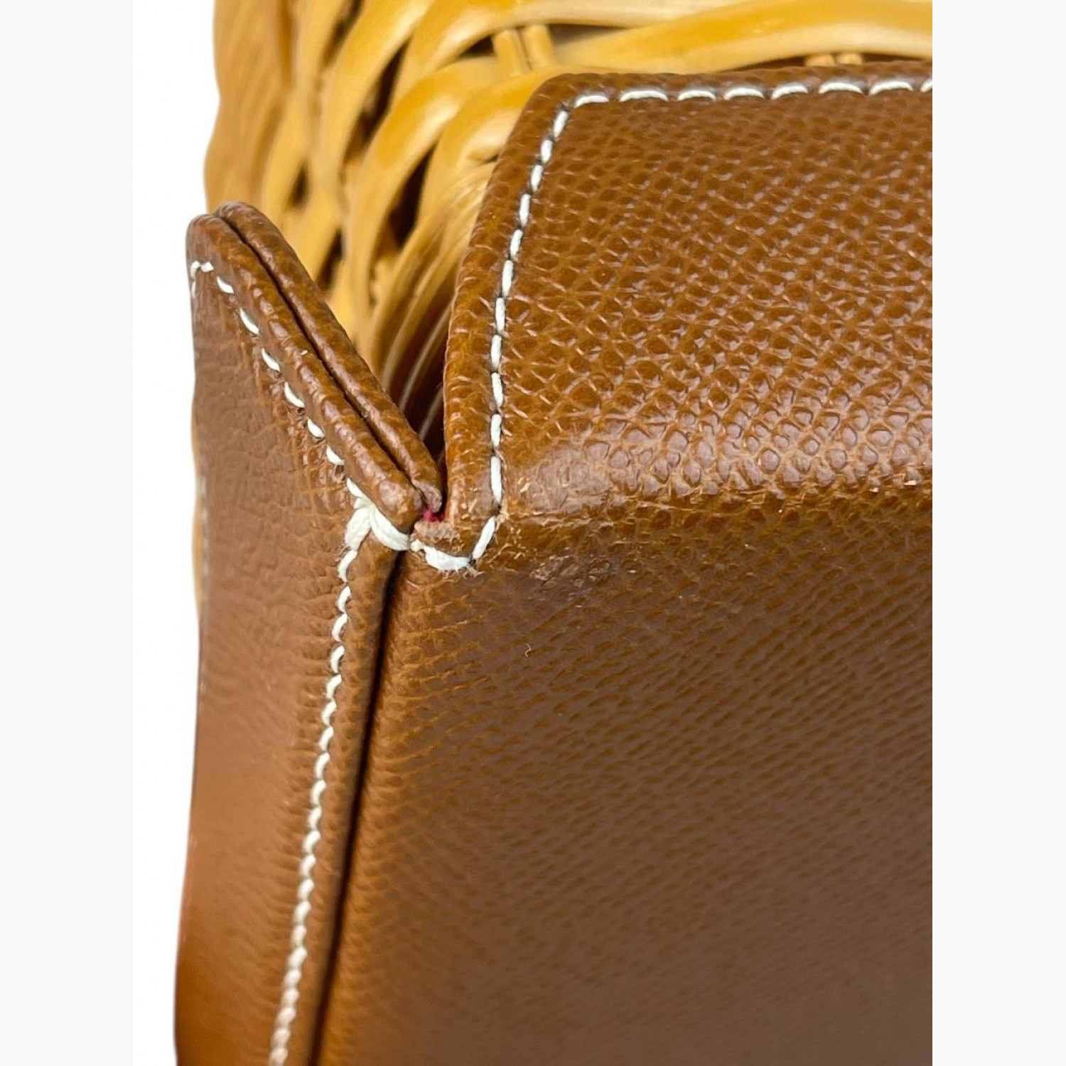 Коричнева плетена сумка з шкіряною кришкою. Усередині — одне основне відділення з текстильною підкладкою та кишенею на блискавці. У відмінному стані, є незначні потертості.