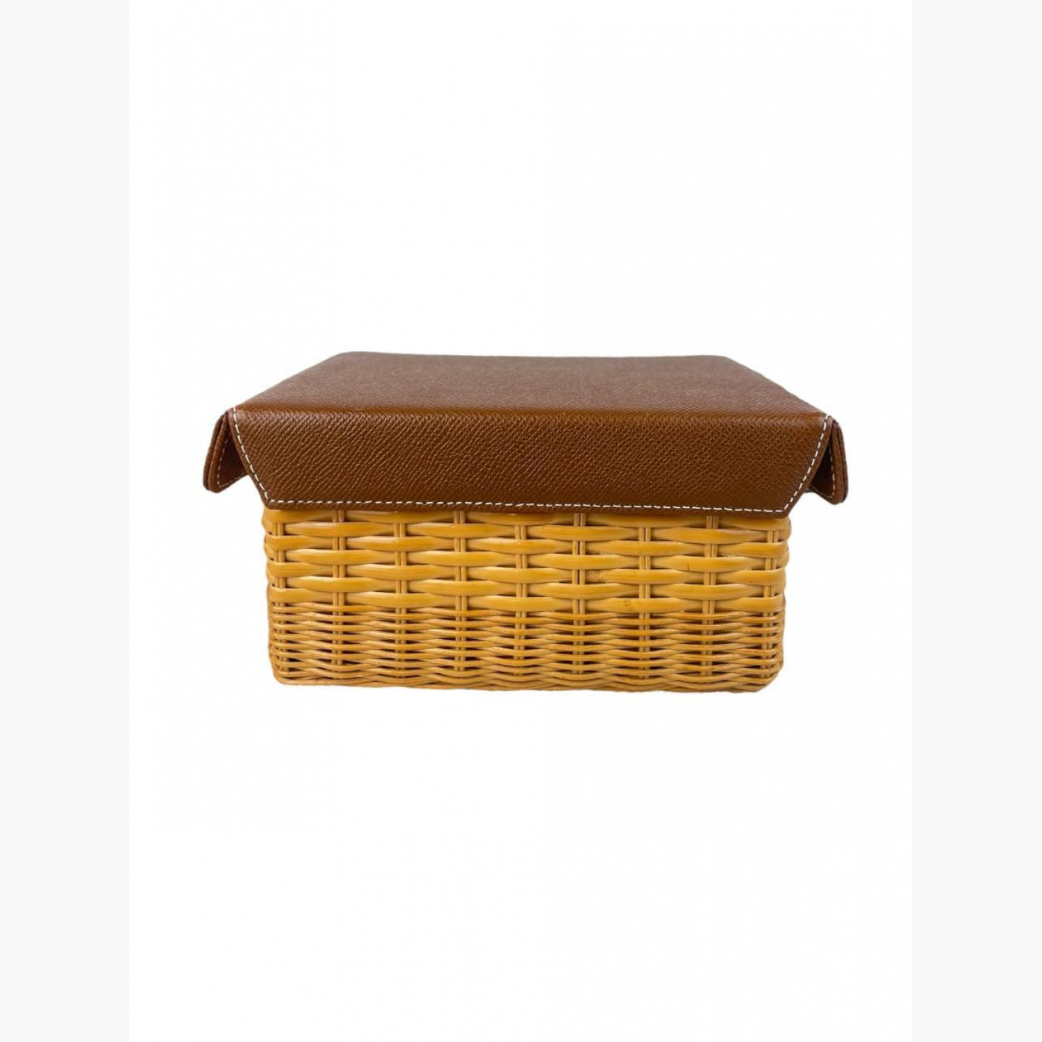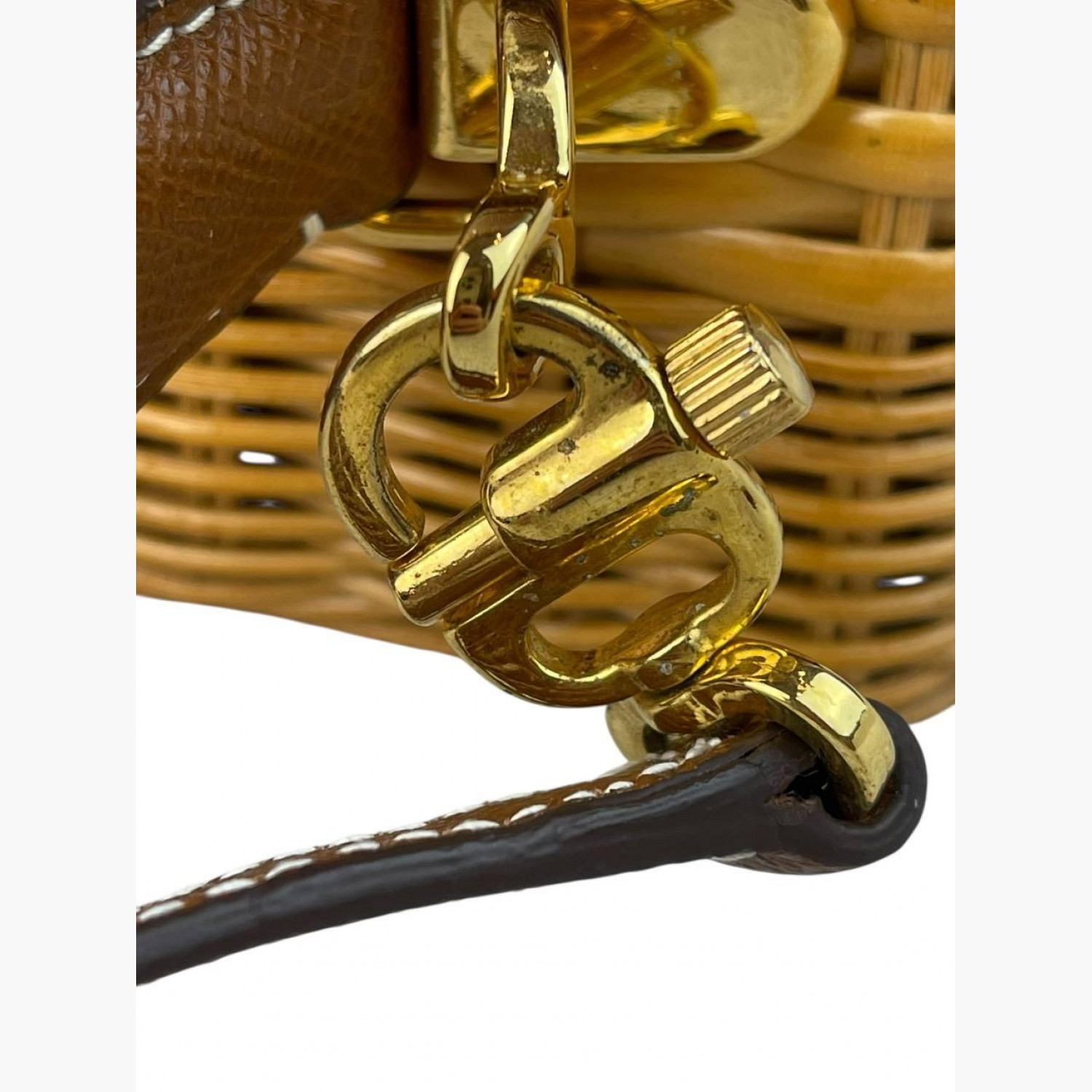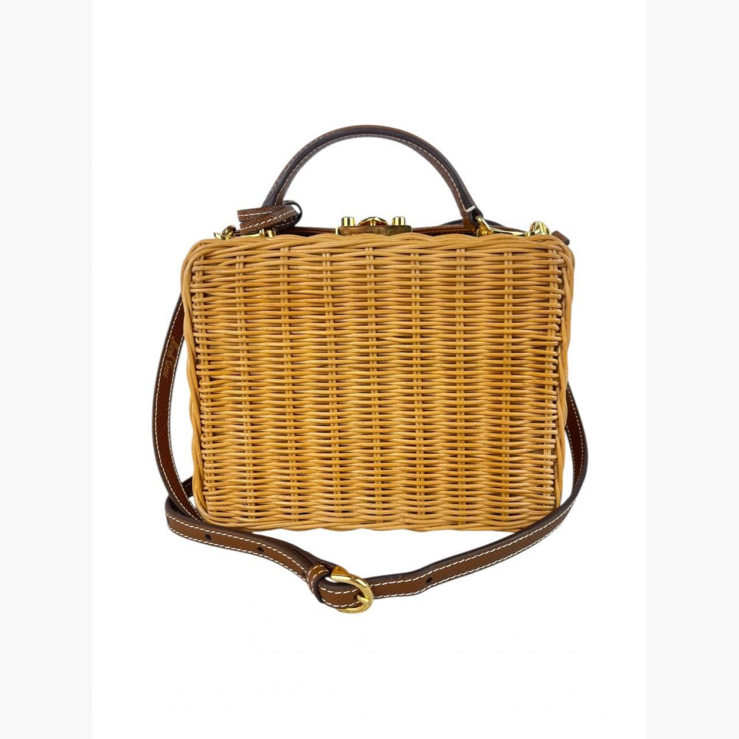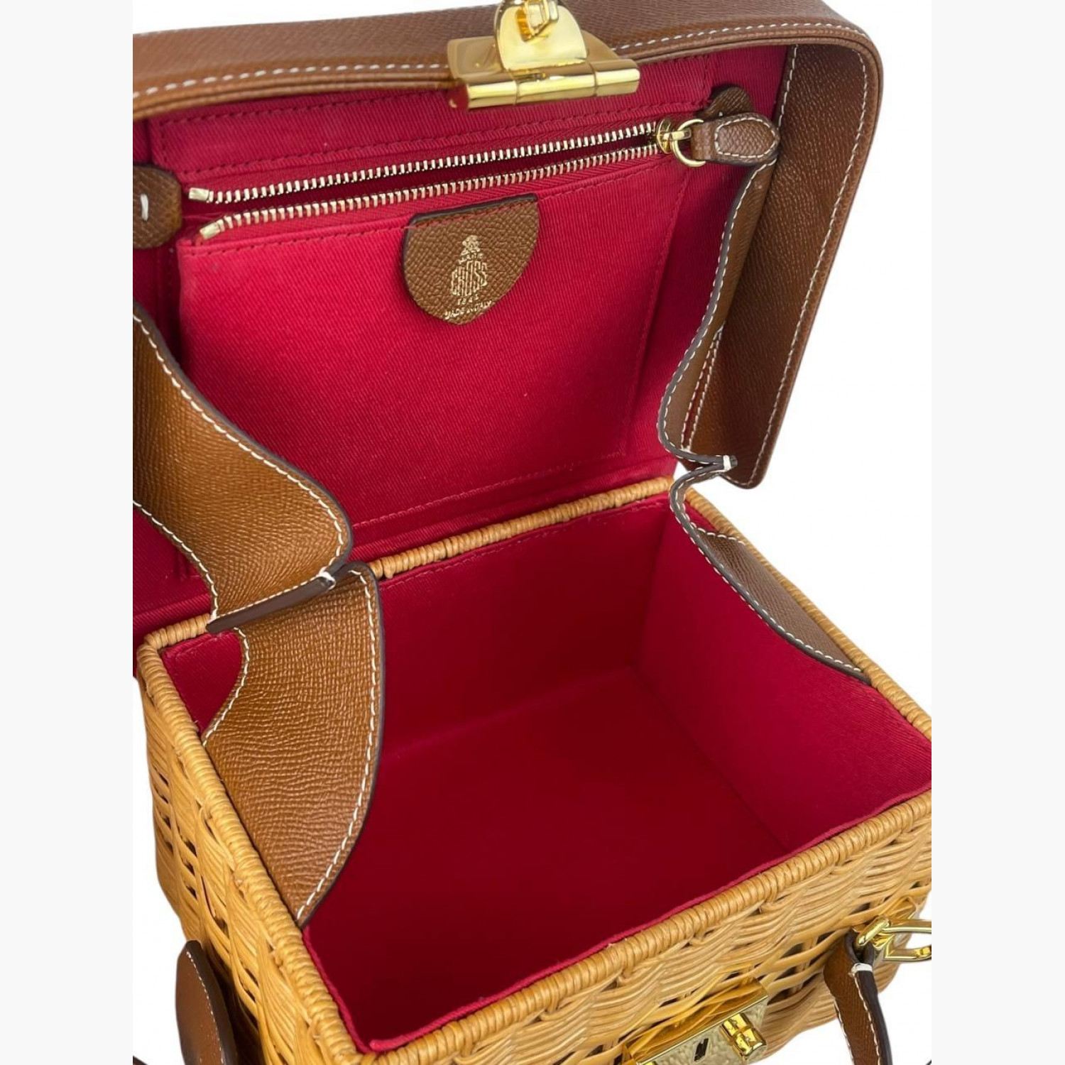 Коричнева плетена сумка з шкіряною кришкою. Усередині — одне основне відділення з текстильною підкладкою та кишенею на блискавці. У відмінному стані, є незначні потертості.